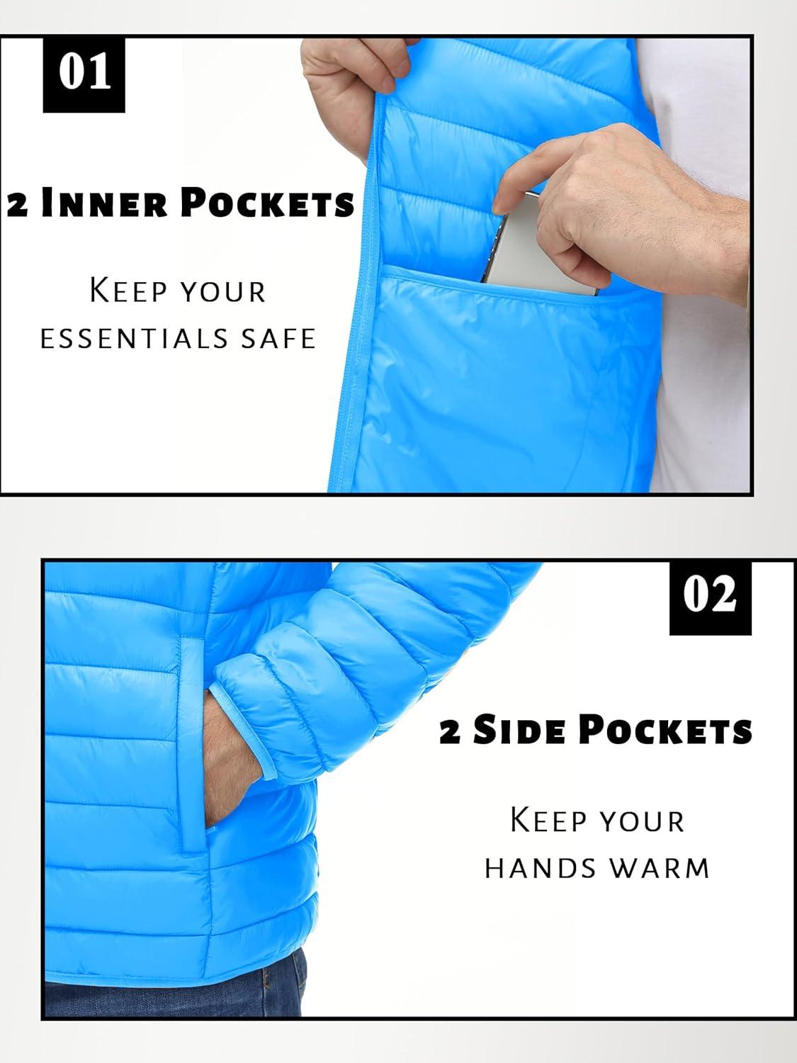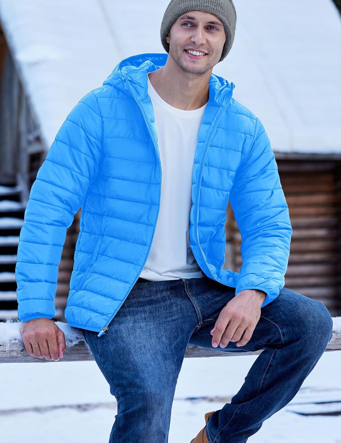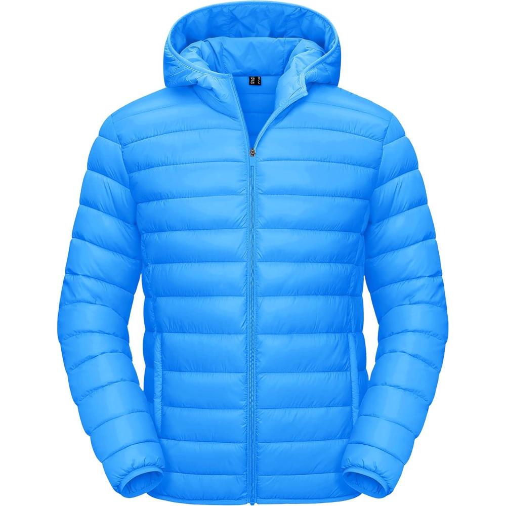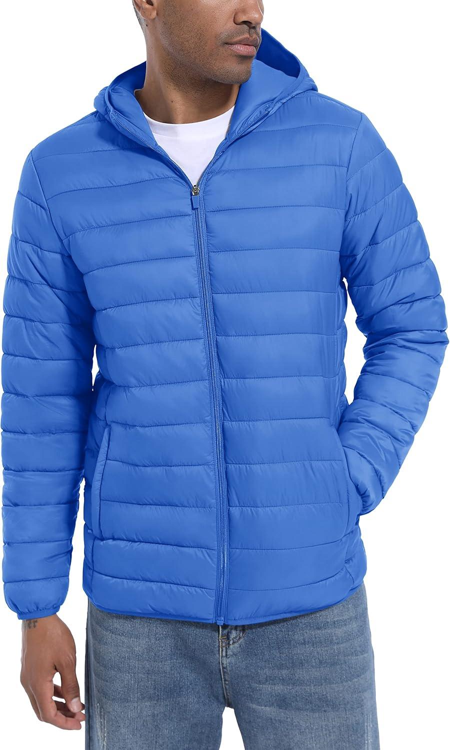 TACVASEN Men’s Lightweight Puffer Jacket with Hood Water Resistant Windproof Insulated Jacket Quilted Lined Winter Coats(Azure)