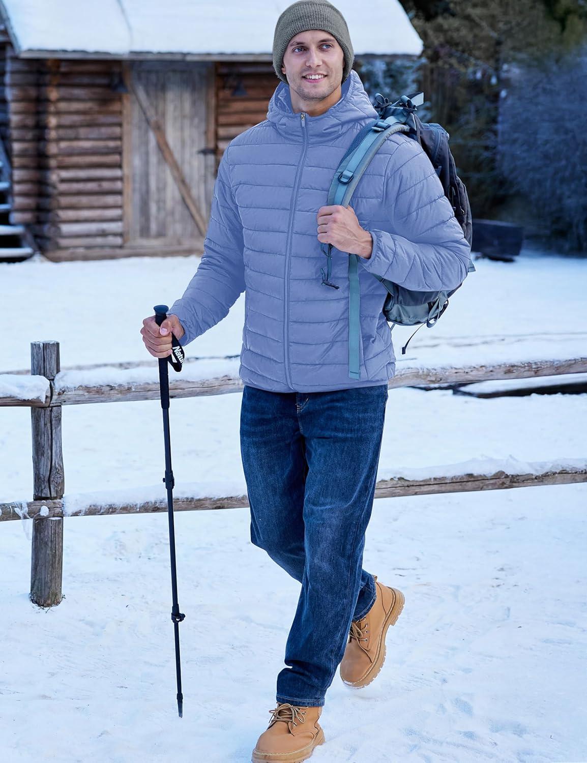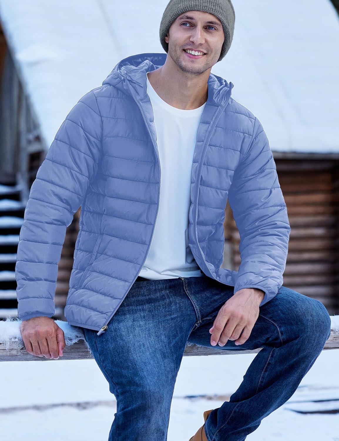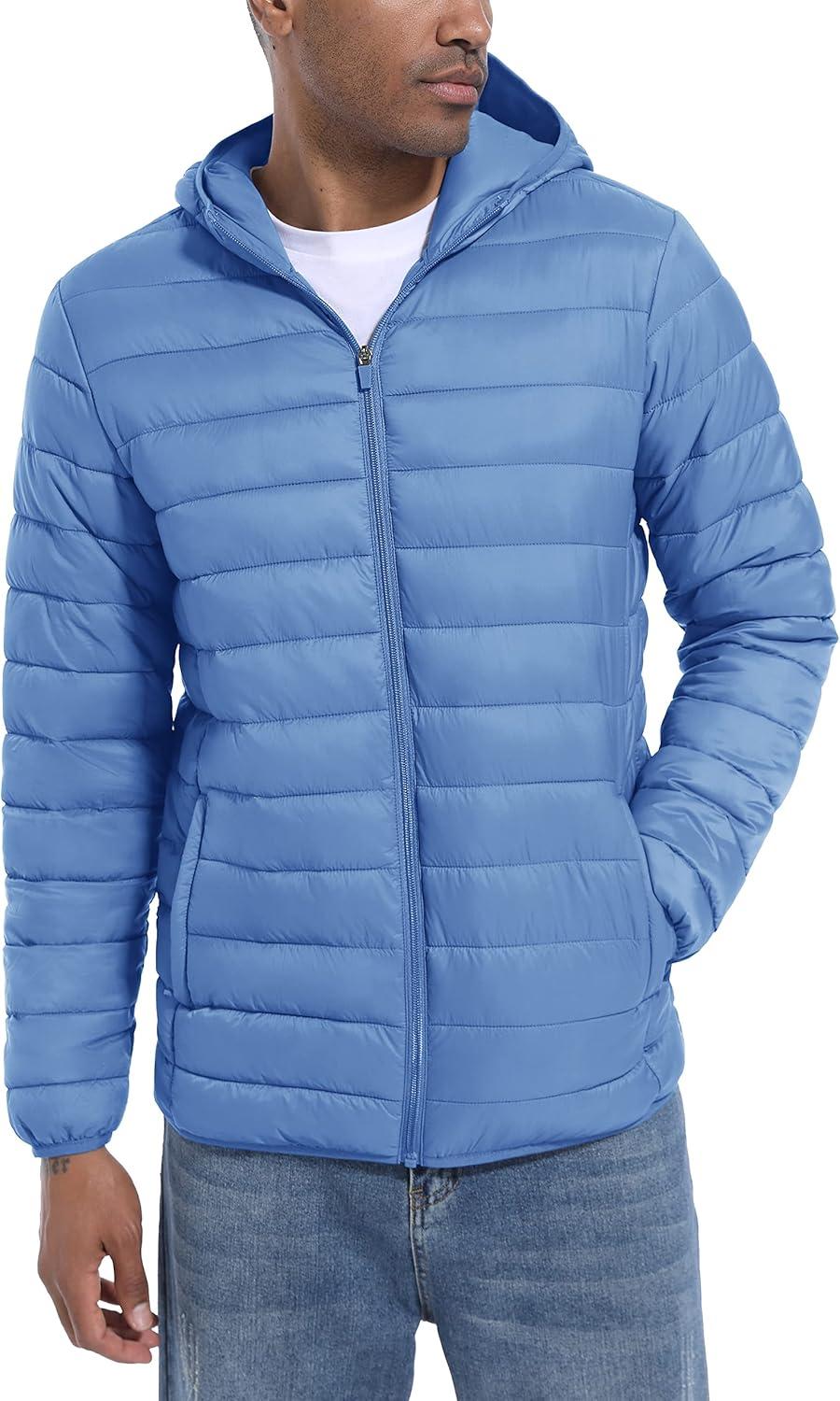 TACVASEN Men’s Lightweight Puffer Jacket with Hood Water Resistant Windproof Insulated Jacket Quilted Lined Winter Coats(Light Blue)