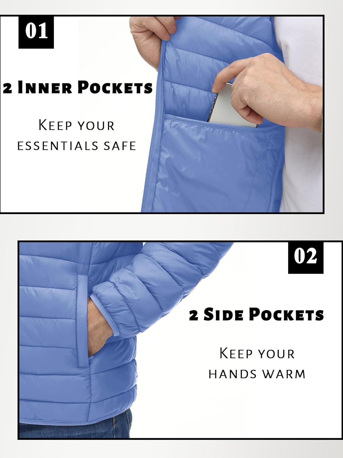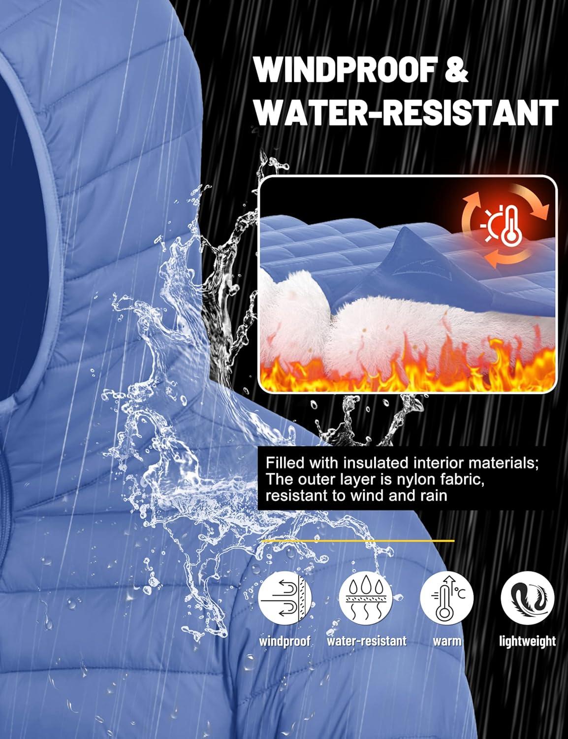 TACVASEN Men’s Lightweight Puffer Jacket with Hood Water Resistant Windproof Insulated Jacket Quilted Lined Winter Coats(Azure)