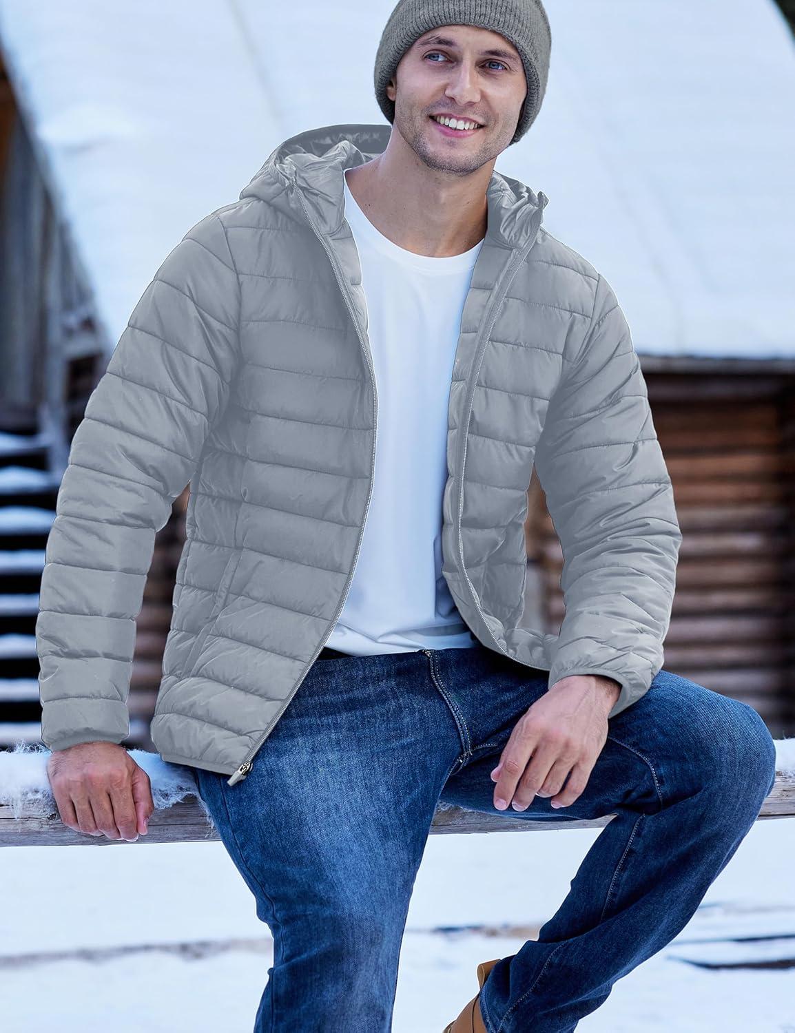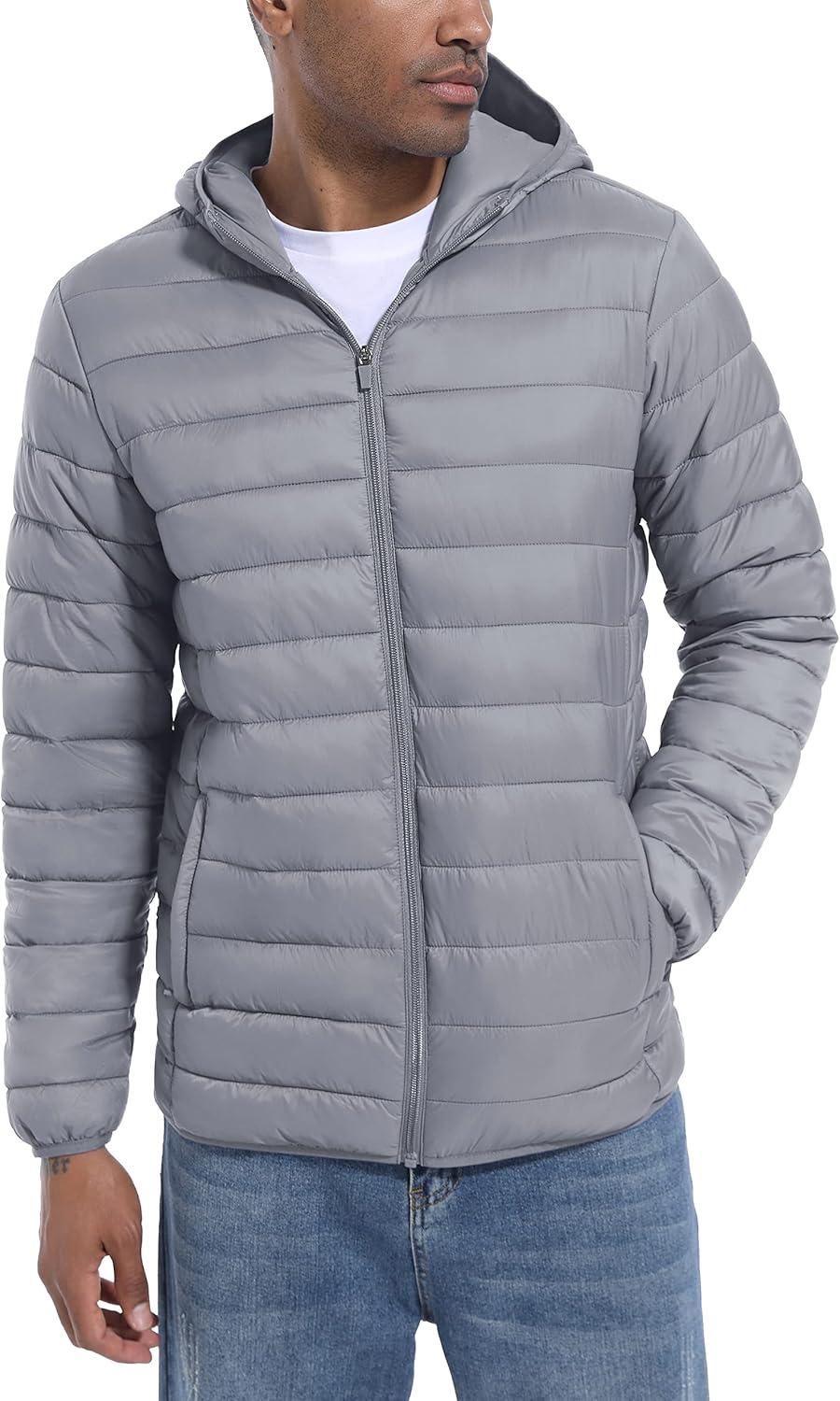 TACVASEN Men’s Lightweight Puffer Jacket with Hood Water Resistant Windproof Insulated Jacket Quilted Lined Winter Coats(Light Gray)