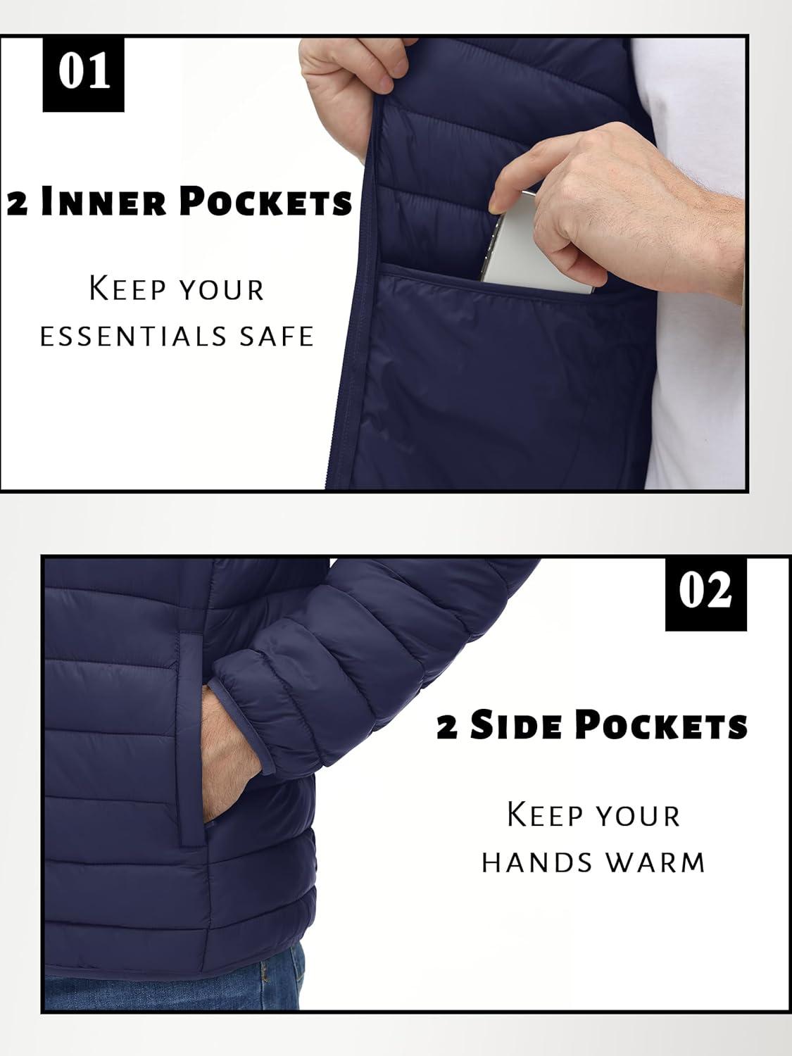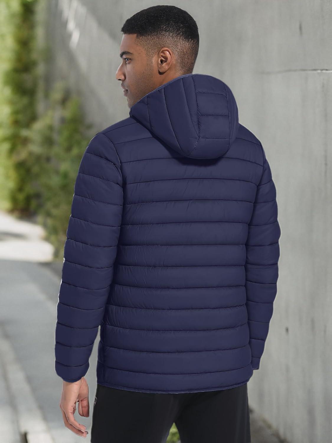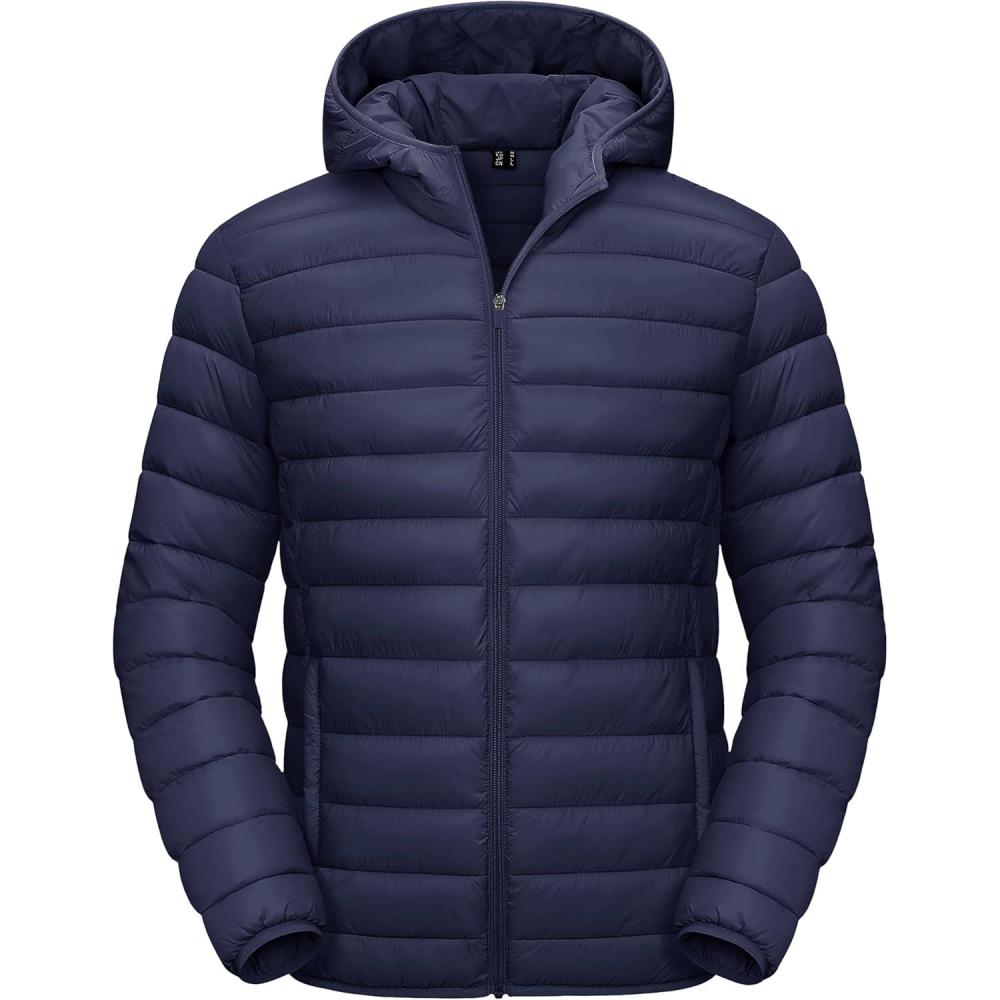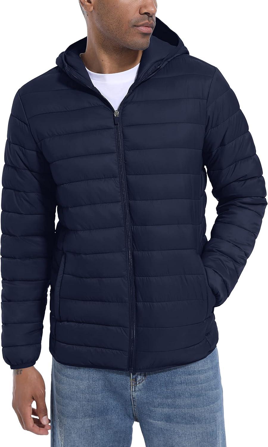 TACVASEN Men’s Lightweight Puffer Jacket with Hood Water Resistant Windproof Insulated Jacket Quilted Lined Winter Coats(Navy Blue)