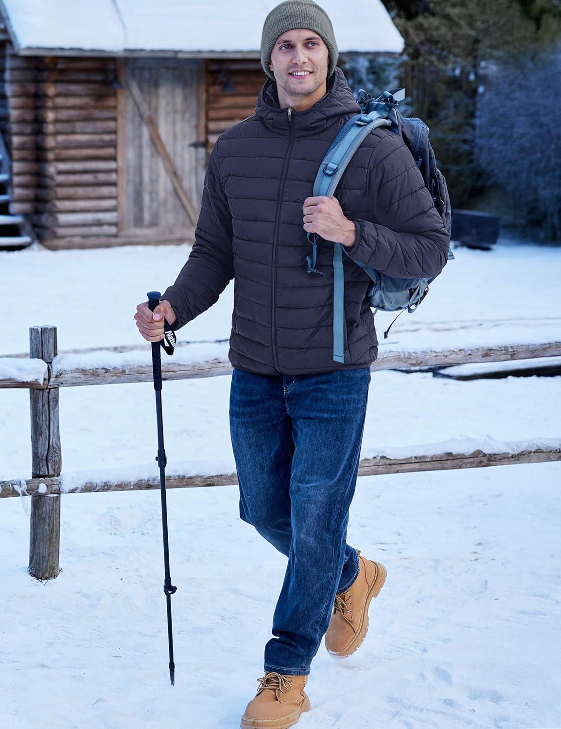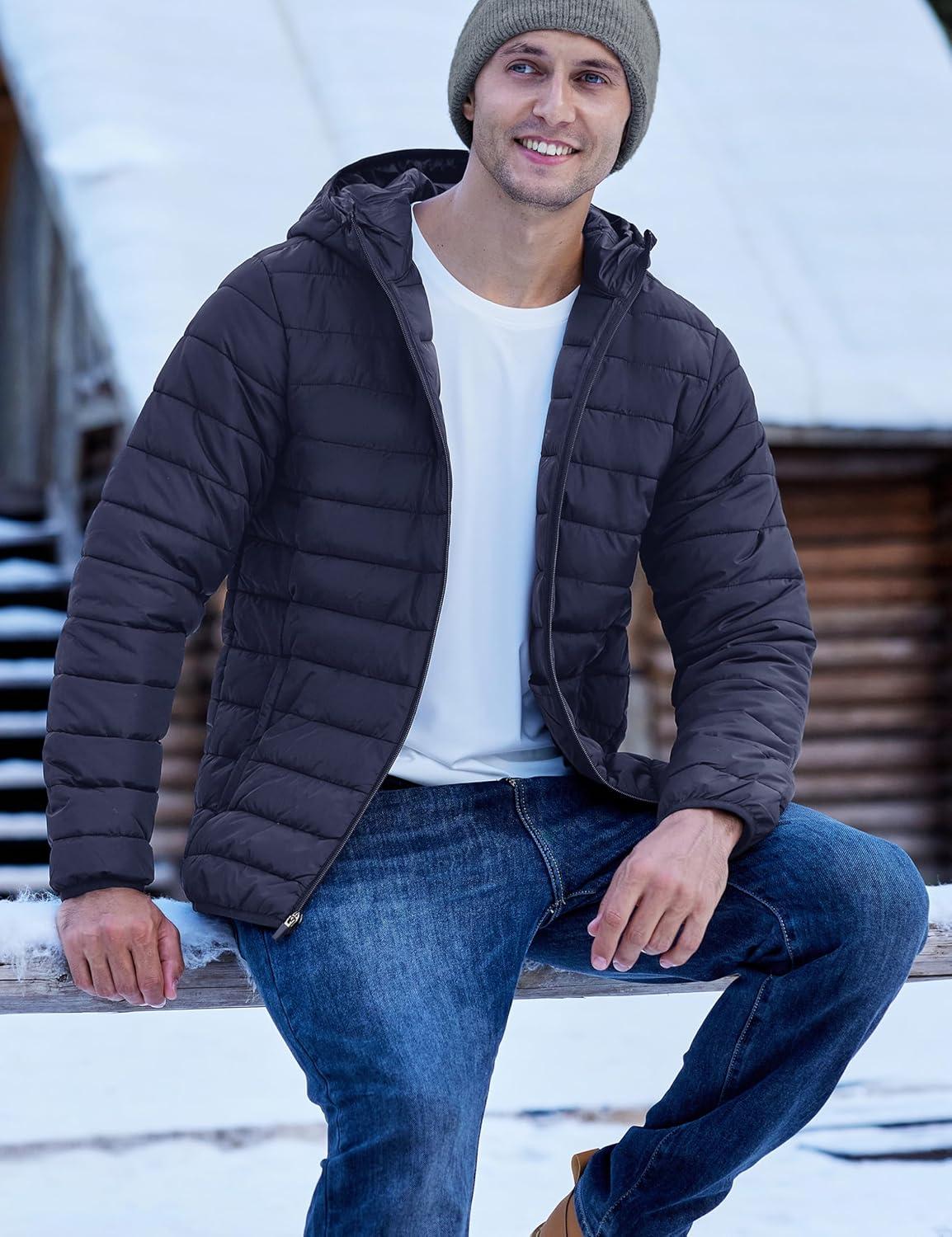 TACVASEN Men’s Lightweight Puffer Jacket with Hood Water Resistant Windproof Insulated Jacket Quilted Lined Winter Coats(Light Gray)