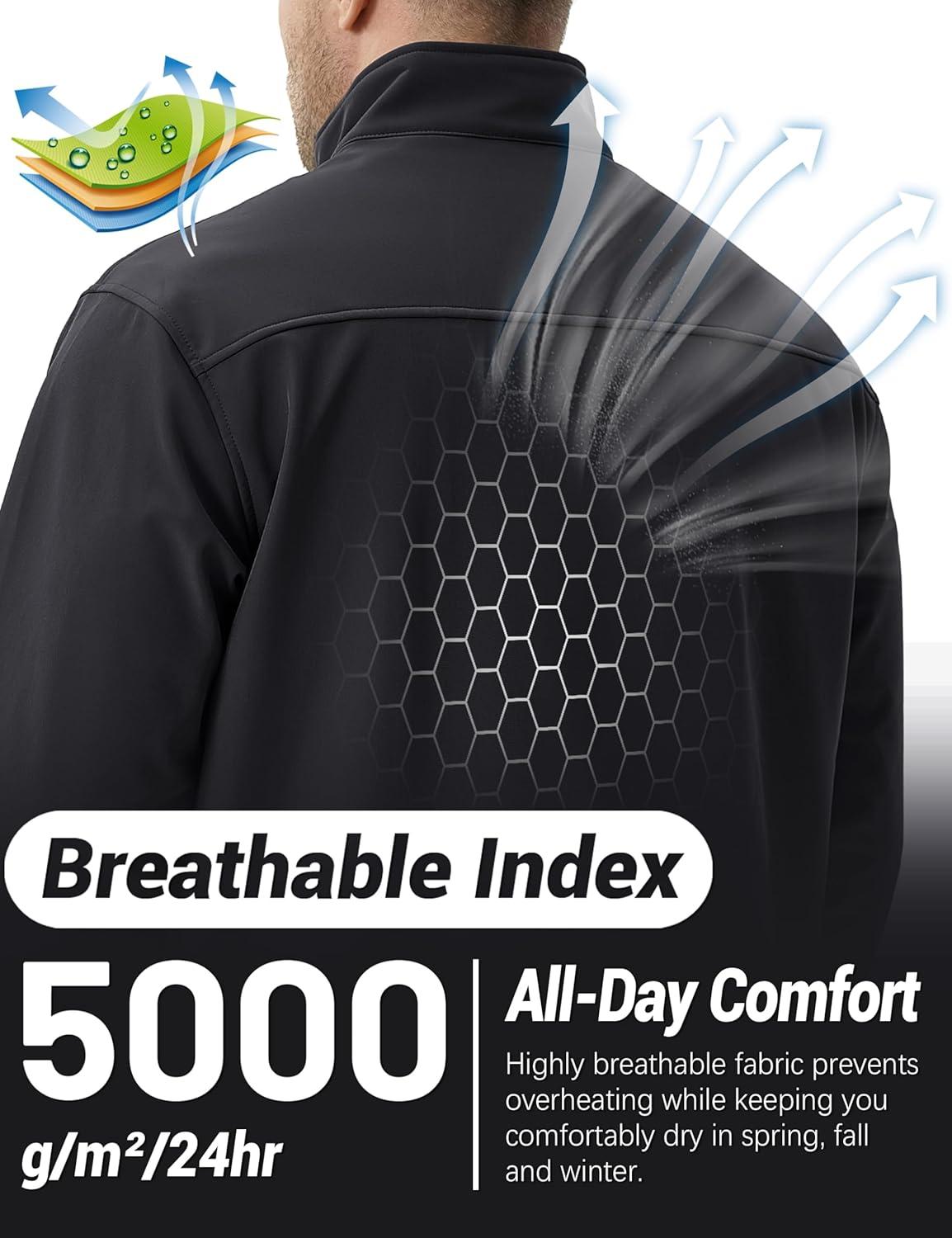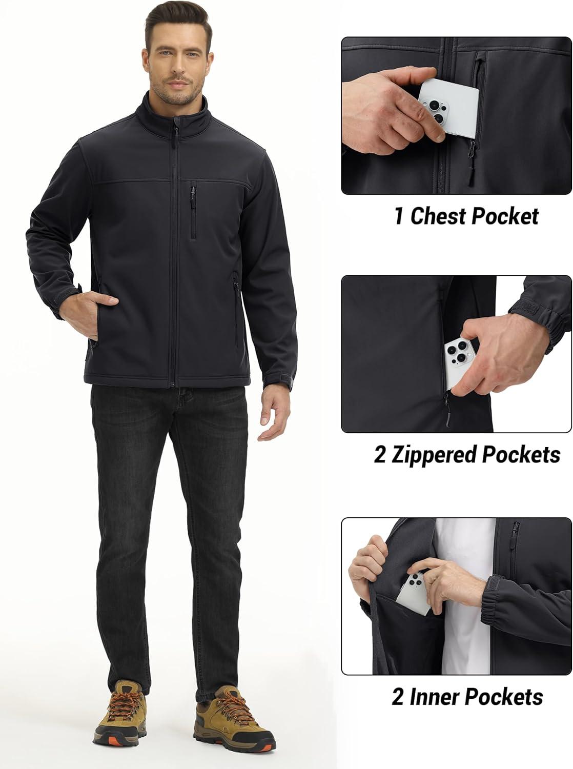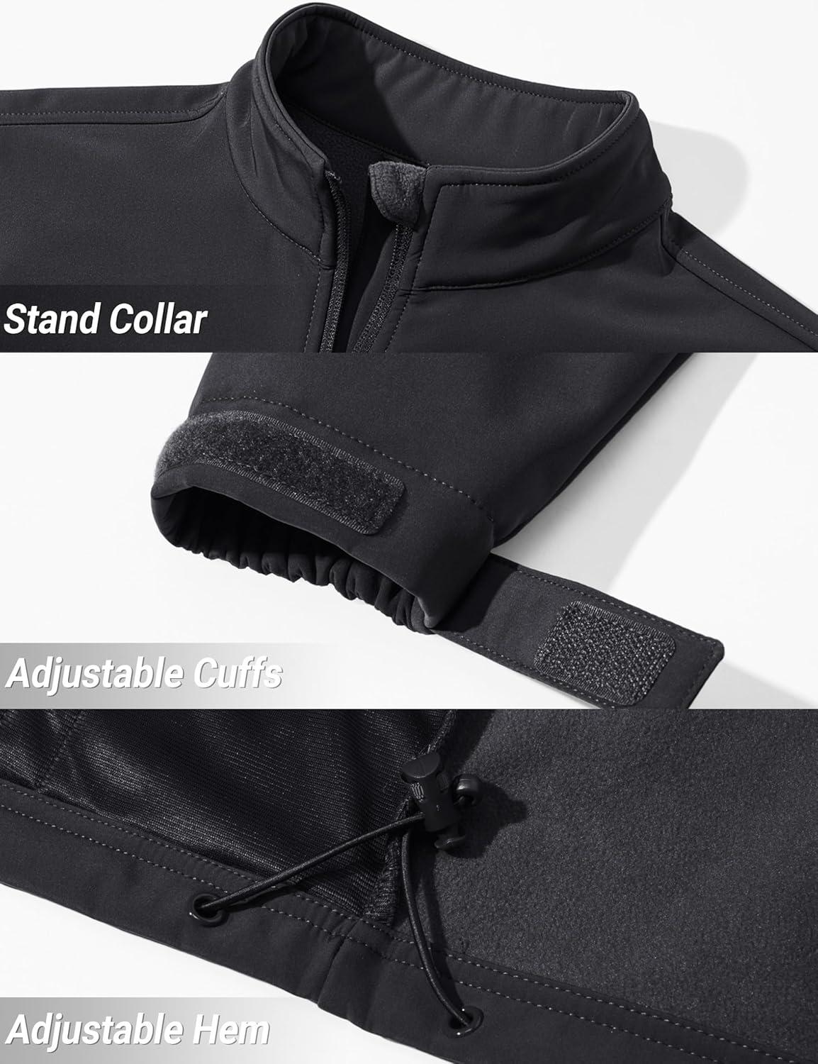TACVASEN Men’s Lightweight Softshell Jacket Fleece Lined Waterproof Tactical Rain Zip Up Winter Coat Windbreaker Casual(01-black)