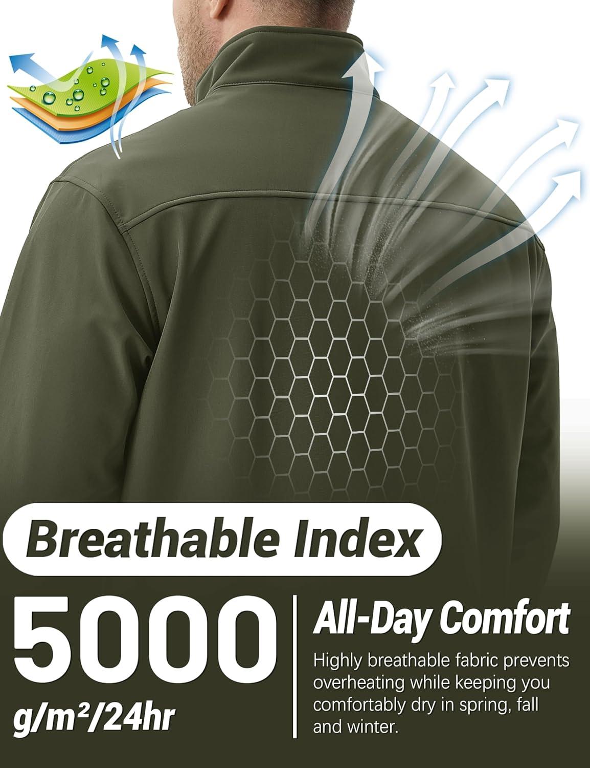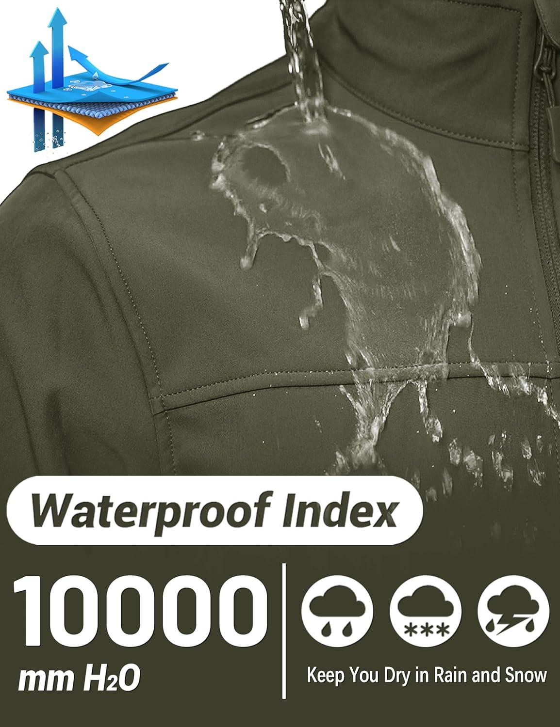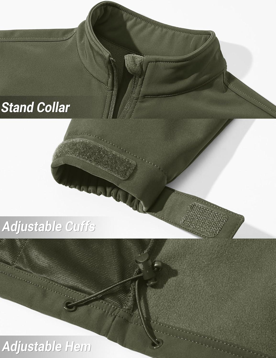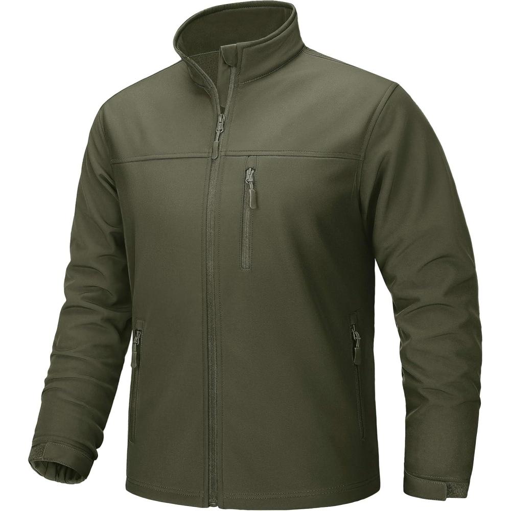 TACVASEN Men’s Lightweight Softshell Jacket Fleece Lined Waterproof Tactical Rain Zip Up Winter Coat Windbreaker Casual(05-army Green)