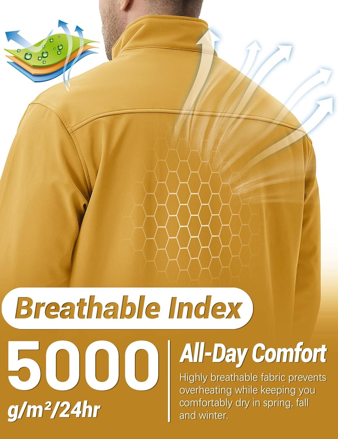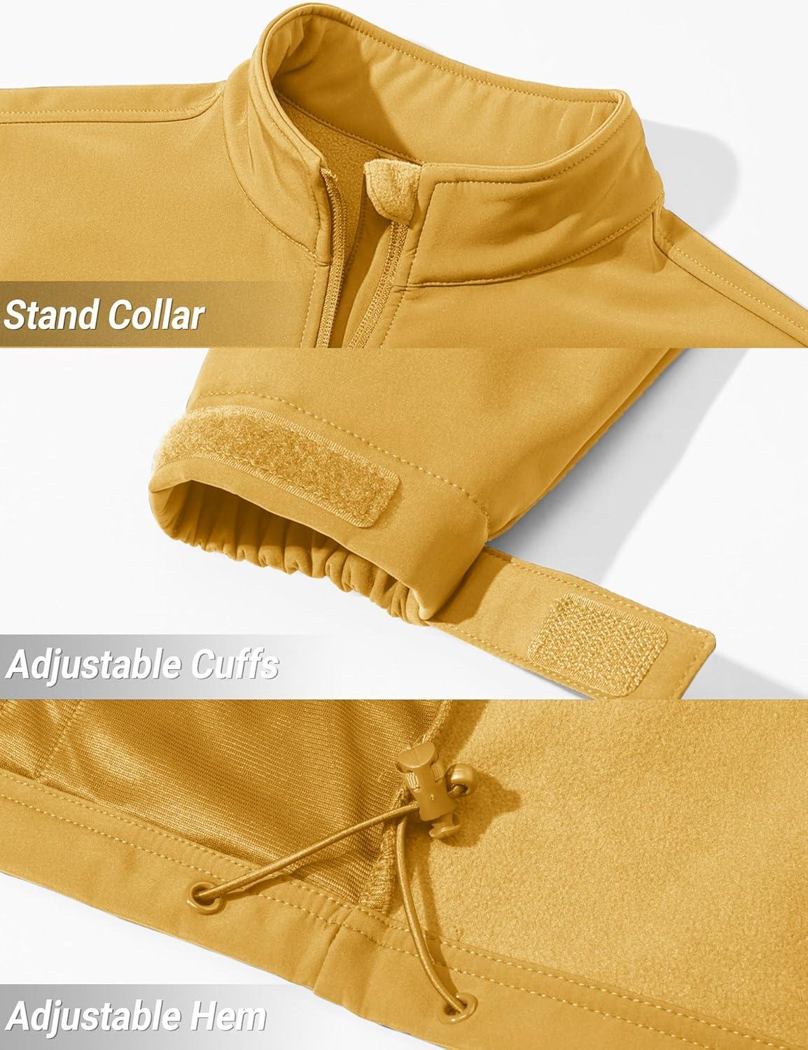 TACVASEN Men’s Lightweight Softshell Jacket Fleece Lined Waterproof Tactical Rain Zip Up Winter Coat Windbreaker Casual(13-yellow)