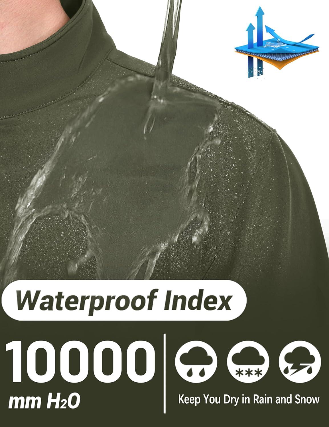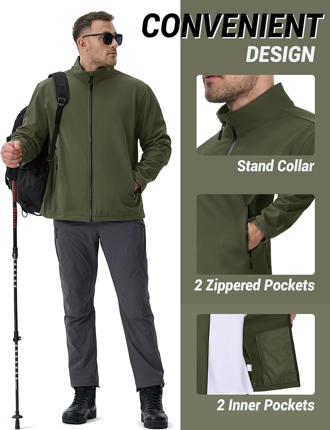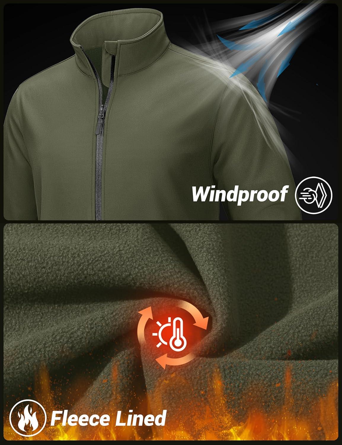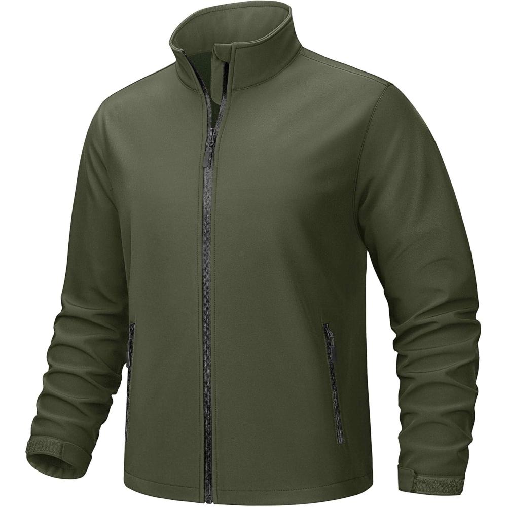 TACVASEN Men’s Lightweight Softshell Jacket Waterproof Lightweight Fleece Lined Winter Coat with 4 Pockets Windbreaker(Armygreen)