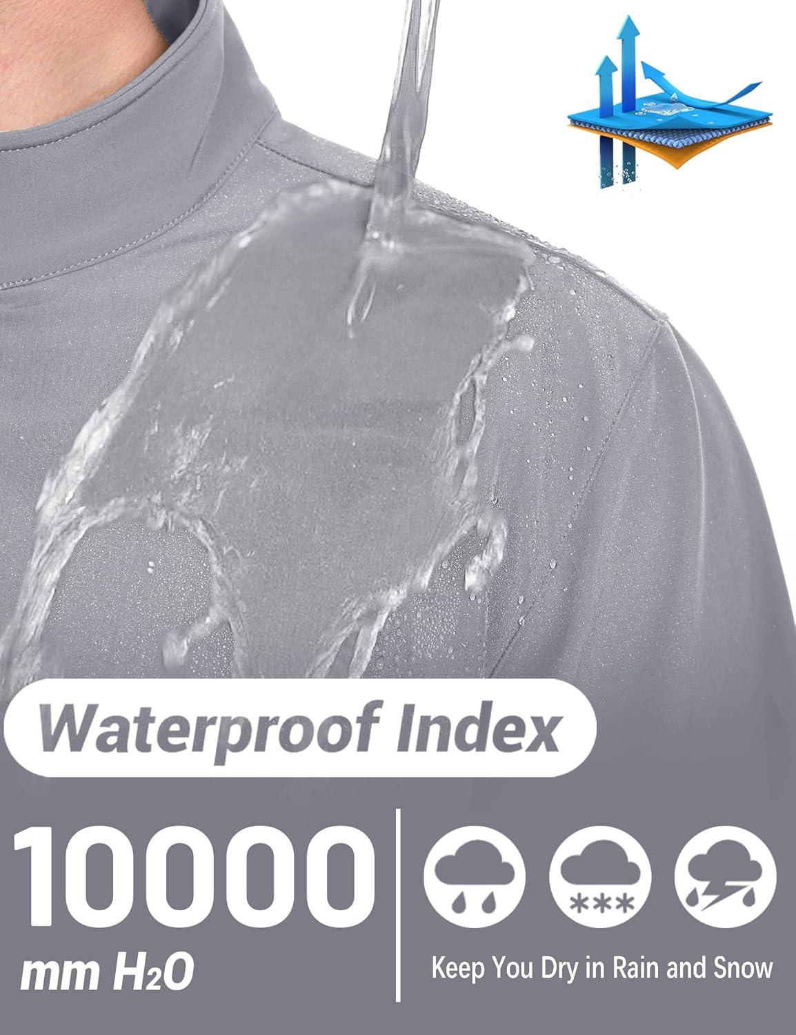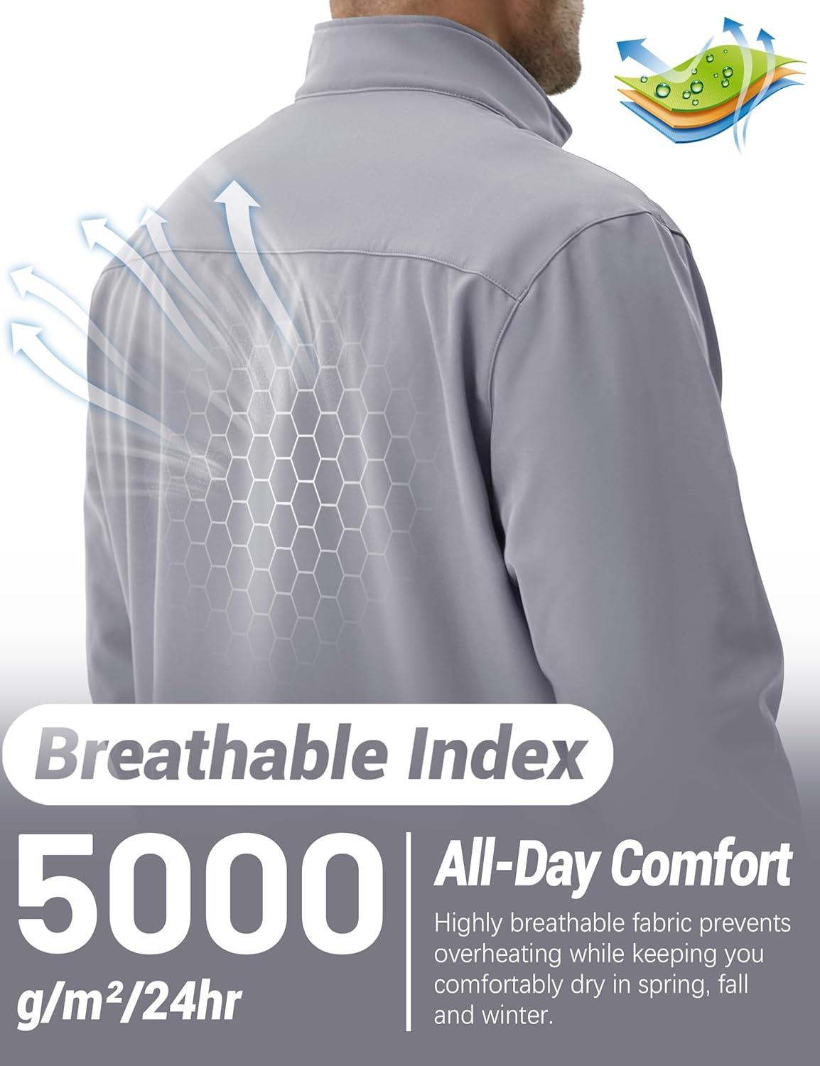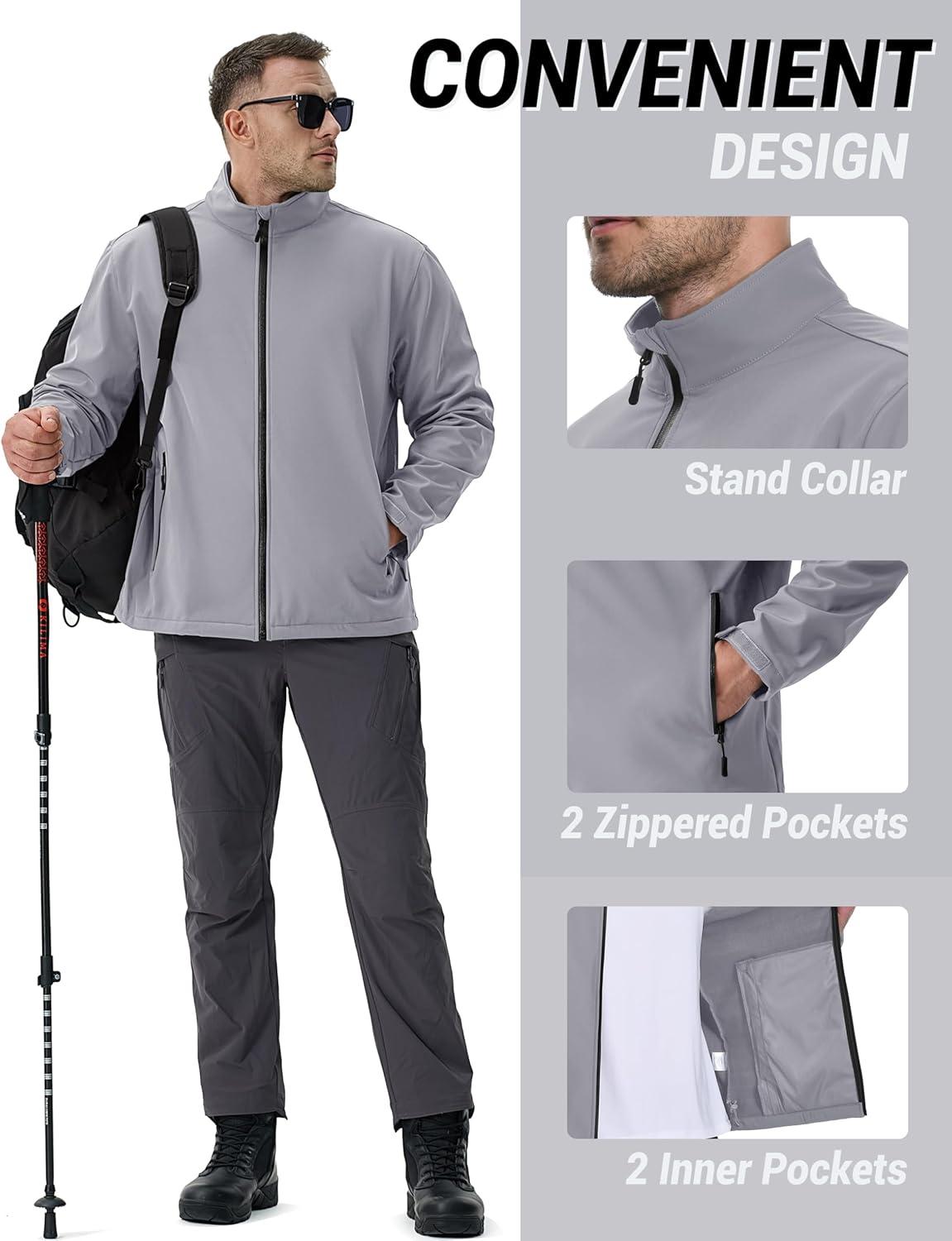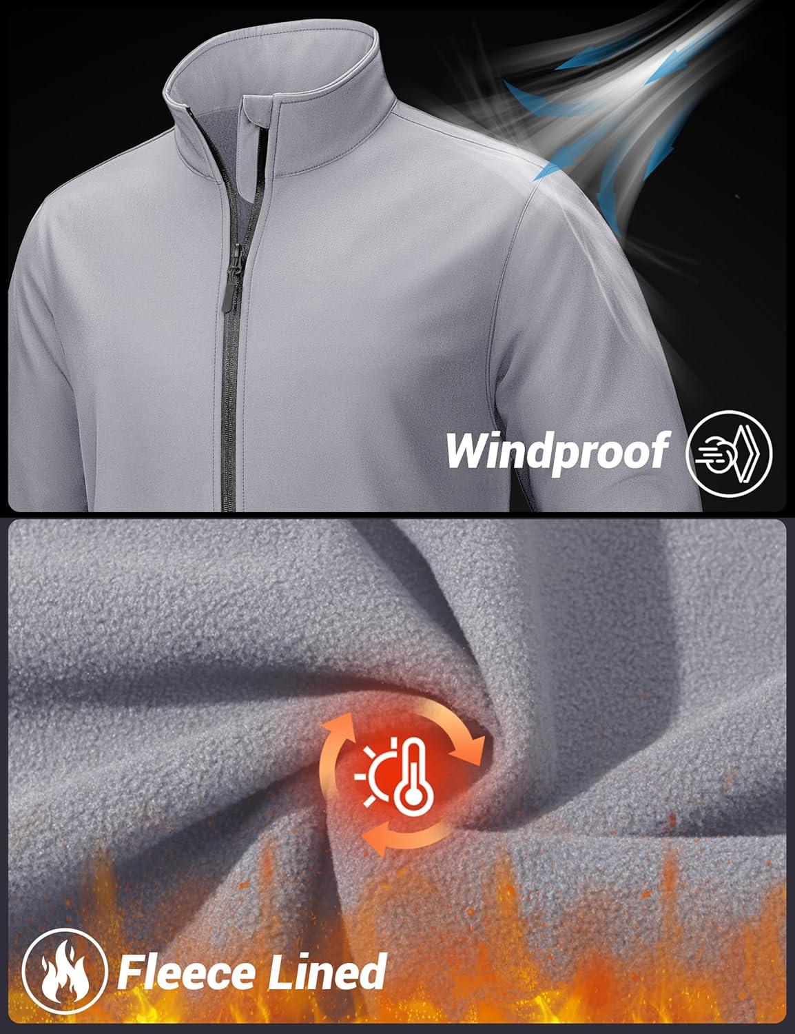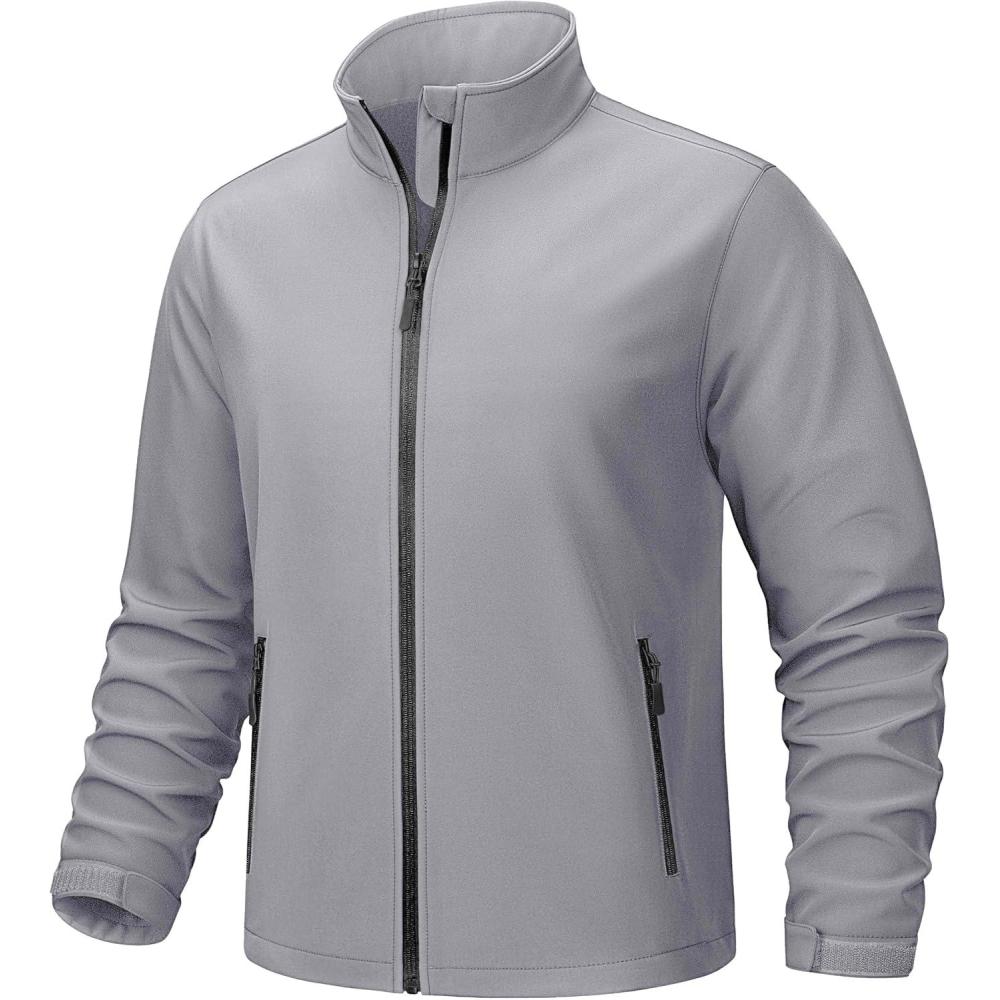 TACVASEN Men’s Lightweight Softshell Jacket Waterproof Lightweight Fleece Lined Winter Coat with 4 Pockets Windbreaker(Lightgrey)