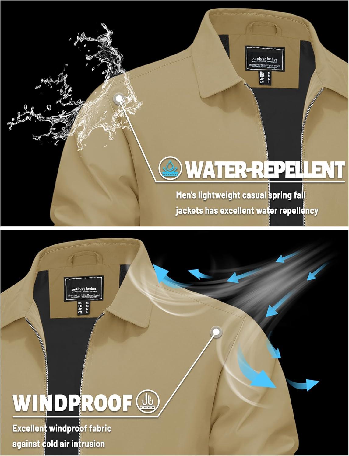 TACVASEN Mens Lightweight Windbreaker Full Zip Up Laydown Collar Jackets Light Casual Coat with Zip Pockets(Khaki)
