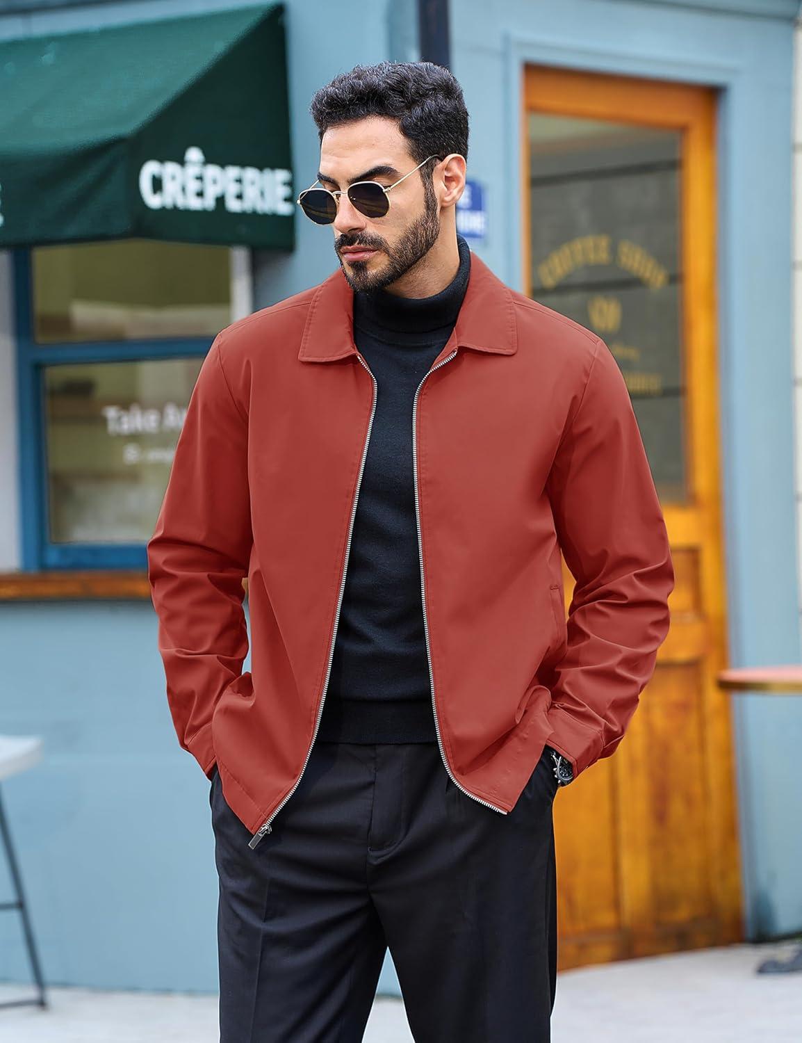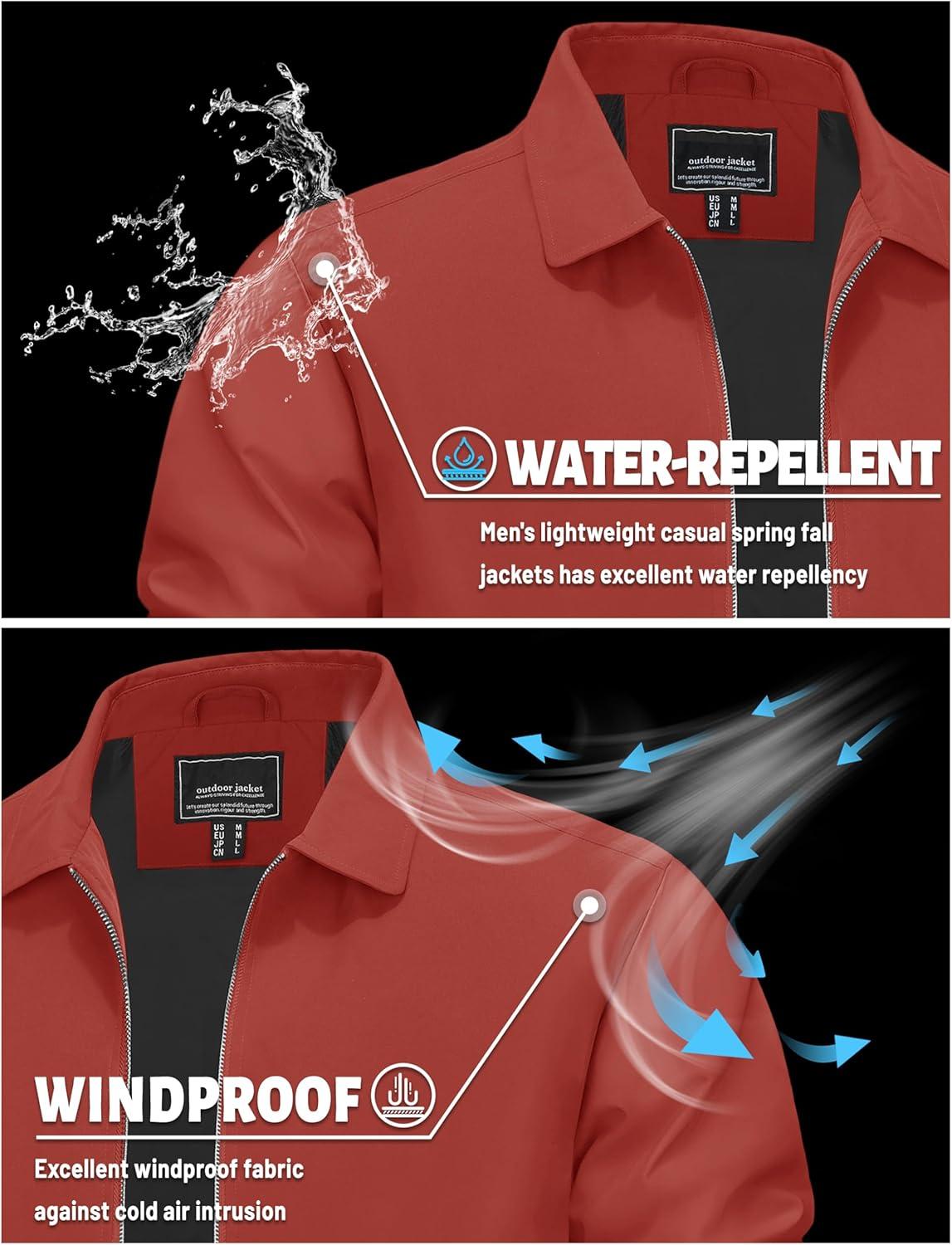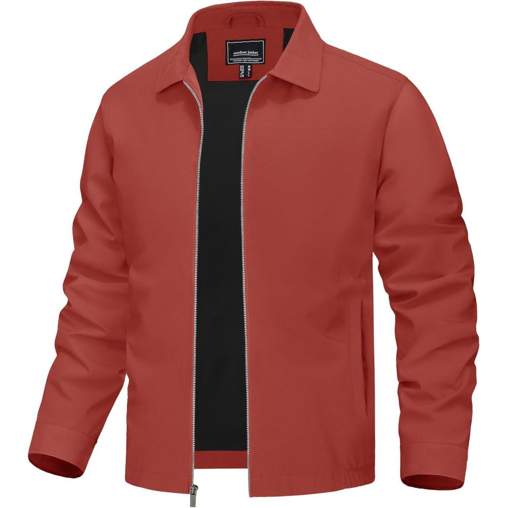 TACVASEN Mens Lightweight Windbreaker Full Zip Up Laydown Collar Jackets Light Casual Coat with Zip Pockets(Orange Red)