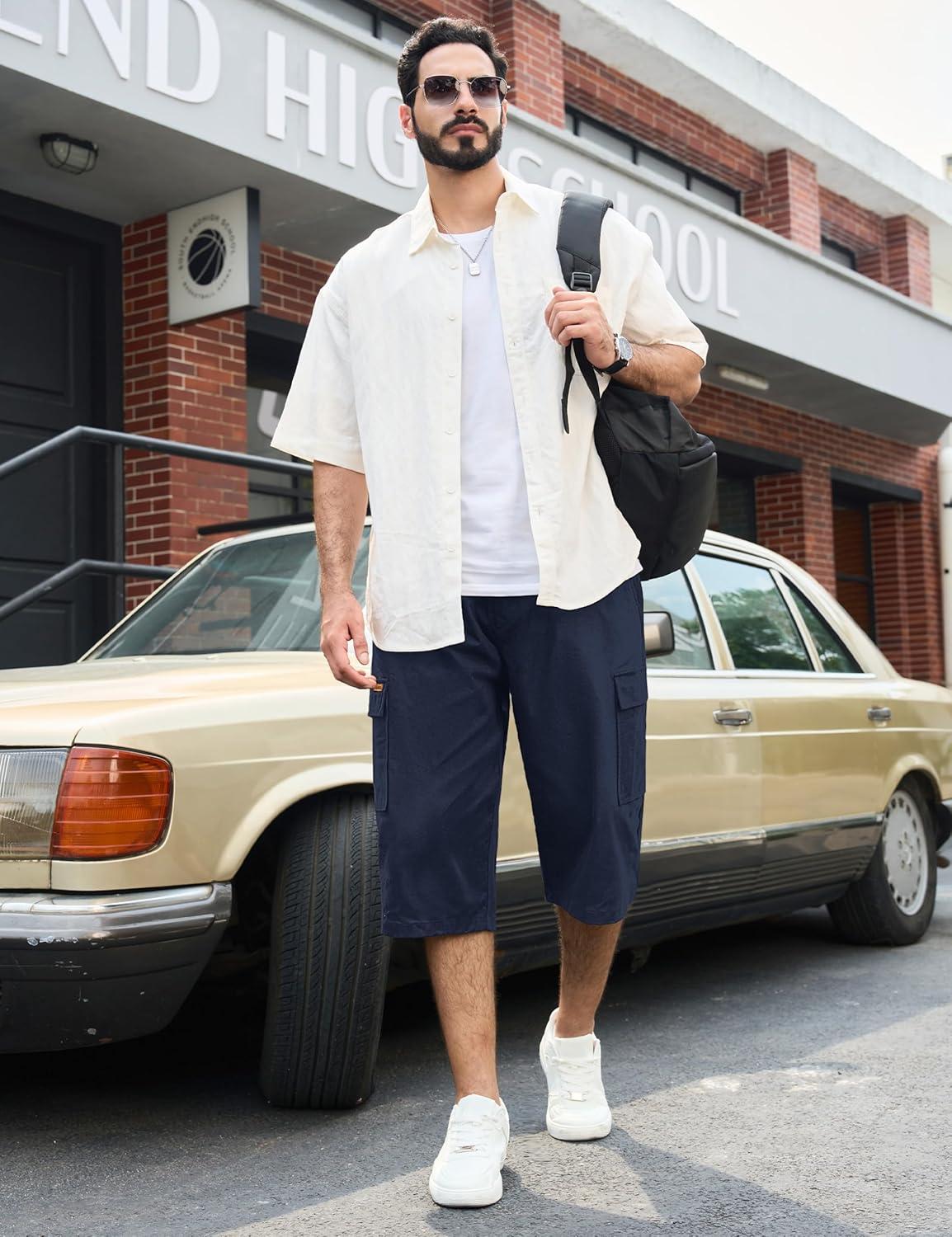 Be the first to review “TACVASEN Men’s Long Cargo Shorts Cotton Below Knee Capris with 6 Pockets Drawstring Elastic Waistband Capri Pants(#05navy)”