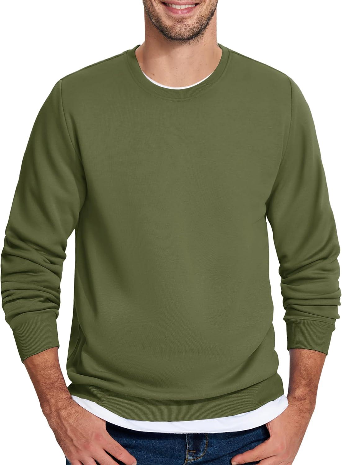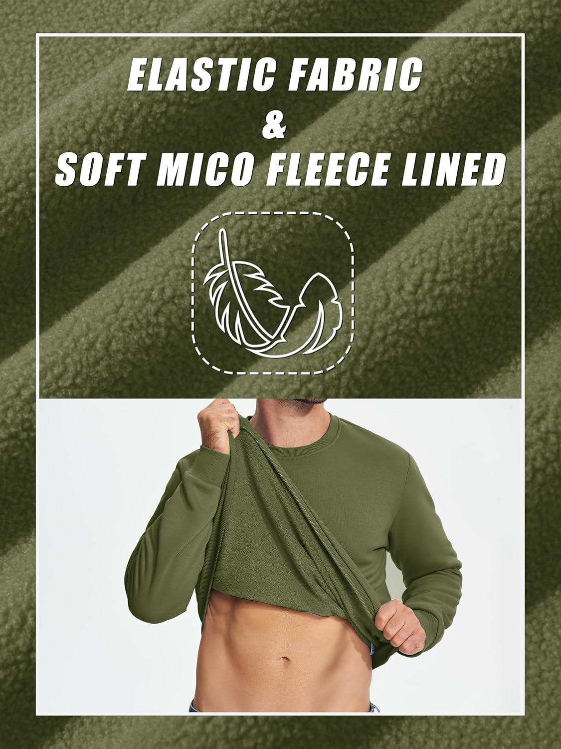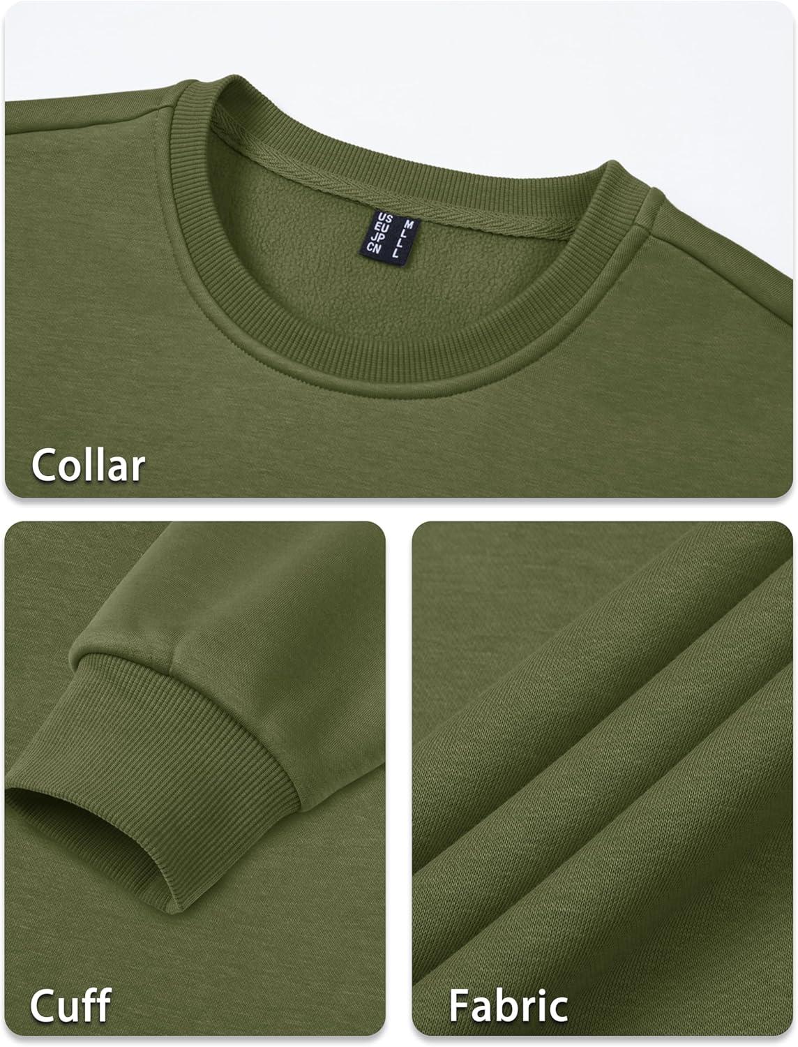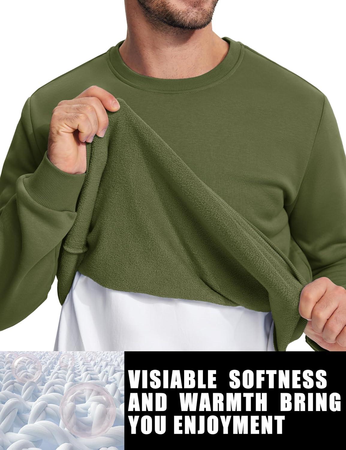 TACVASEN Men’s Long Sleeve Crewneck Sweatshirt Winter and Fall Casual Warm Sweatshirt Fleece Lined Pullover(Army Green)