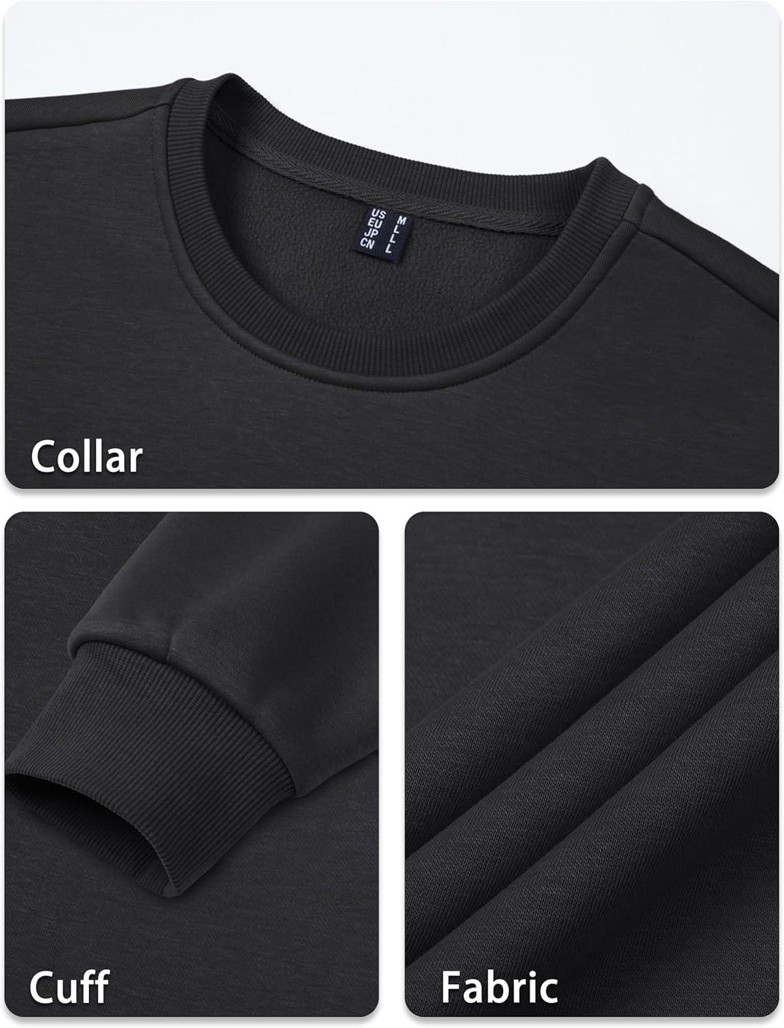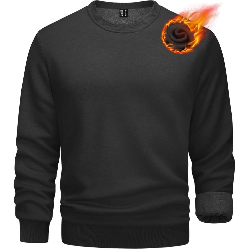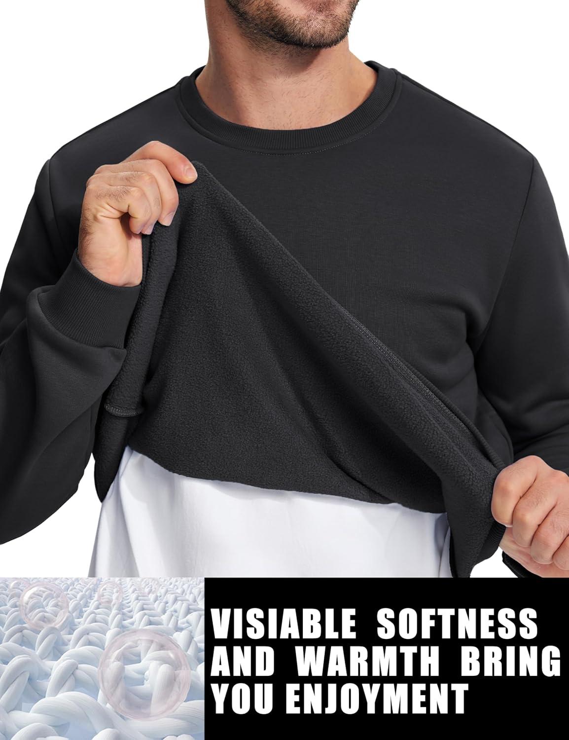 TACVASEN Men’s Long Sleeve Crewneck Sweatshirt Winter and Fall Casual Warm Sweatshirt Fleece Lined Pullover(Black)