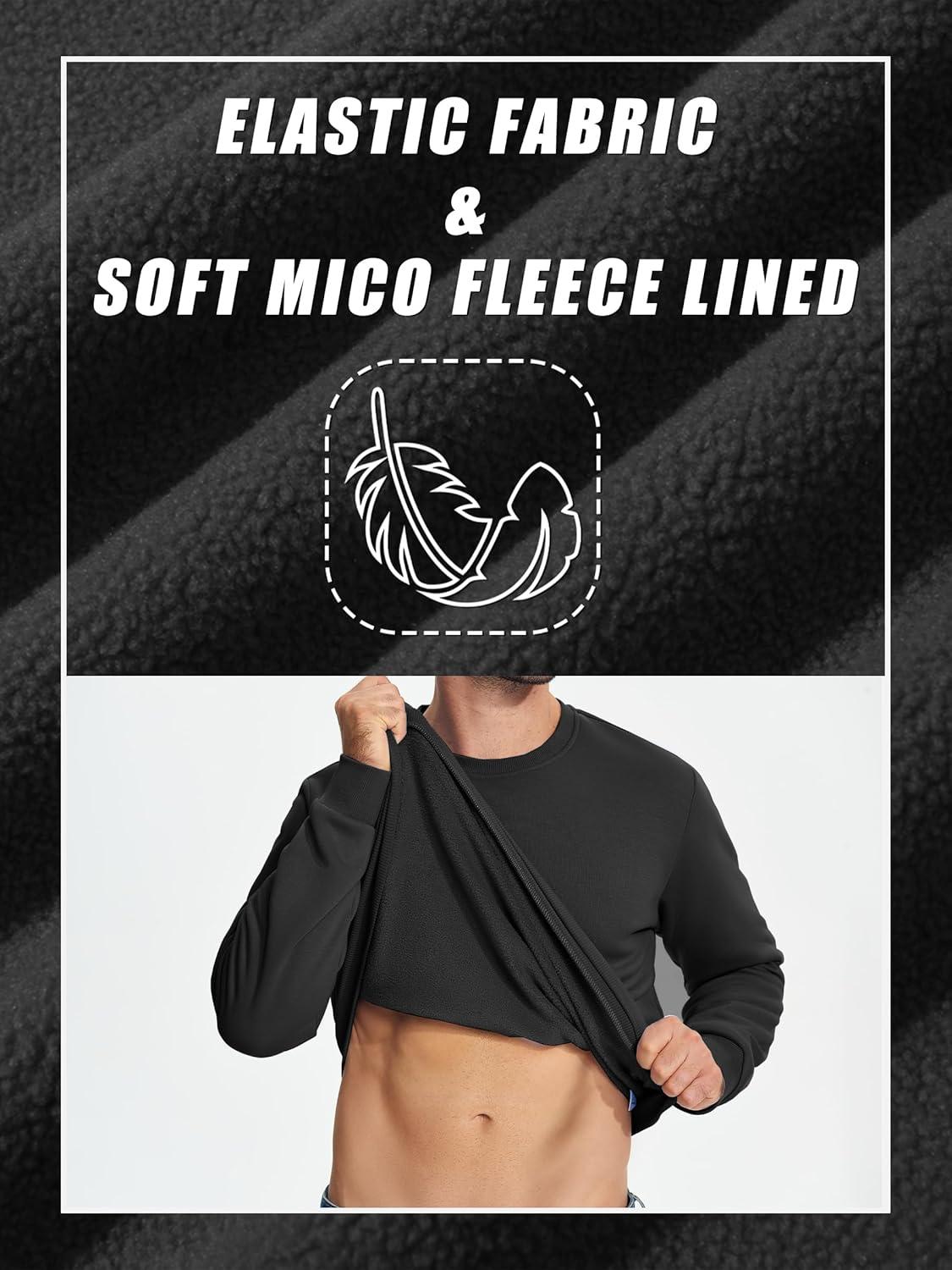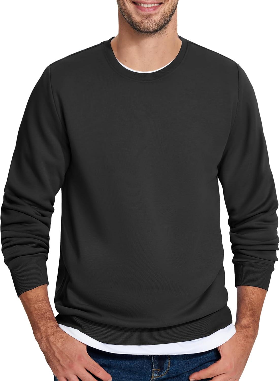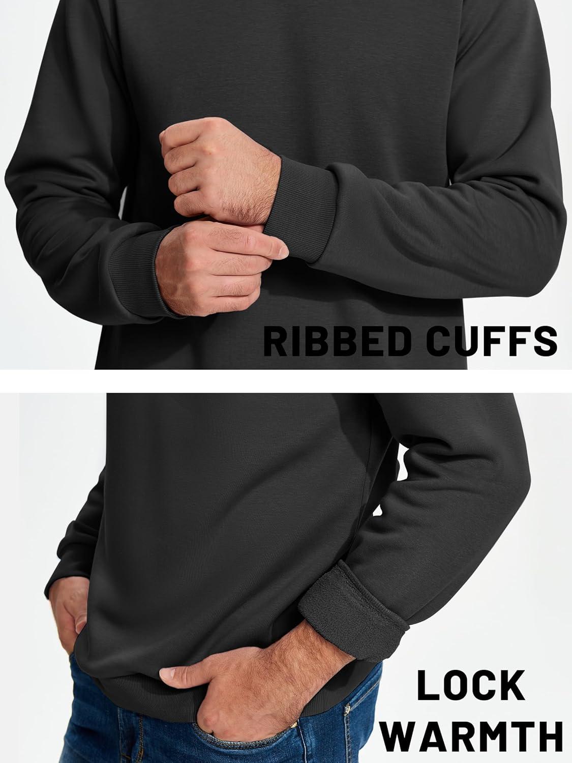 TACVASEN Men’s Long Sleeve Crewneck Sweatshirt Winter and Fall Casual Warm Sweatshirt Fleece Lined Pullover(Black)