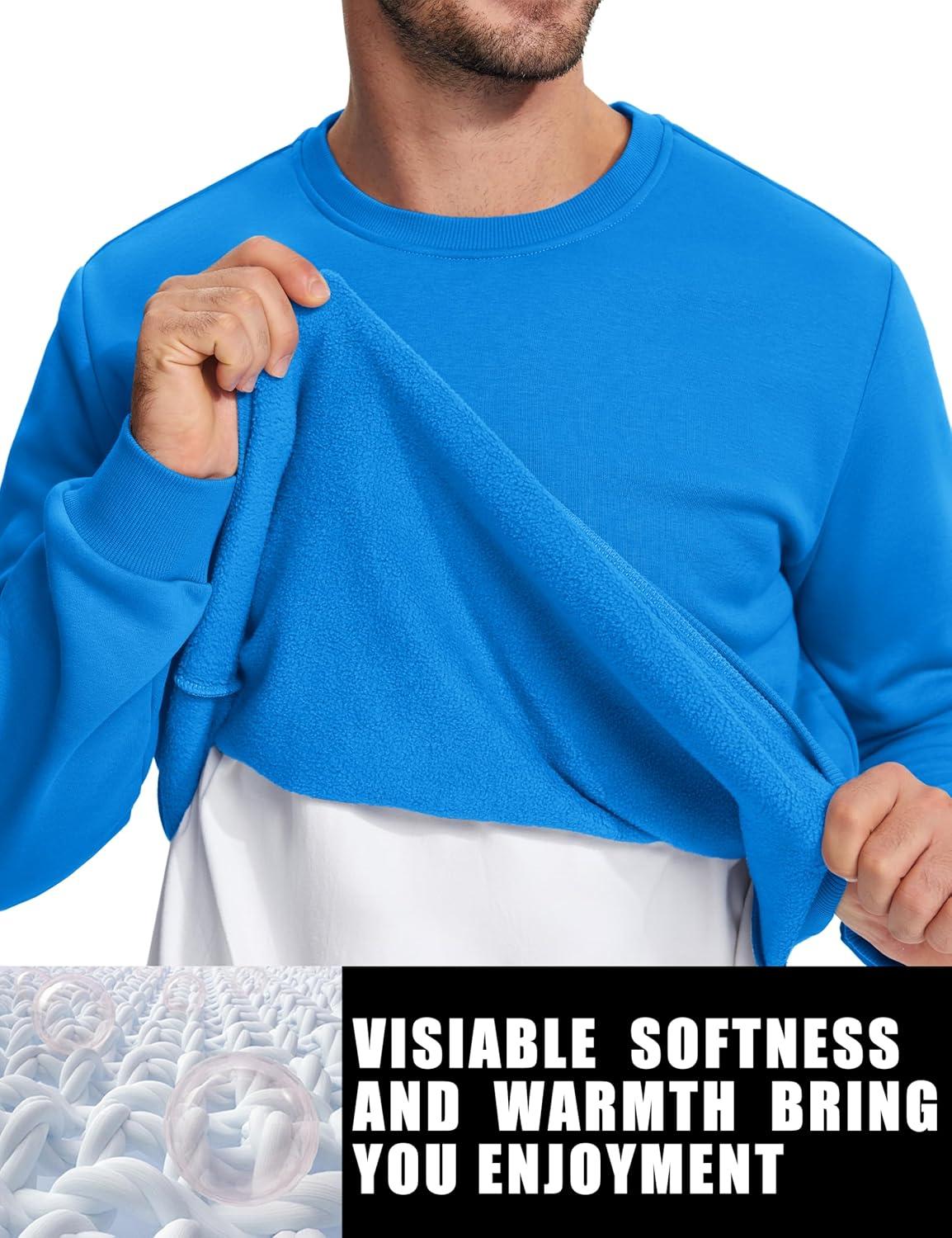 imageTACVASEN Mens Long Sleeve Crewneck Sweatshirt Winter and Fall Casual Warm Sweatshirt Fleece Lined PulloverBlack