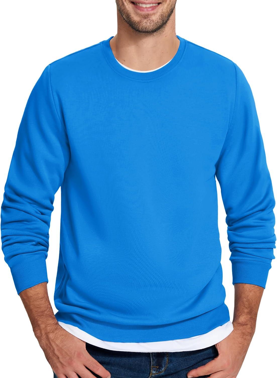 TACVASEN Men’s Long Sleeve Crewneck Sweatshirt Winter and Fall Casual Warm Sweatshirt Fleece Lined Pullover(Blue Green)