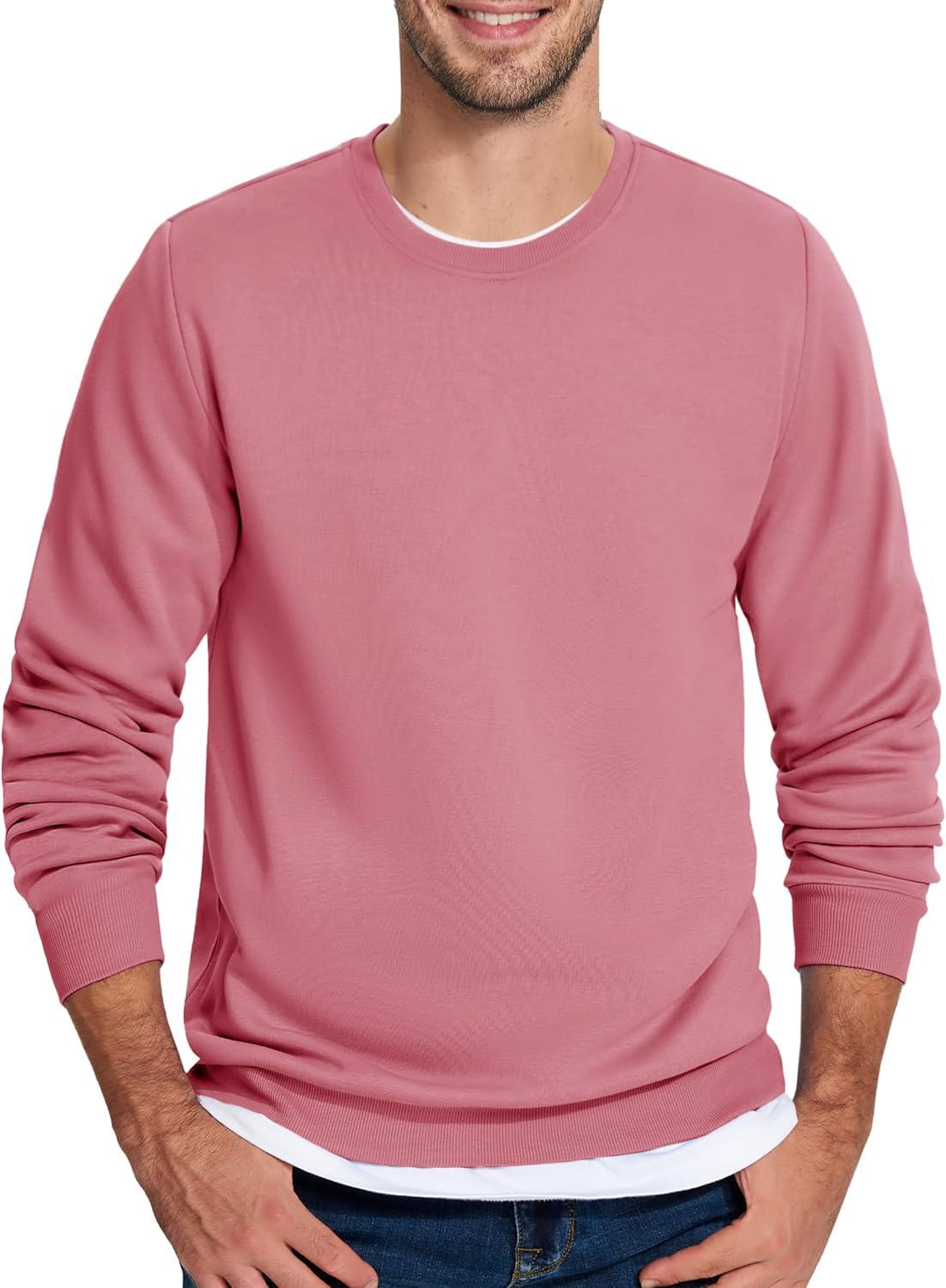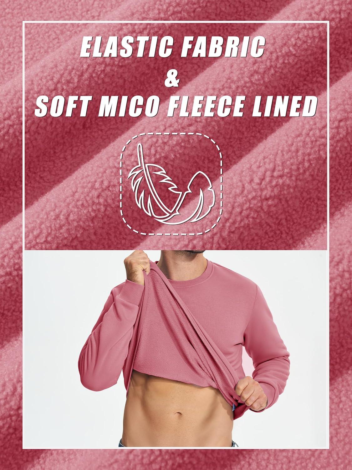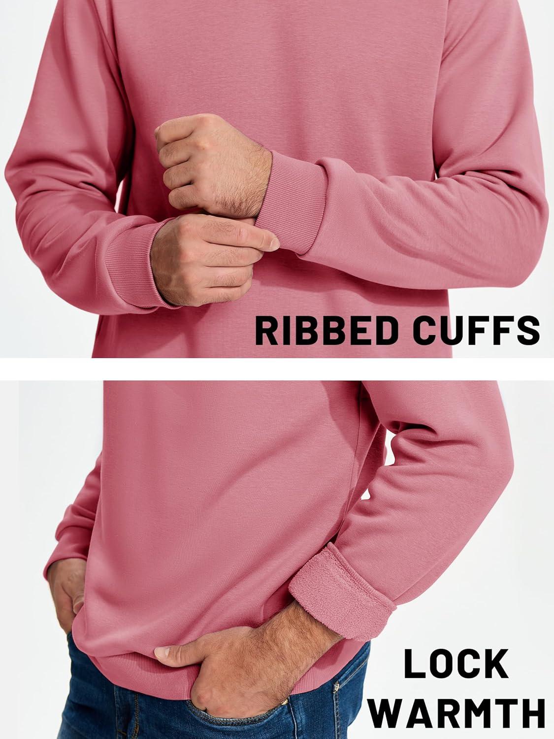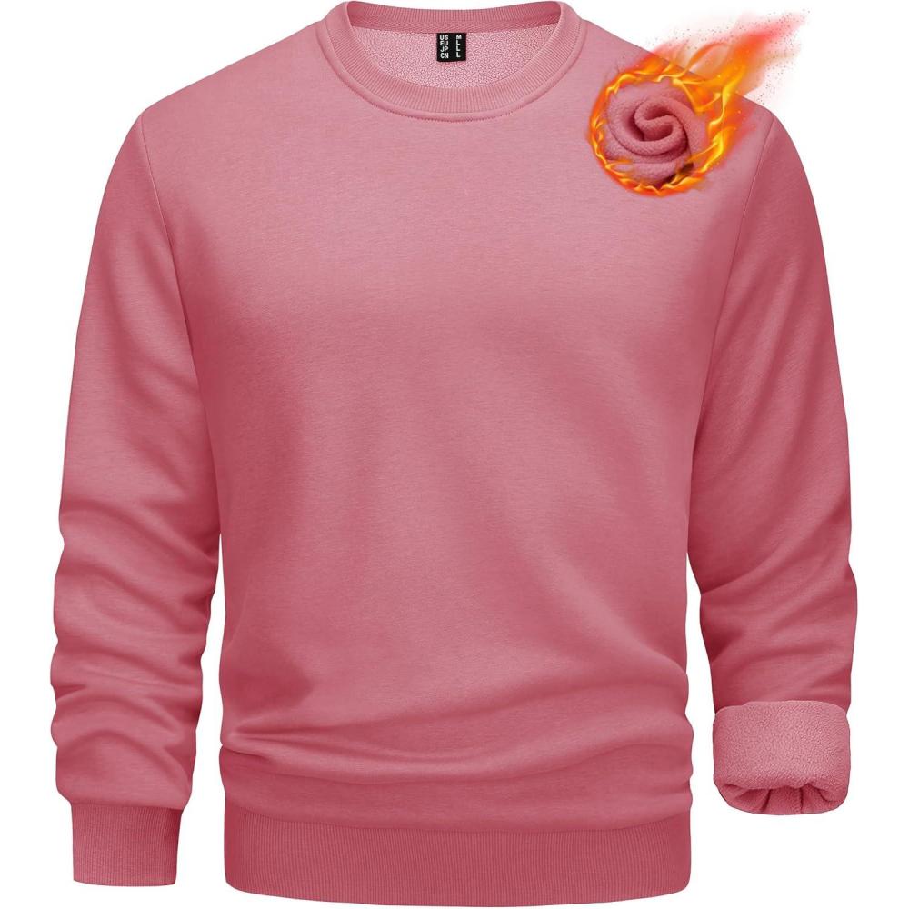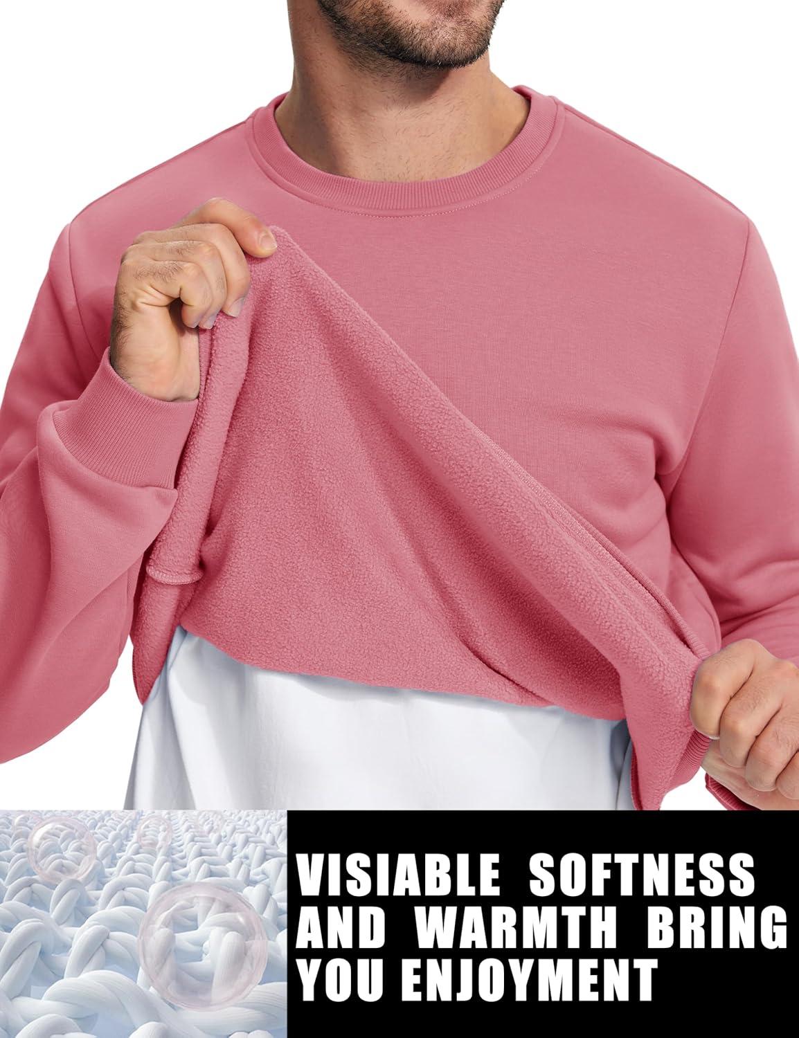 TACVASEN Men’s Long Sleeve Crewneck Sweatshirt Winter and Fall Casual Warm Sweatshirt Fleece Lined Pullover(Grey Pink)