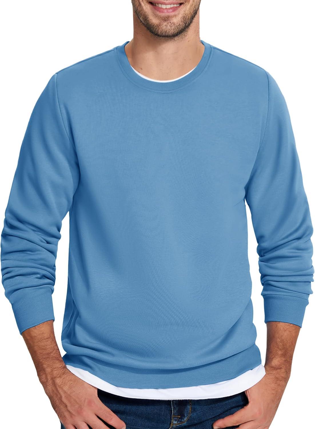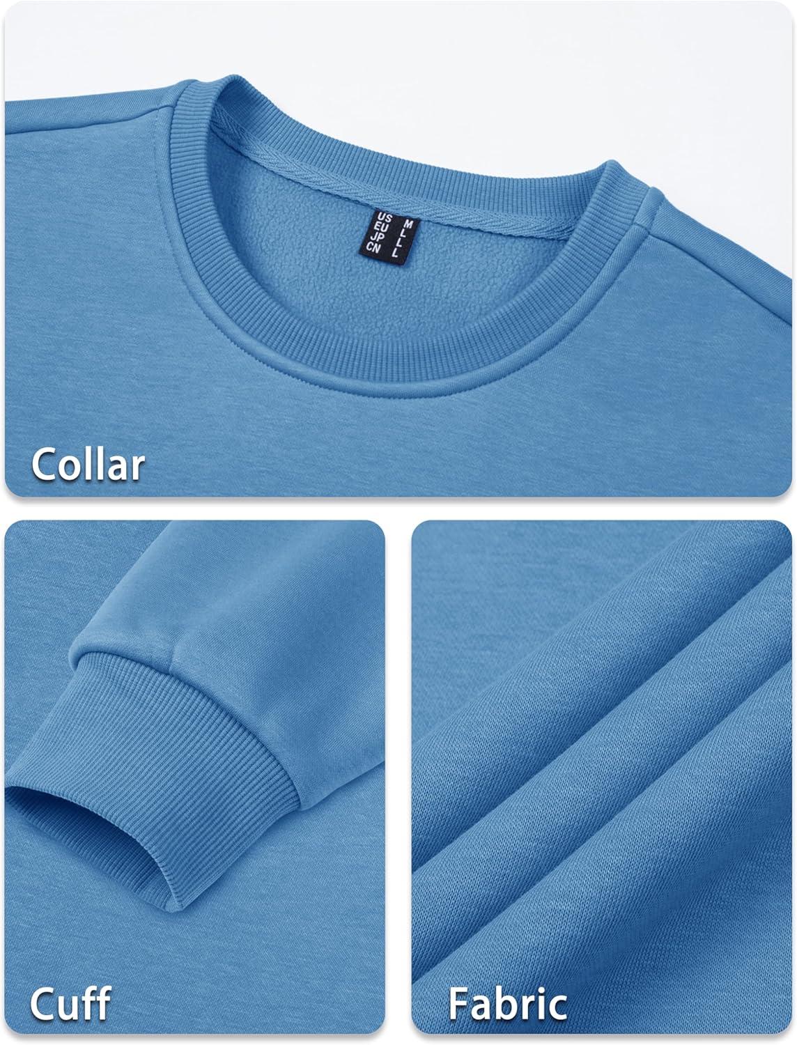 TACVASEN Men’s Long Sleeve Crewneck Sweatshirt Winter and Fall Casual Warm Sweatshirt Fleece Lined Pullover(Haze Blue)