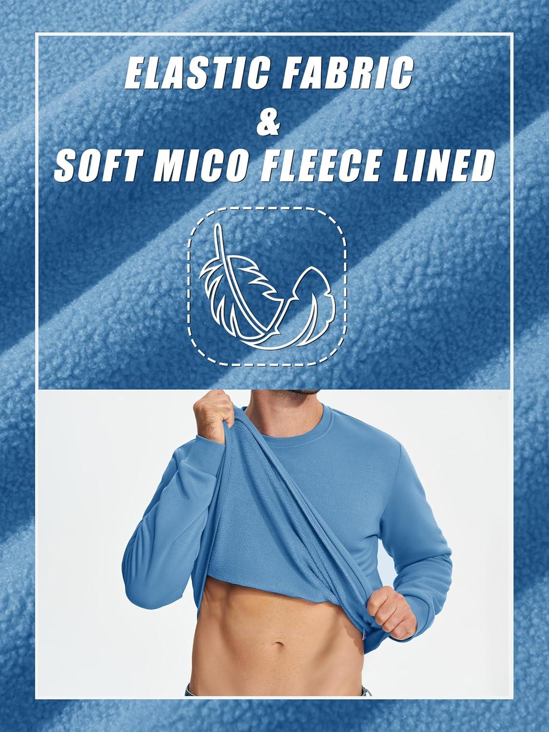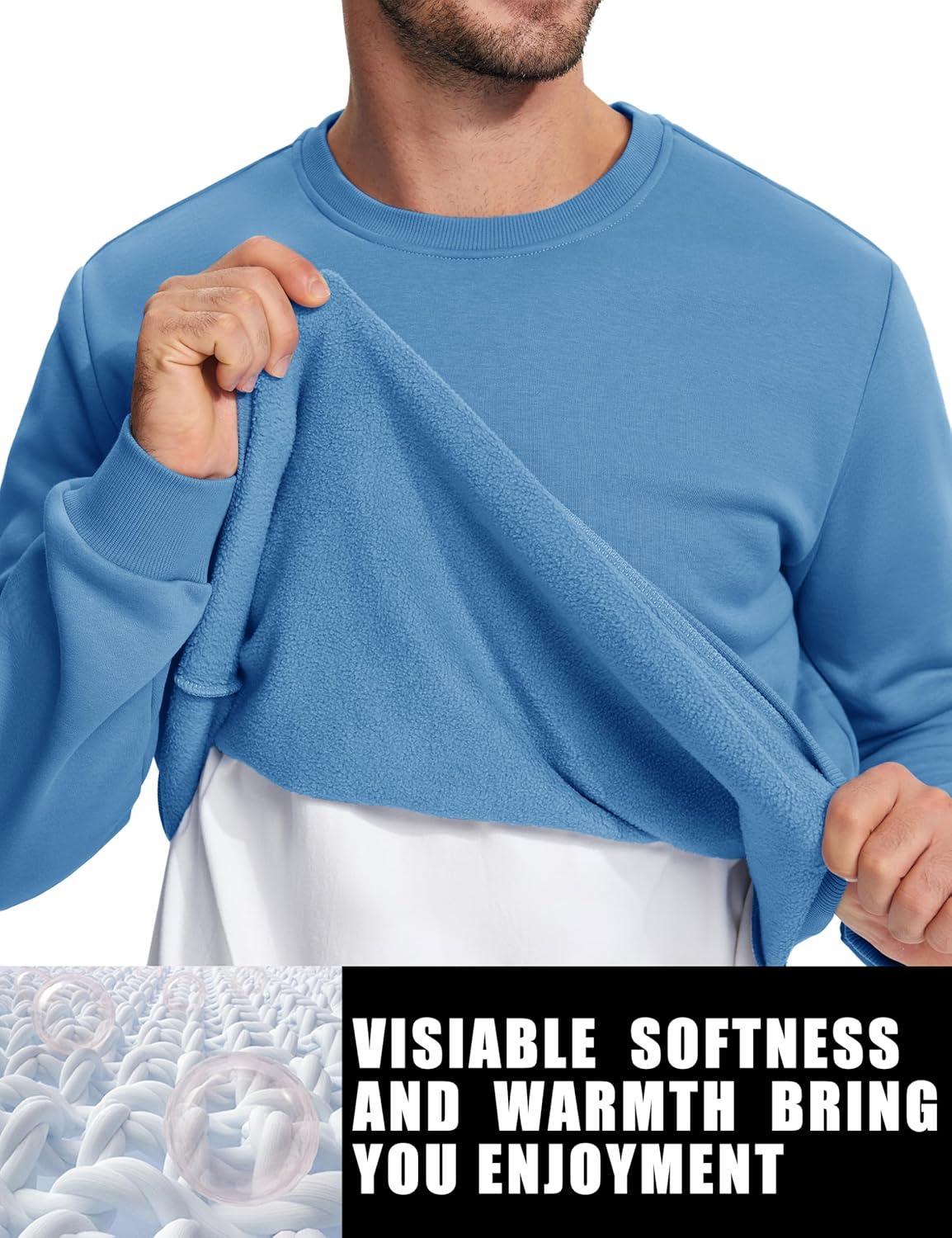 imageTACVASEN Mens Long Sleeve Crewneck Sweatshirt Winter and Fall Casual Warm Sweatshirt Fleece Lined PulloverIce Blue