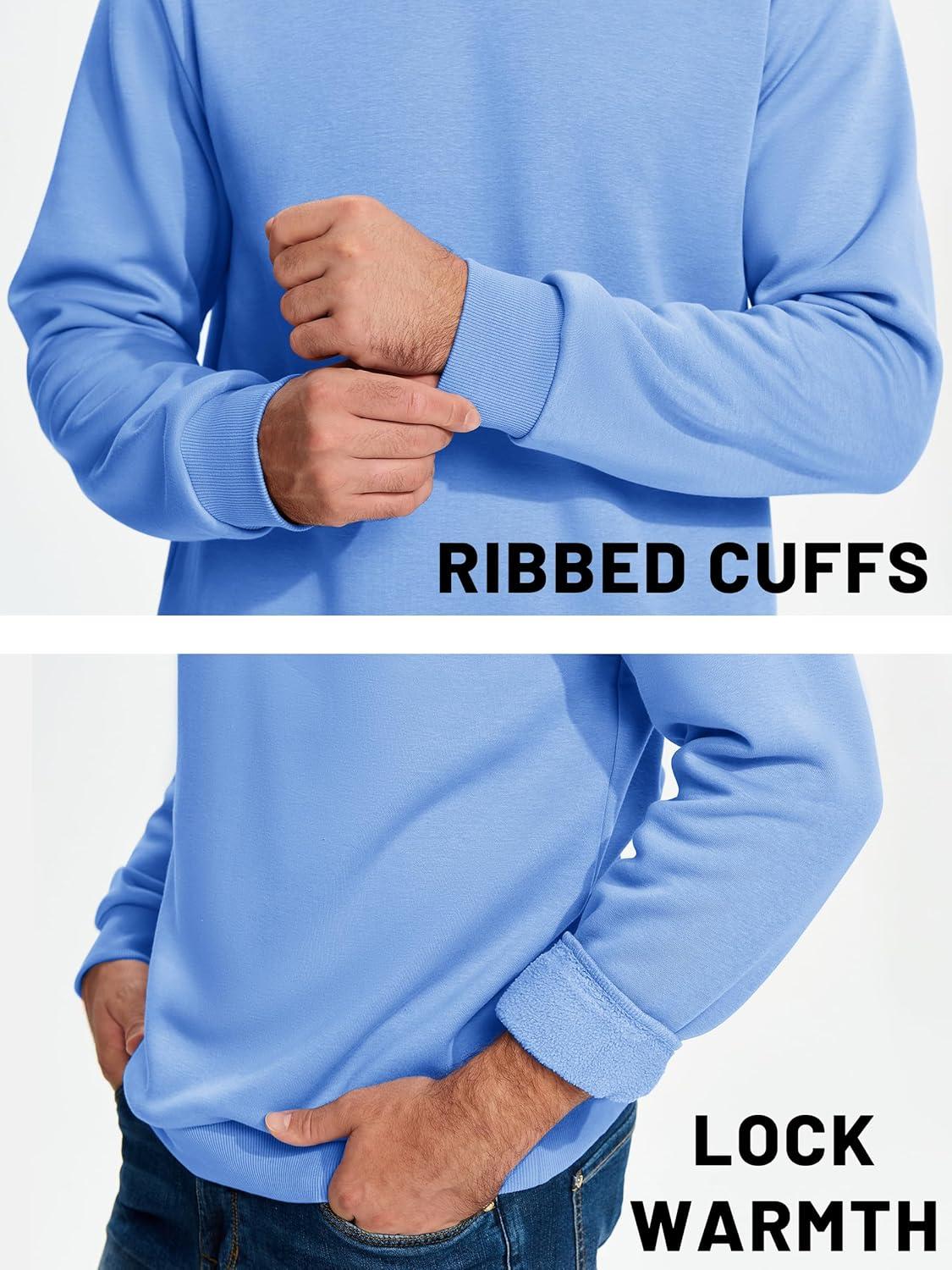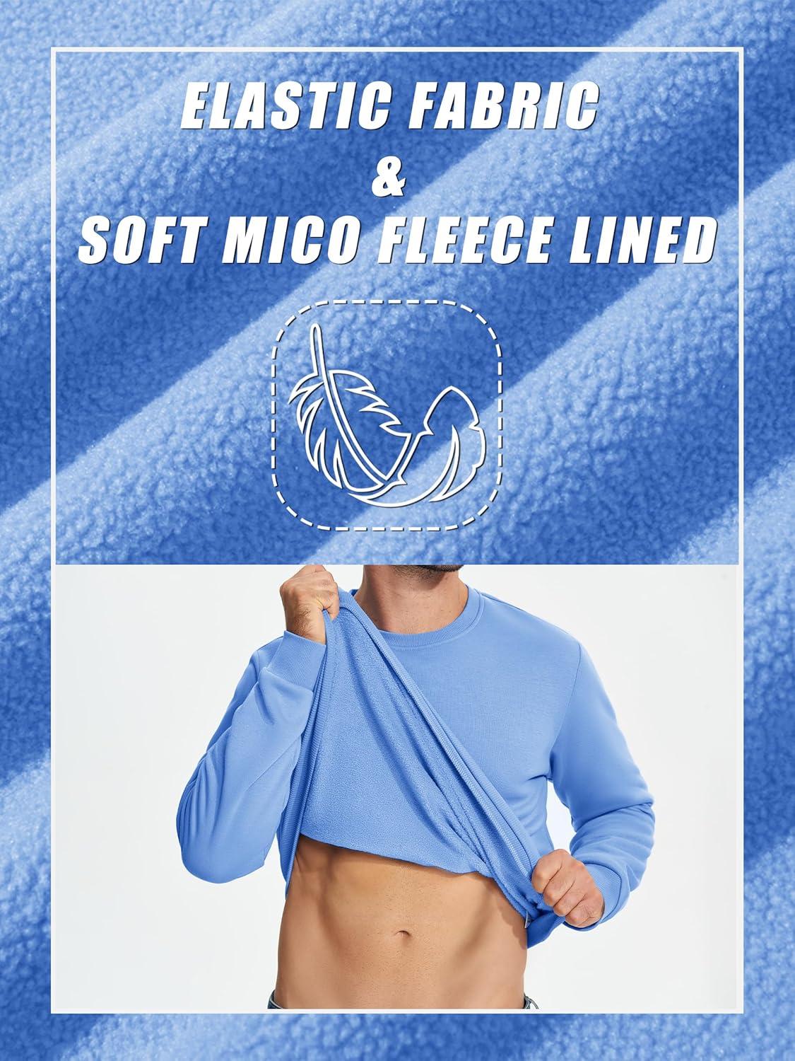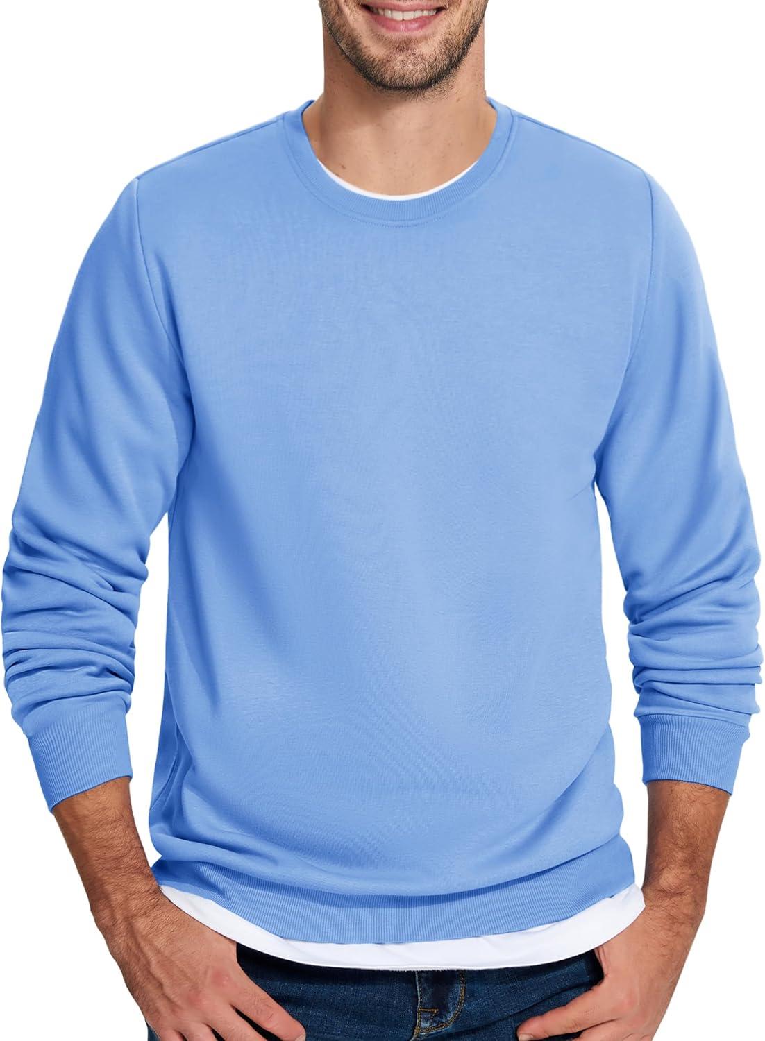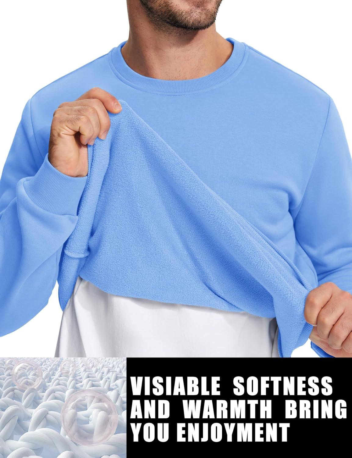 TACVASEN Men’s Long Sleeve Crewneck Sweatshirt Winter and Fall Casual Warm Sweatshirt Fleece Lined Pullover(Light Blue)