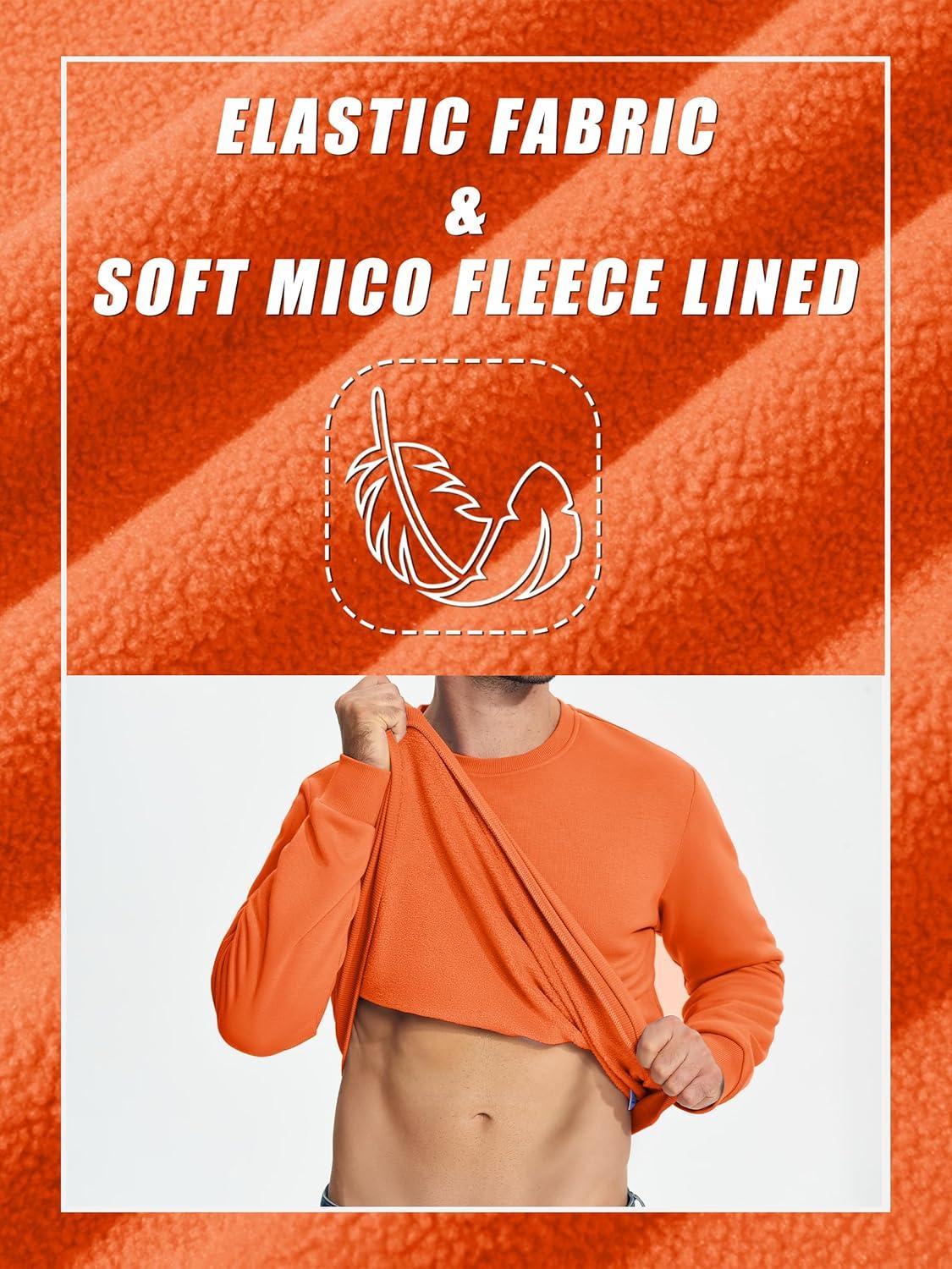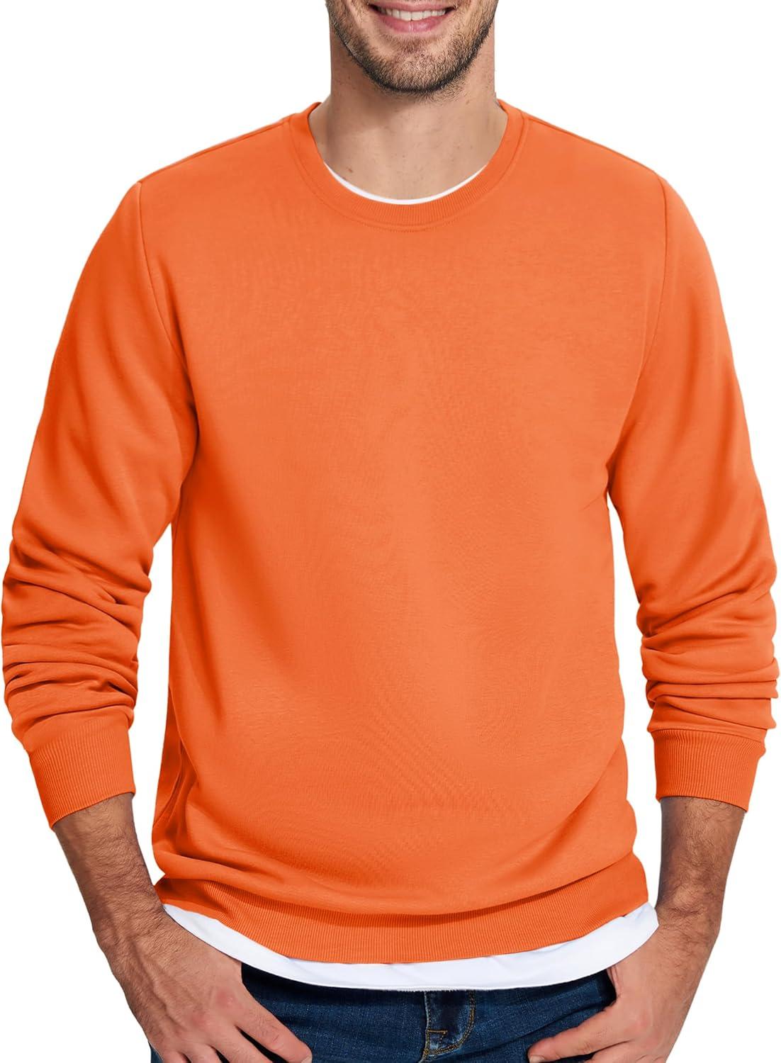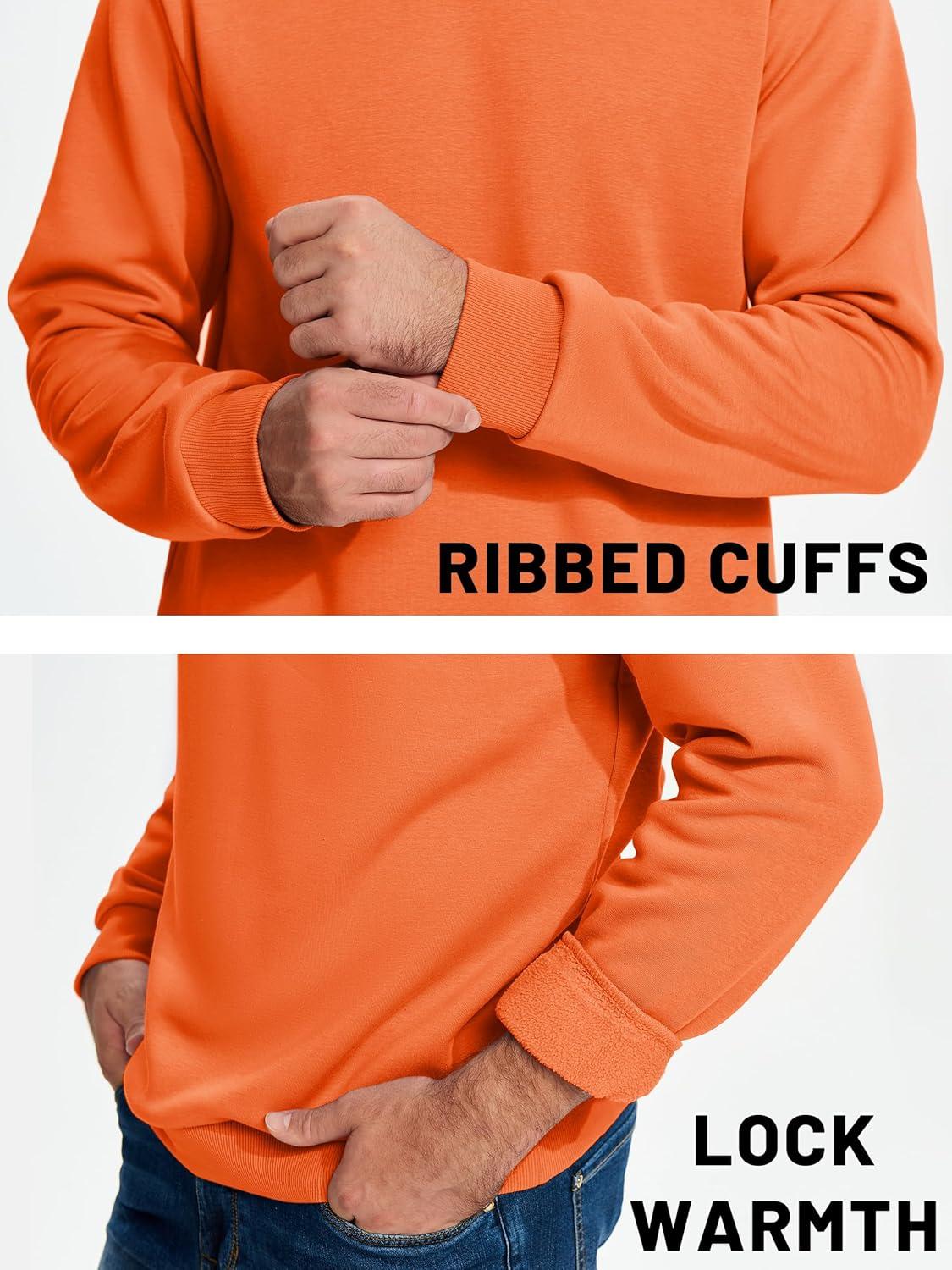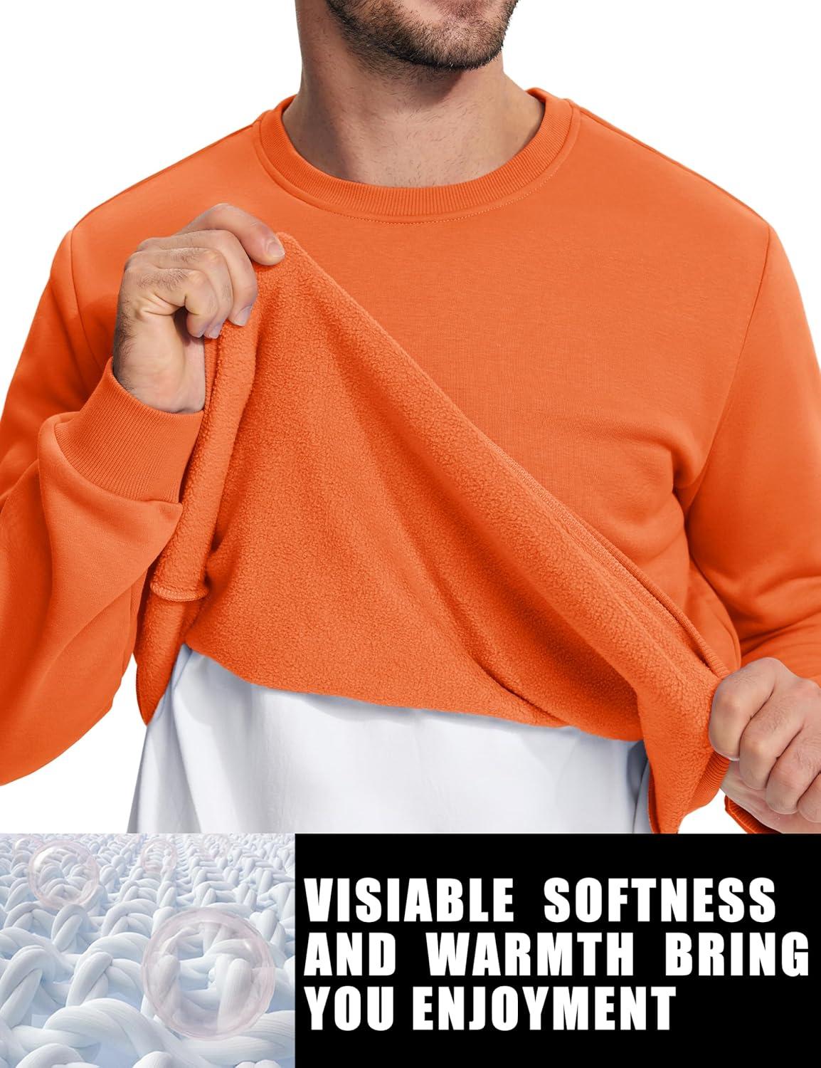 TACVASEN Men’s Long Sleeve Crewneck Sweatshirt Winter and Fall Casual Warm Sweatshirt Fleece Lined Pullover(Orange)