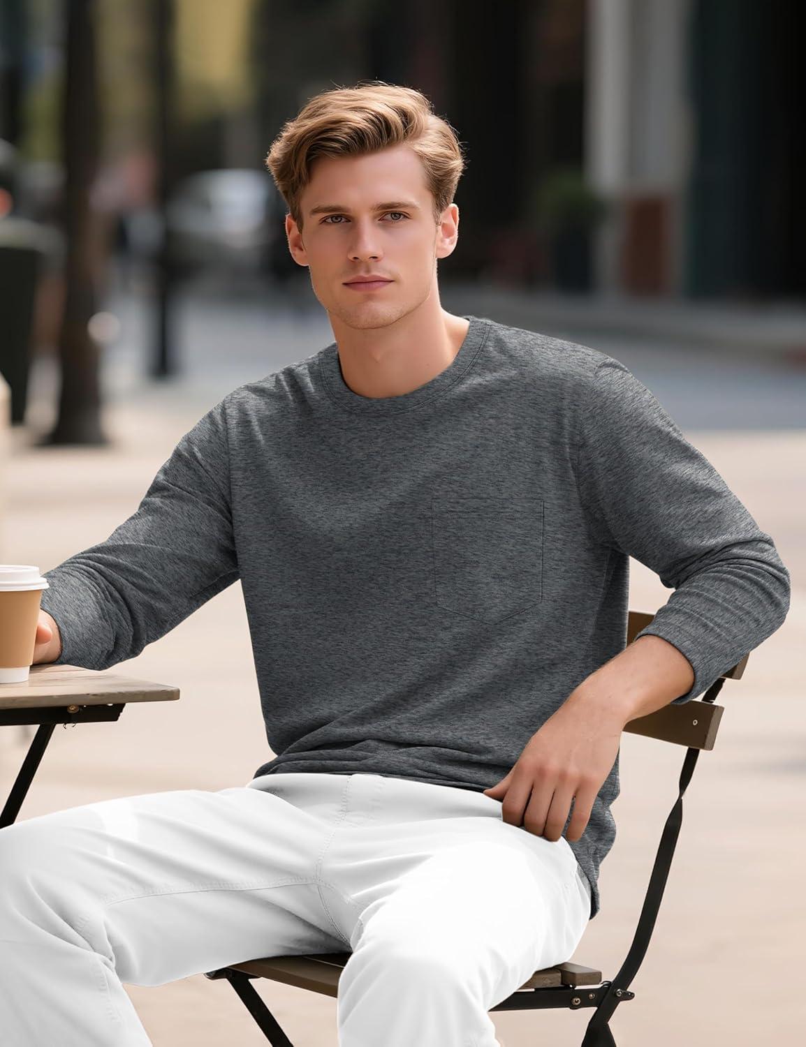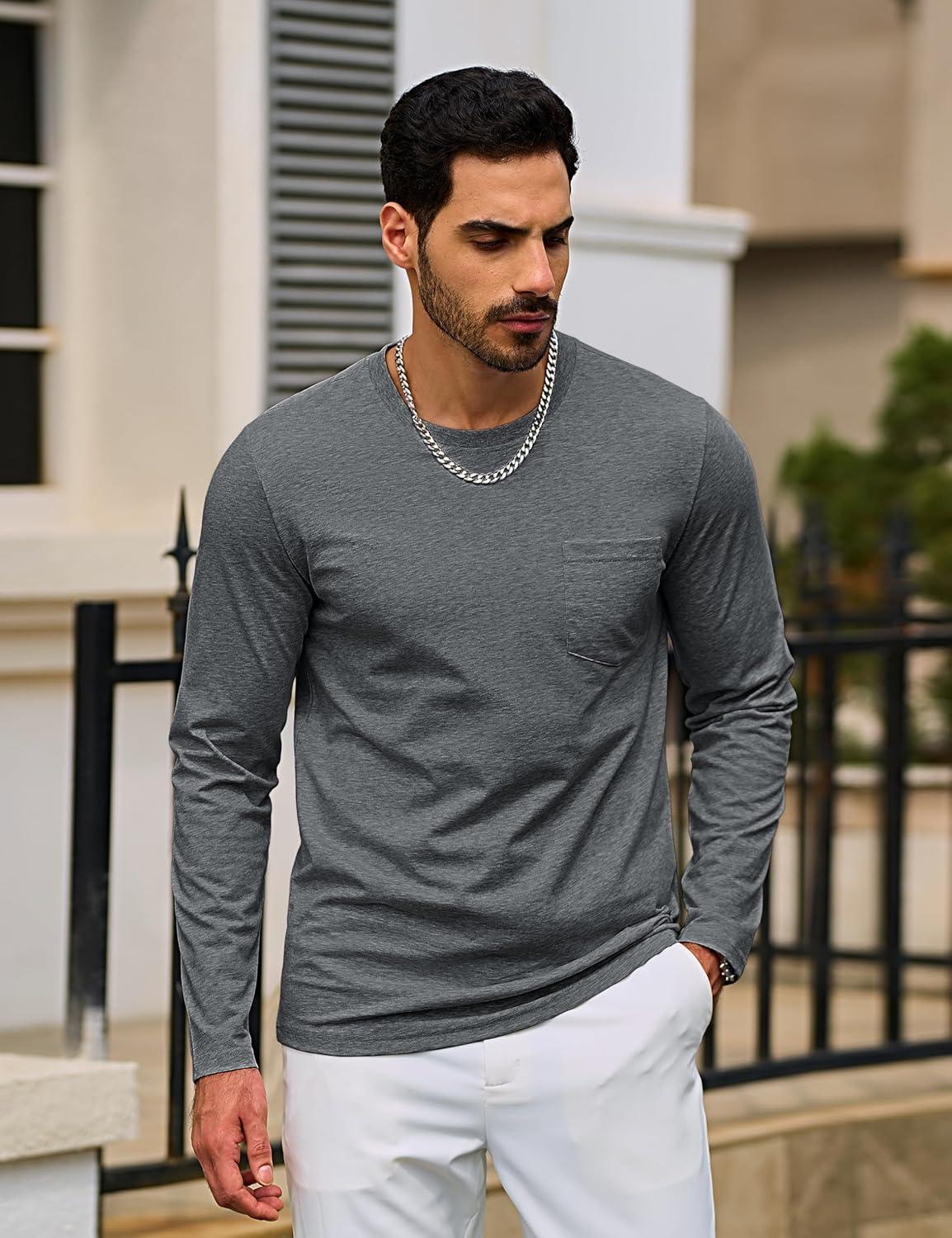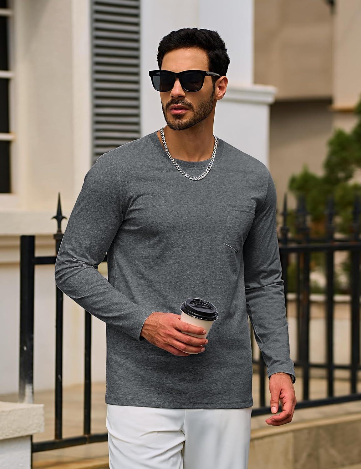 TACVASEN Mens Long Sleeve Tee Shirts Cotton Lightweight Casual Pocket Crew Neck Work T Shirts for All Season(#06-dark Gray)