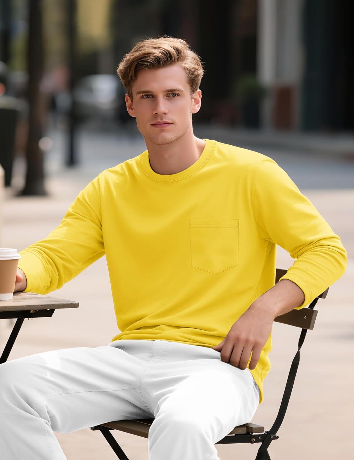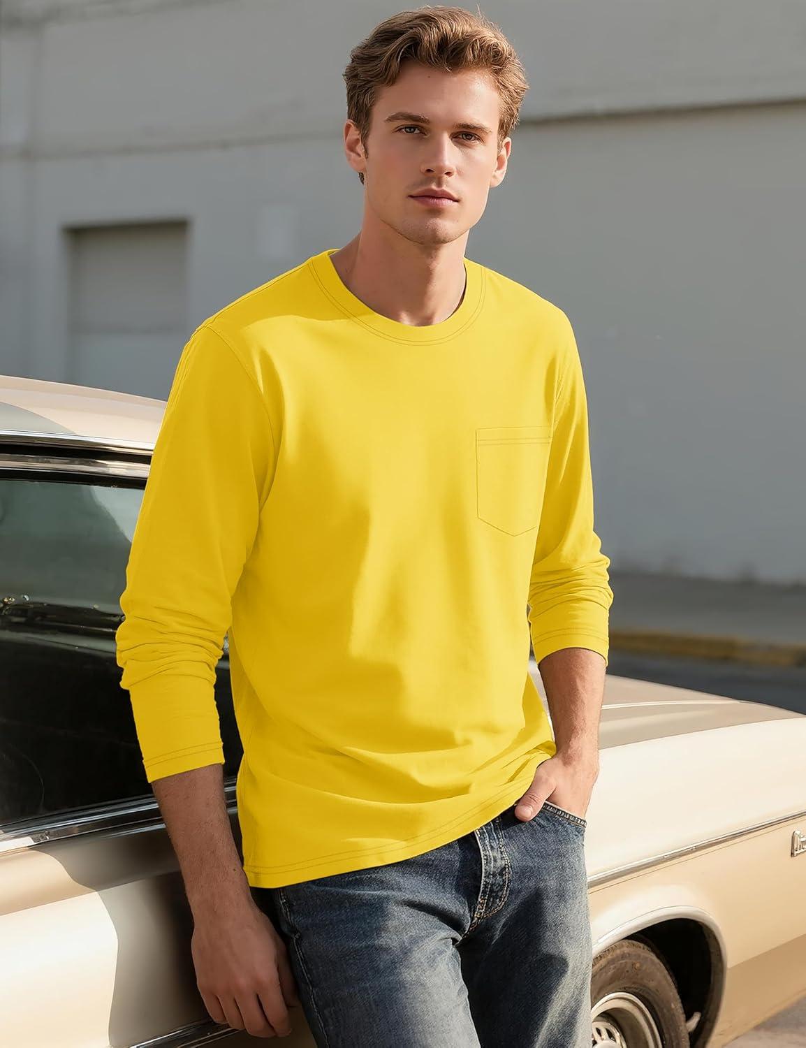 TACVASEN Mens Long Sleeve Tee Shirts Cotton Lightweight Casual Pocket Crew Neck Work T Shirts for All Season(#12-yellow)