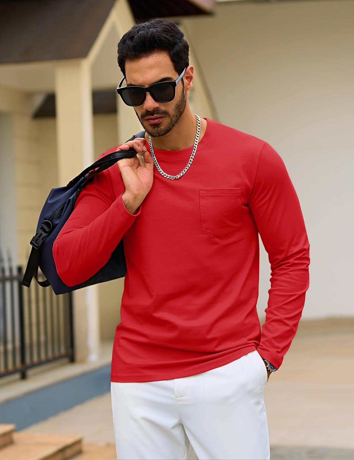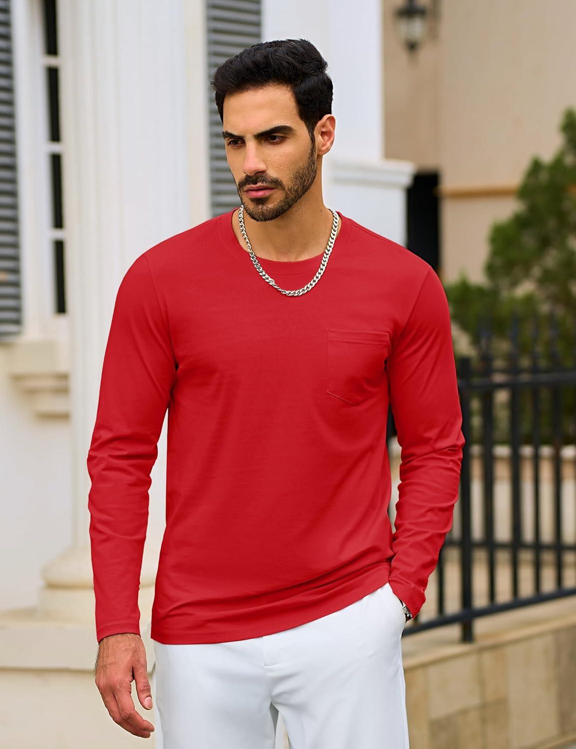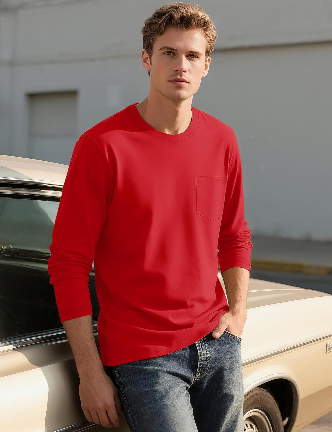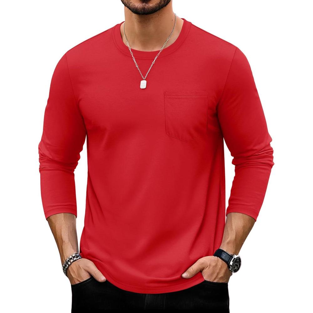 TACVASEN Mens Long Sleeve Tee Shirts Cotton Lightweight Casual Pocket Crew Neck Work T Shirts for All Season(#16-tomatored)