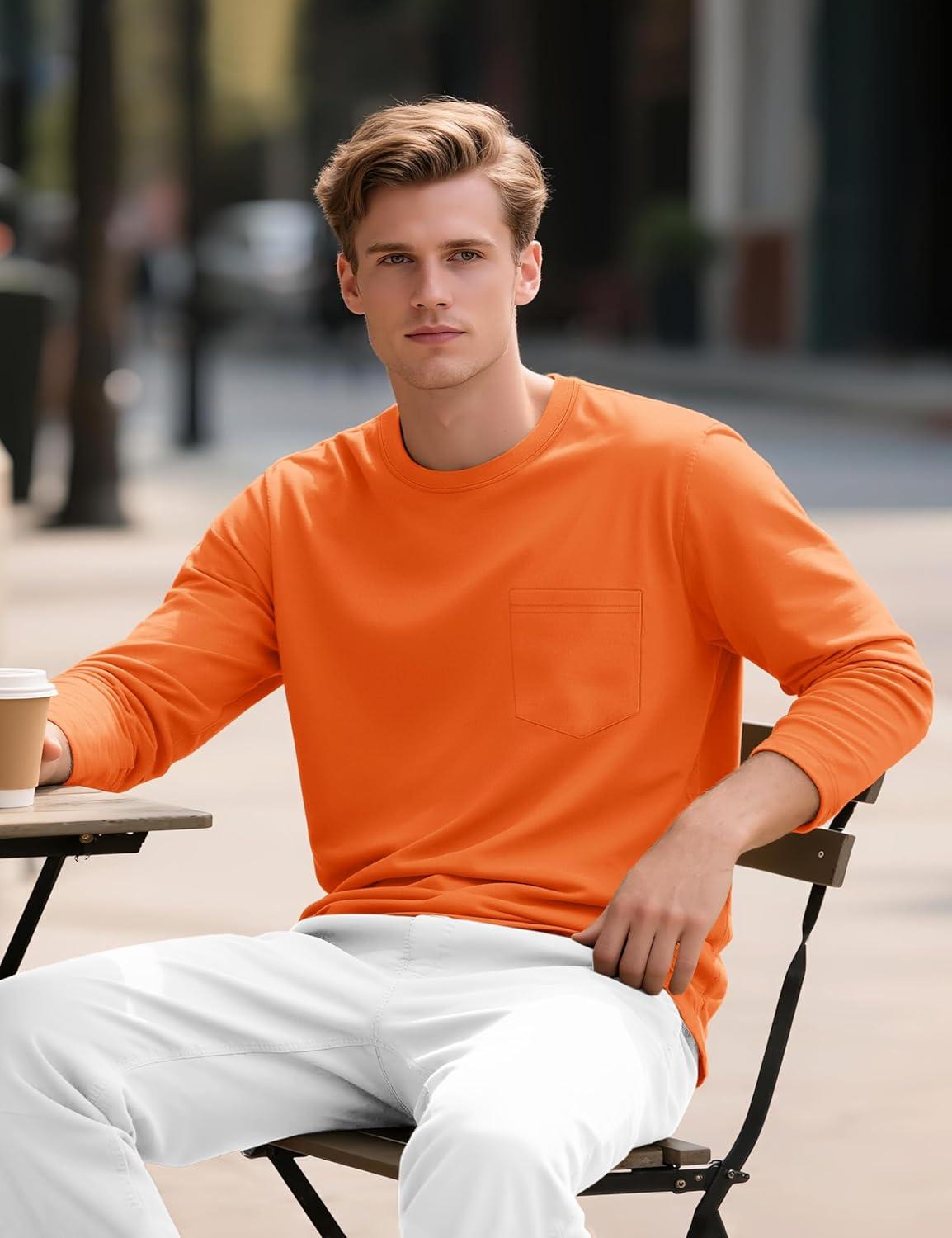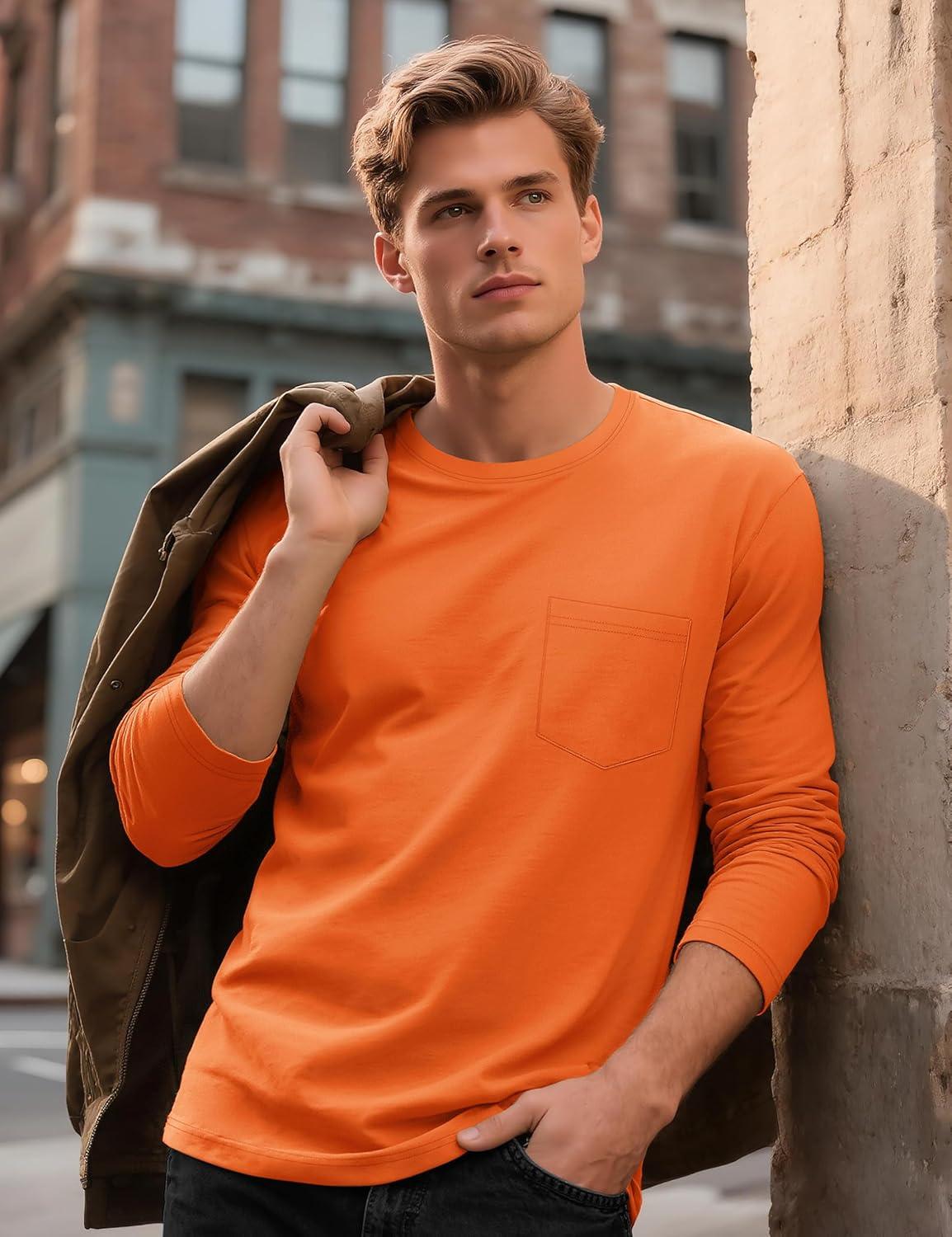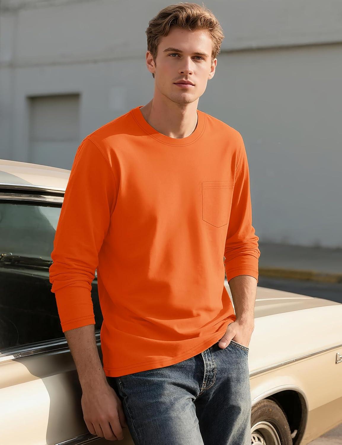 TACVASEN Mens Long Sleeve Tee Shirts Cotton Lightweight Casual Pocket Crew Neck Work T Shirts for All Season(#19-orange)