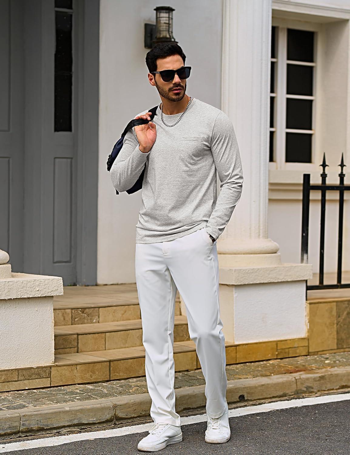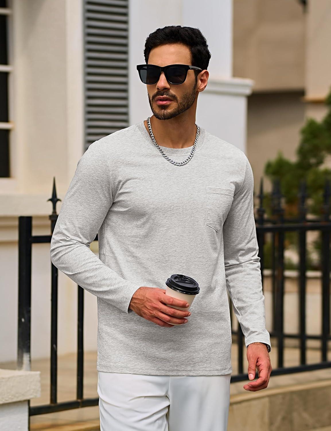 TACVASEN Mens Long Sleeve Tee Shirts Cotton Lightweight Casual Pocket Crew Neck Work T Shirts for All Season(#22-beige Gray)