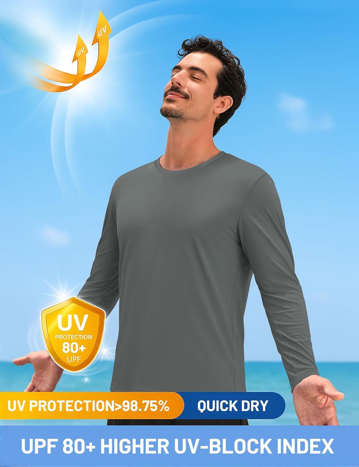 TACVASEN Men’s Long Sleeve UPF 80+ Shirts Sun Protection UV SPF Shirts Rash Guard Fishing Running Quick Dry Lightweight(Dark Grey)