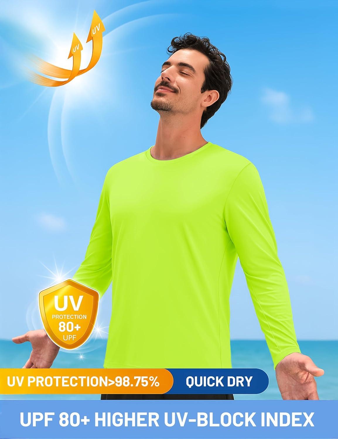 TACVASEN Men’s Long Sleeve UPF 80+ Shirts Sun Protection UV SPF Shirts Rash Guard Fishing Running Quick Dry Lightweight(Fl Green)