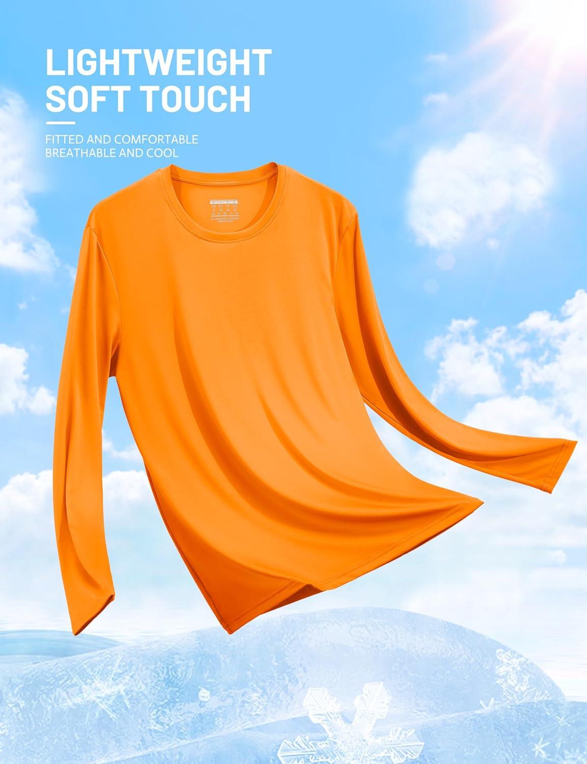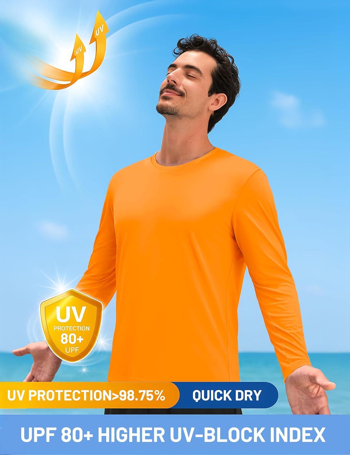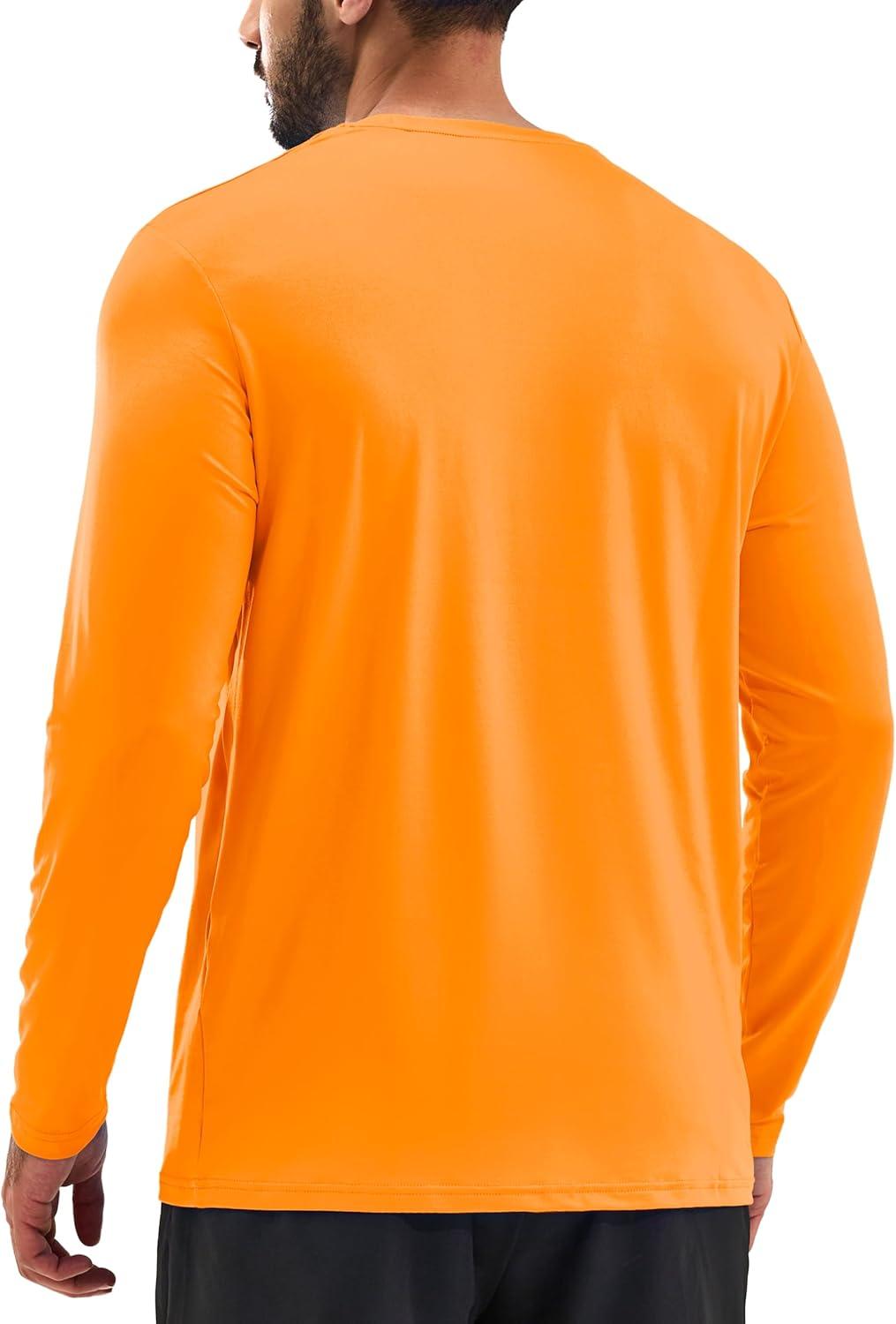 TACVASEN Men’s Long Sleeve UPF 80+ Shirts Sun Protection UV SPF Shirts Rash Guard Fishing Running Quick Dry Lightweight(Fl Orange)