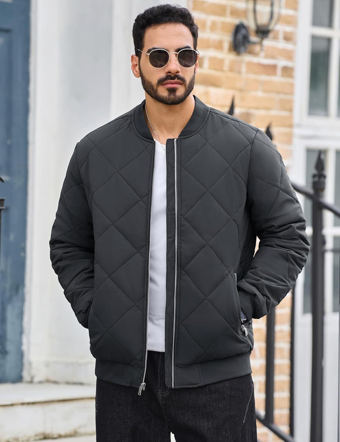 TACVASEN Men’s Padded Jackets Winter Full Zipper Fleece Outwear Casual Windproof Bomber Varsity Coat(Dark Grey)