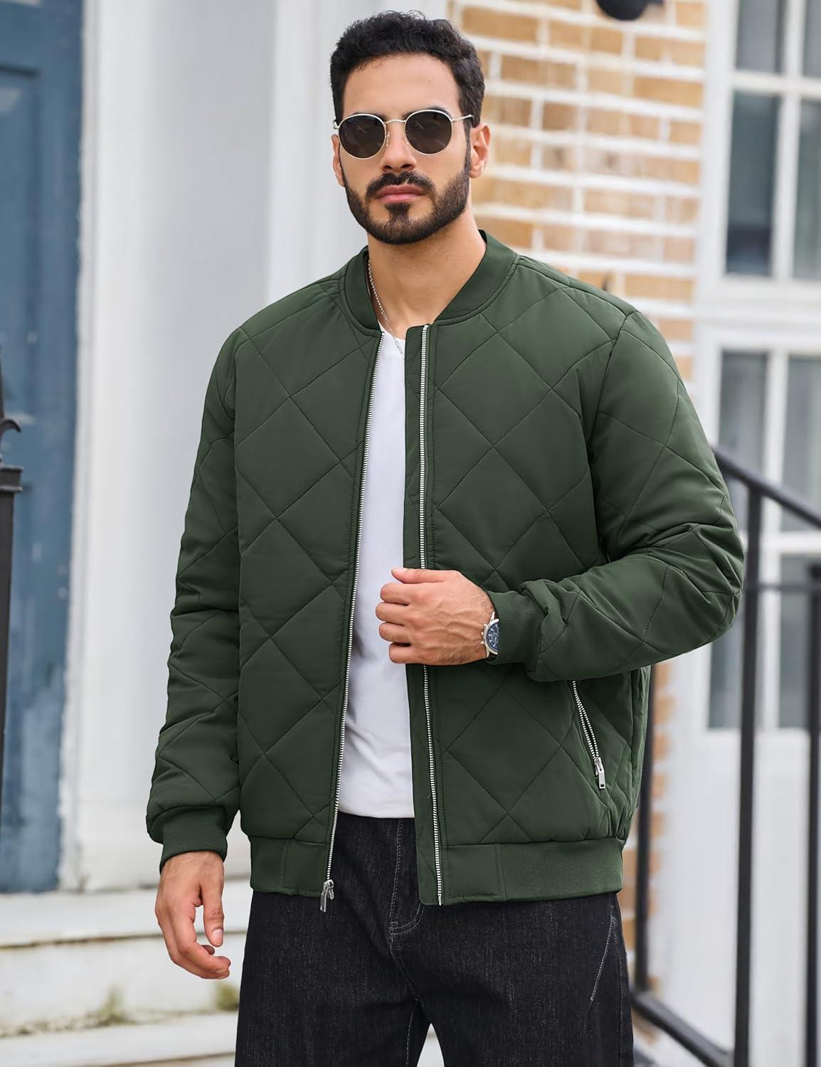 TACVASEN Men’s Padded Jackets Winter Full Zipper Fleece Outwear Casual Windproof Bomber Varsity Coat(Green)