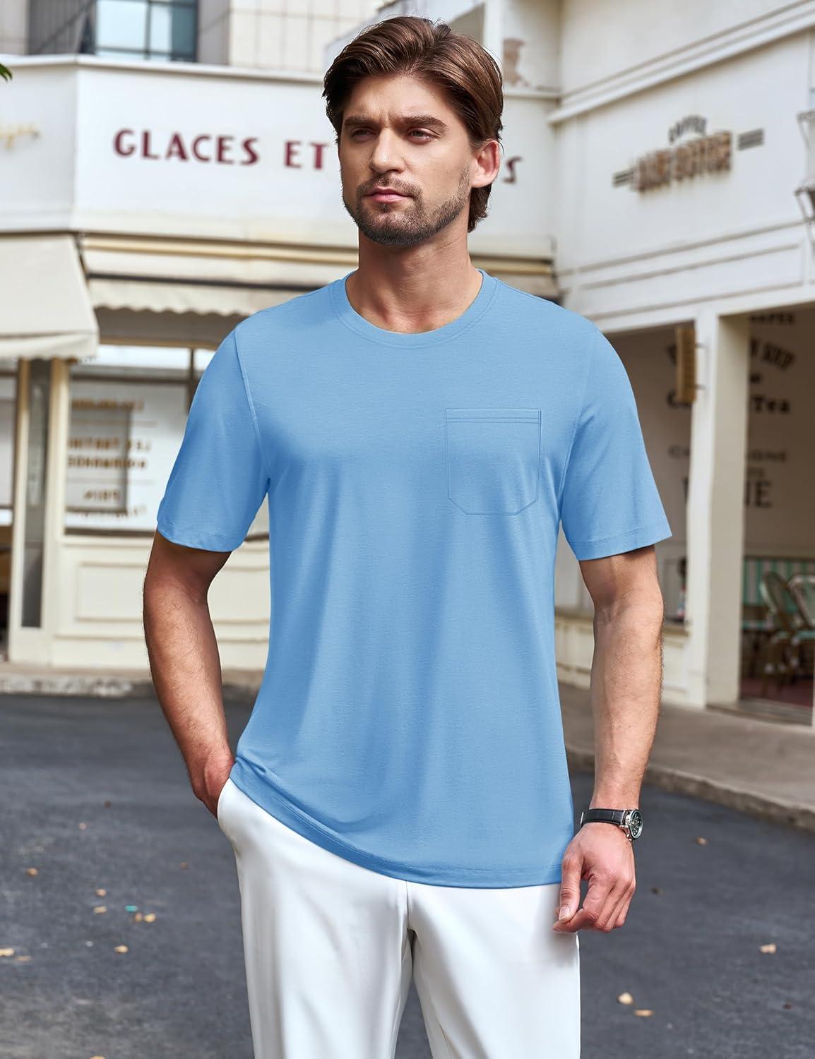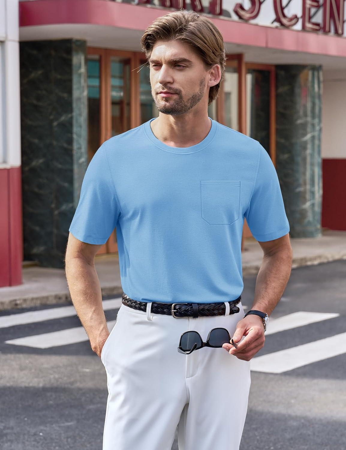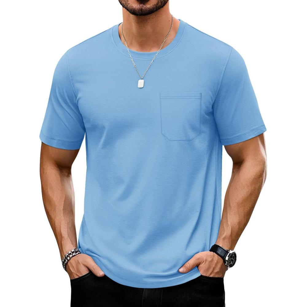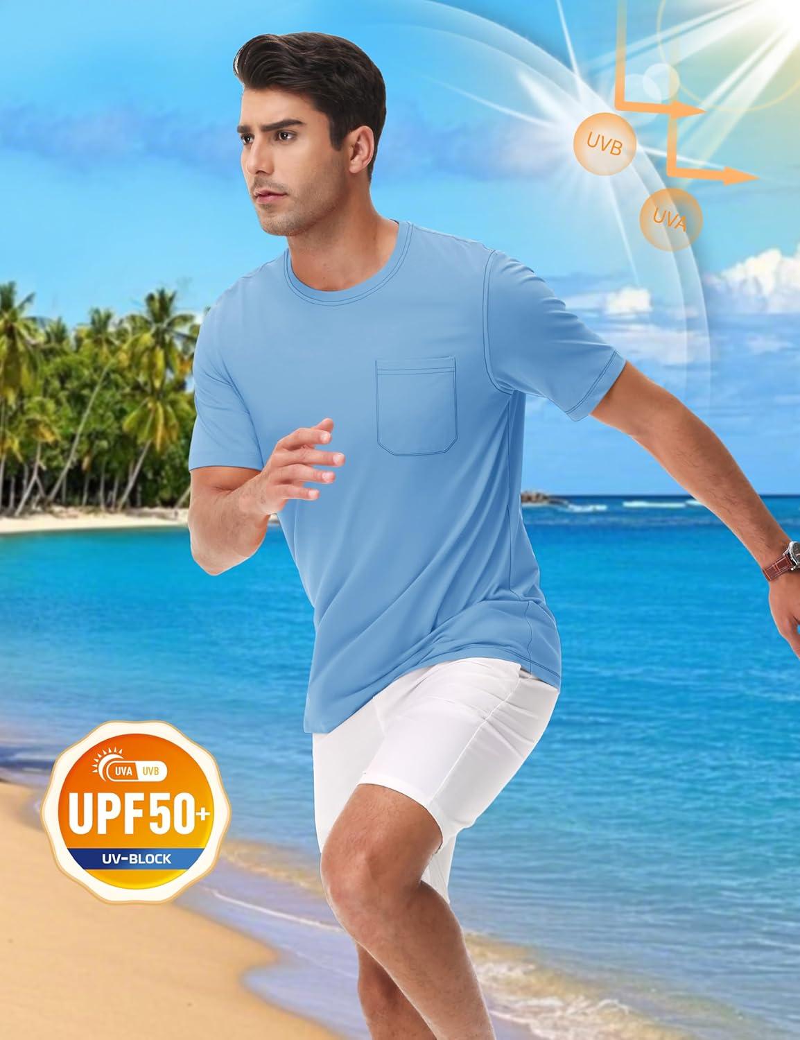 TACVASEN Men’s Pocket T-Shirts UPF 50+ Short Sleeve Tshirts Mositure Wicking Lightweight Casual Shirt Summer Cooling Tee(#04 Sky Blue)