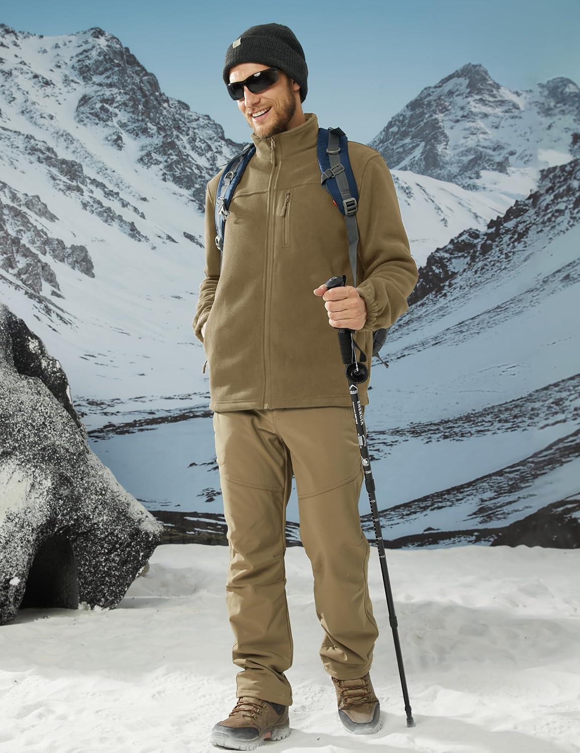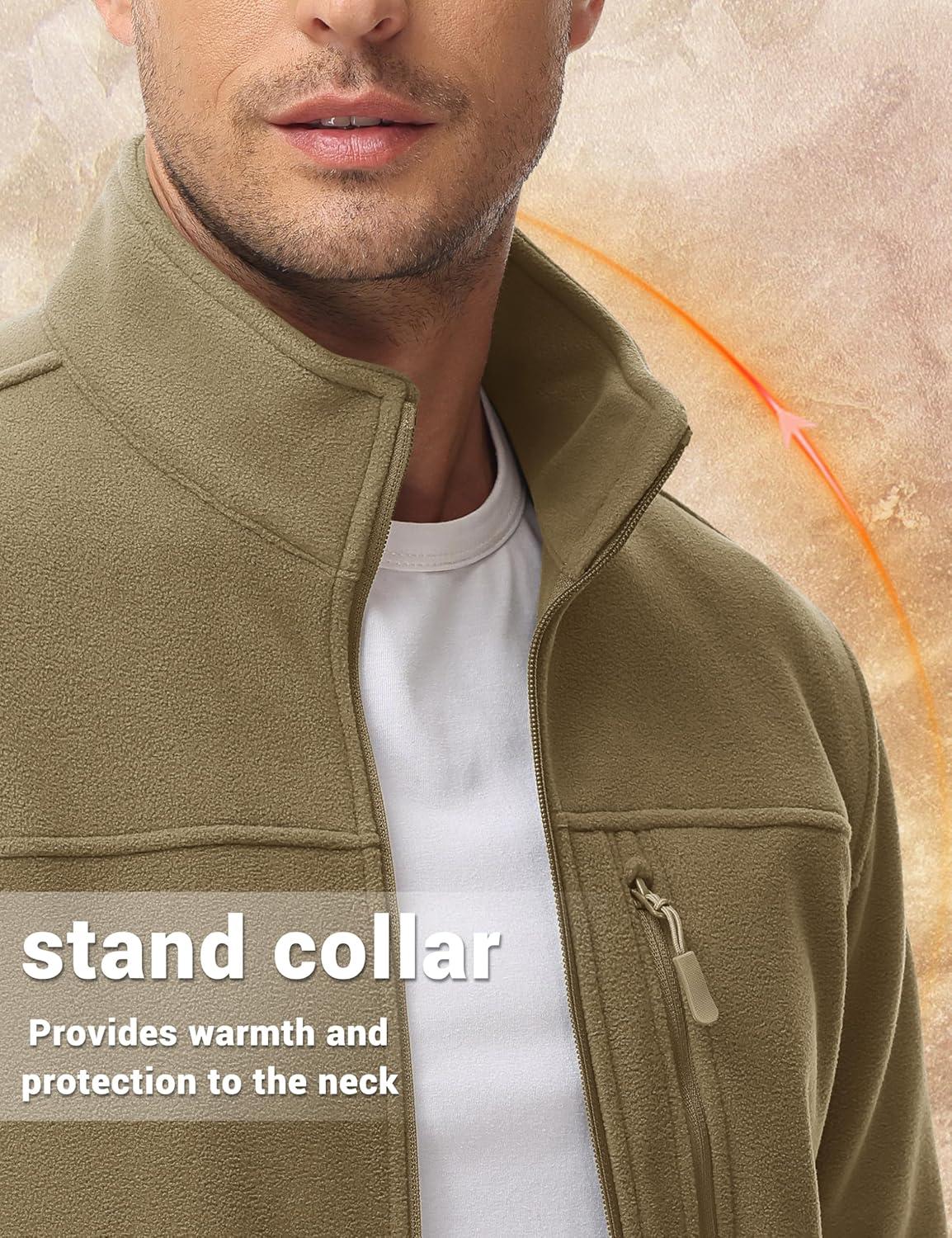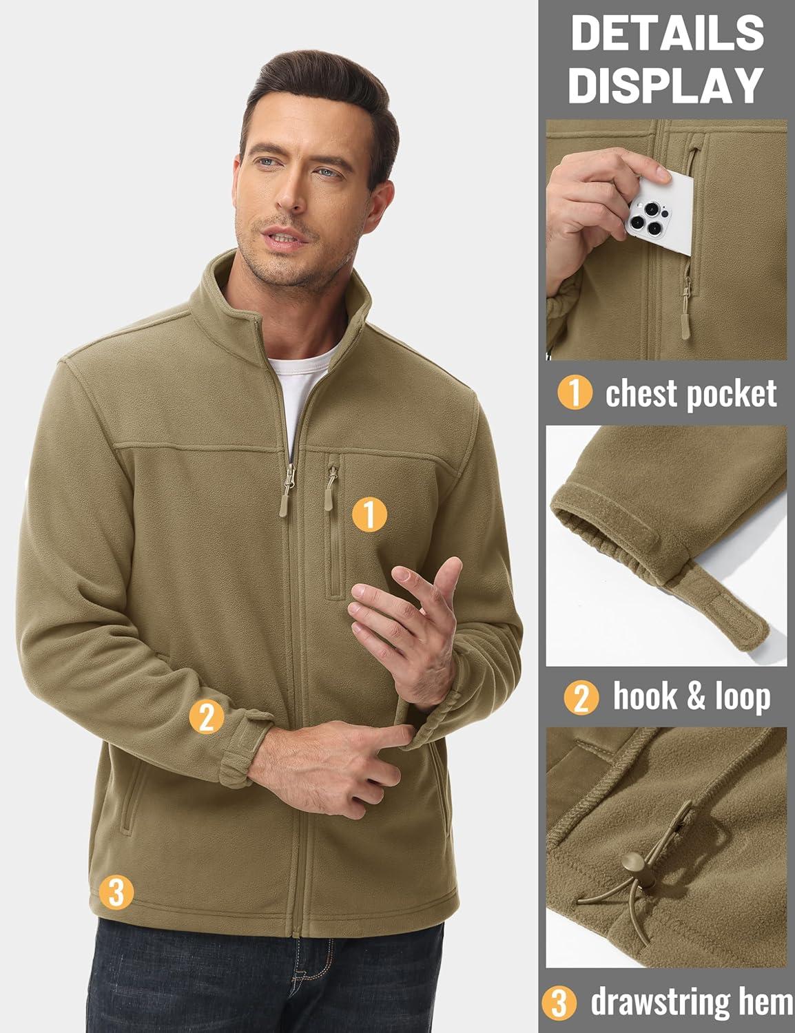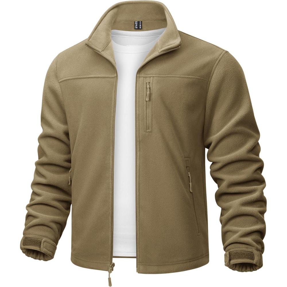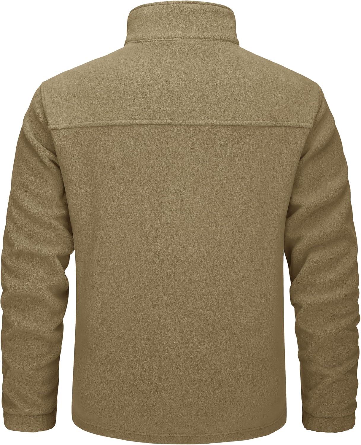 TACVASEN Men’s Polar Fleece Jacket Full Zip Lightweight Tactical Jacket with Pockets Winter Coats Warm Casual Hiking Outdoor(Khaki)