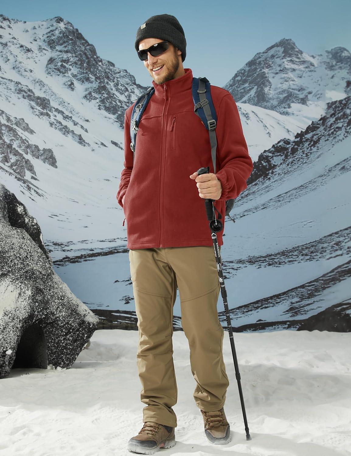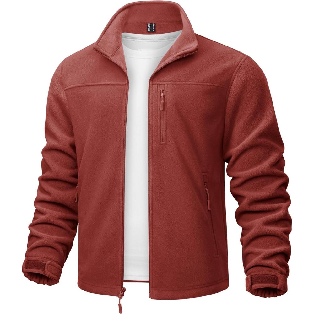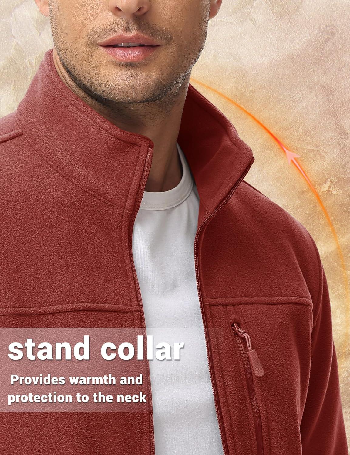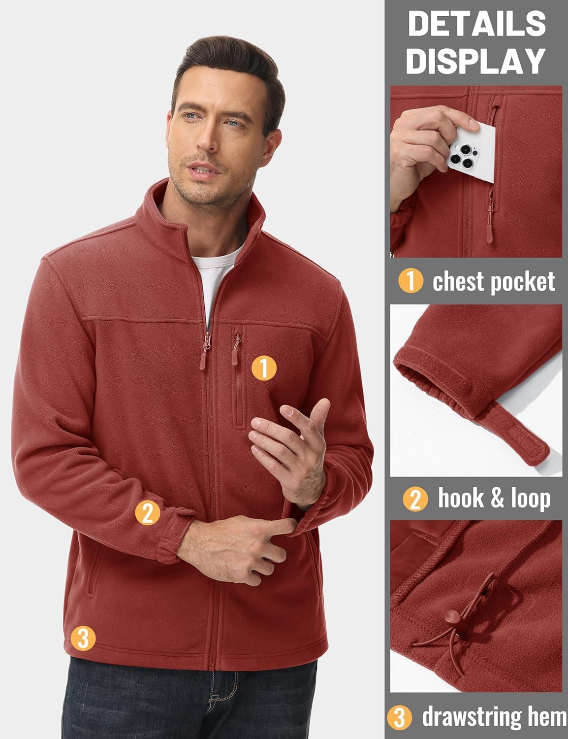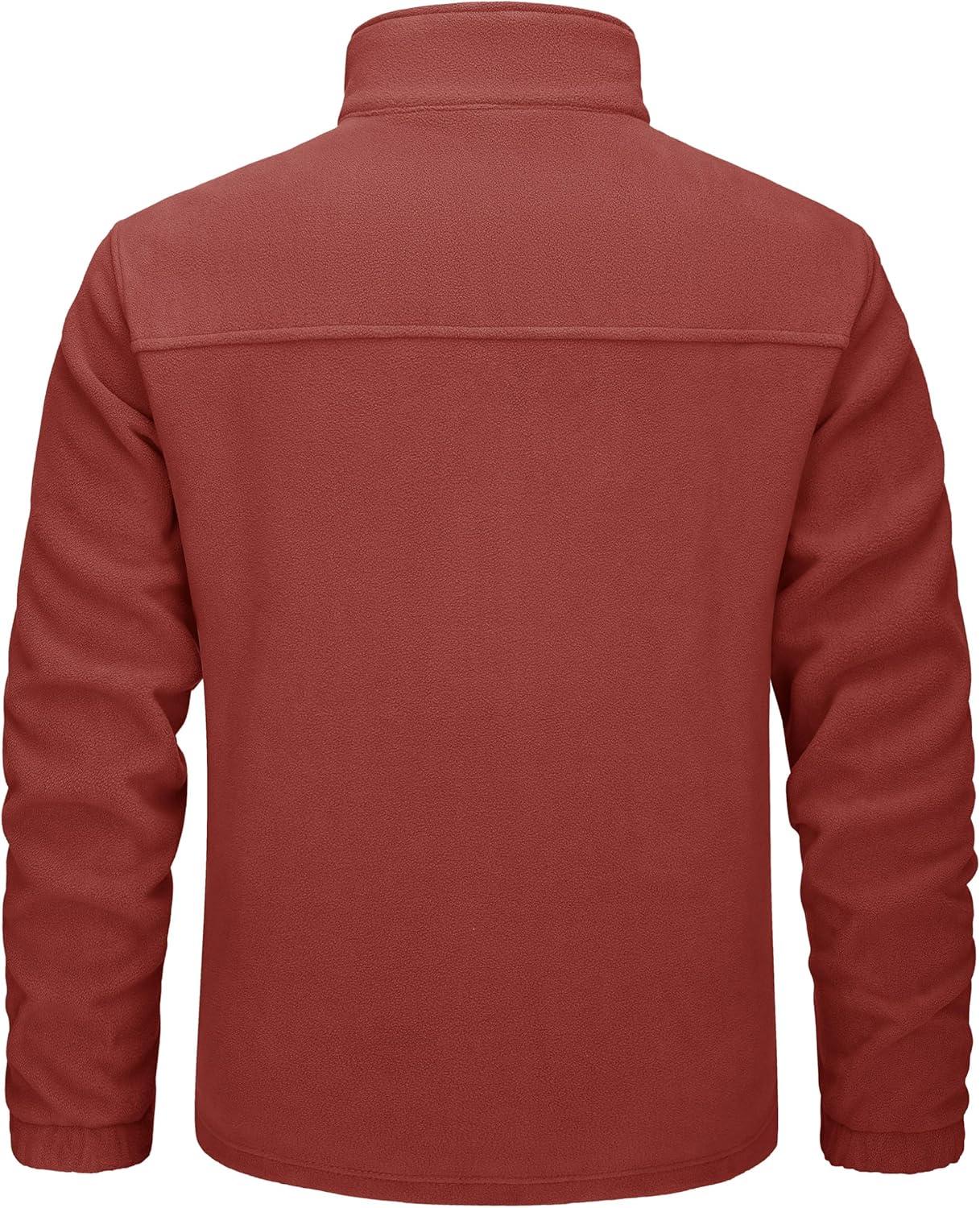 TACVASEN Men’s Polar Fleece Jacket Full Zip Lightweight Tactical Jacket with Pockets Winter Coats Warm Casual Hiking Outdoor(Orange Red)