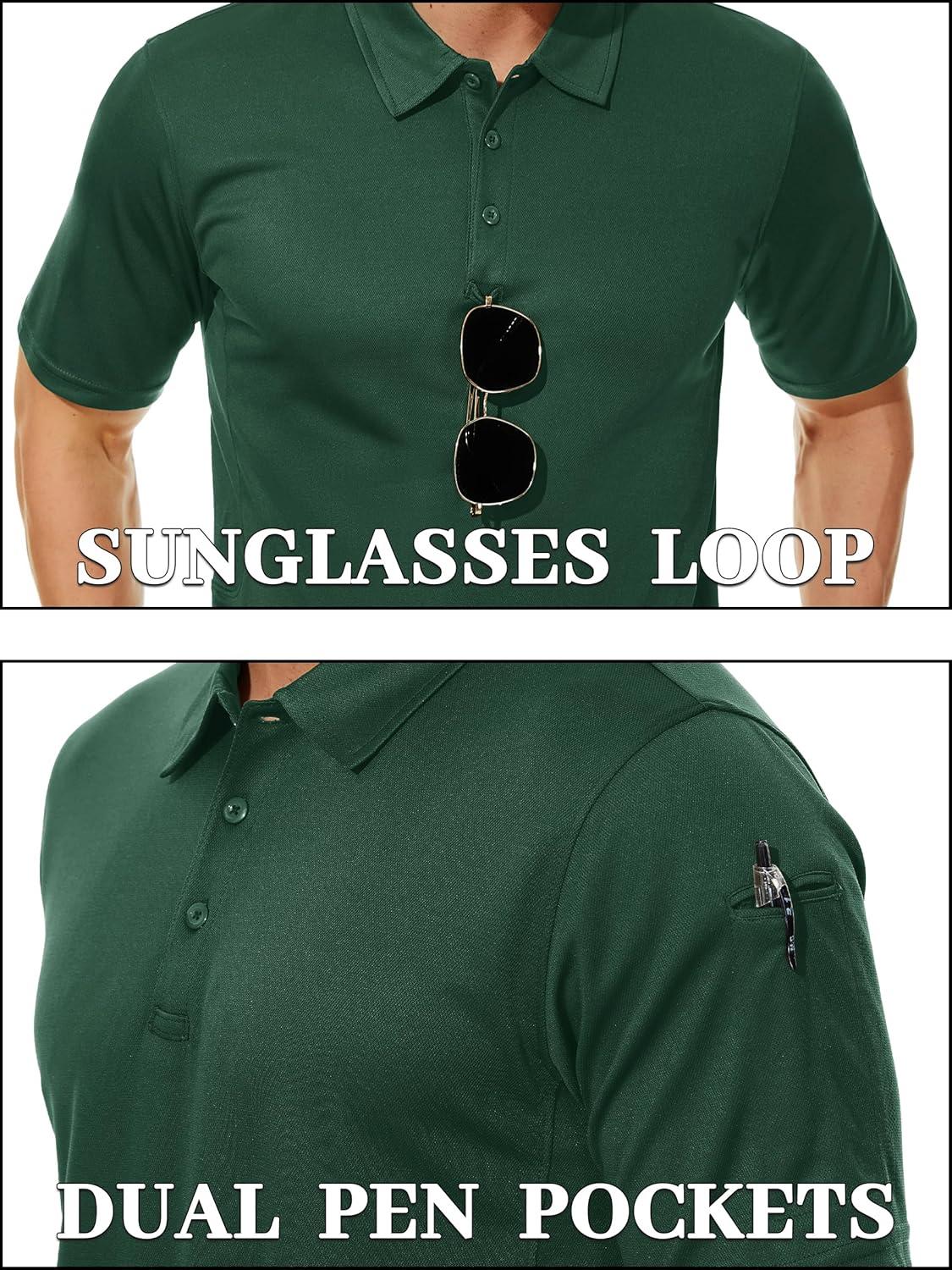 TACVASEN Mens Polo Shirt Short Sleeve Tactical Performance Collared Work Golf Shirts Dry Fit Pique Polos for Summer(07-e-green)