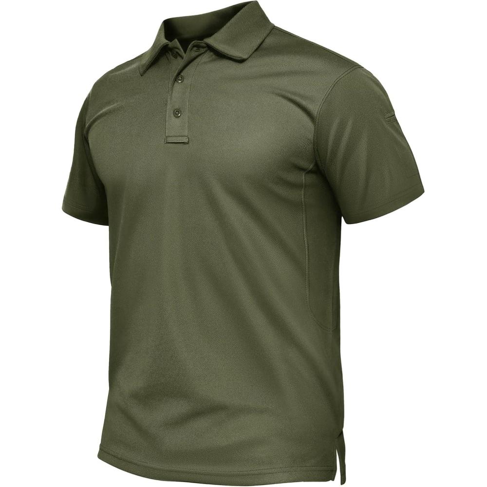 TACVASEN Mens Polo Shirt Short Sleeve Tactical Performance Collared Work Golf Shirts Dry Fit Pique Polos for Summer(09-army Green)
