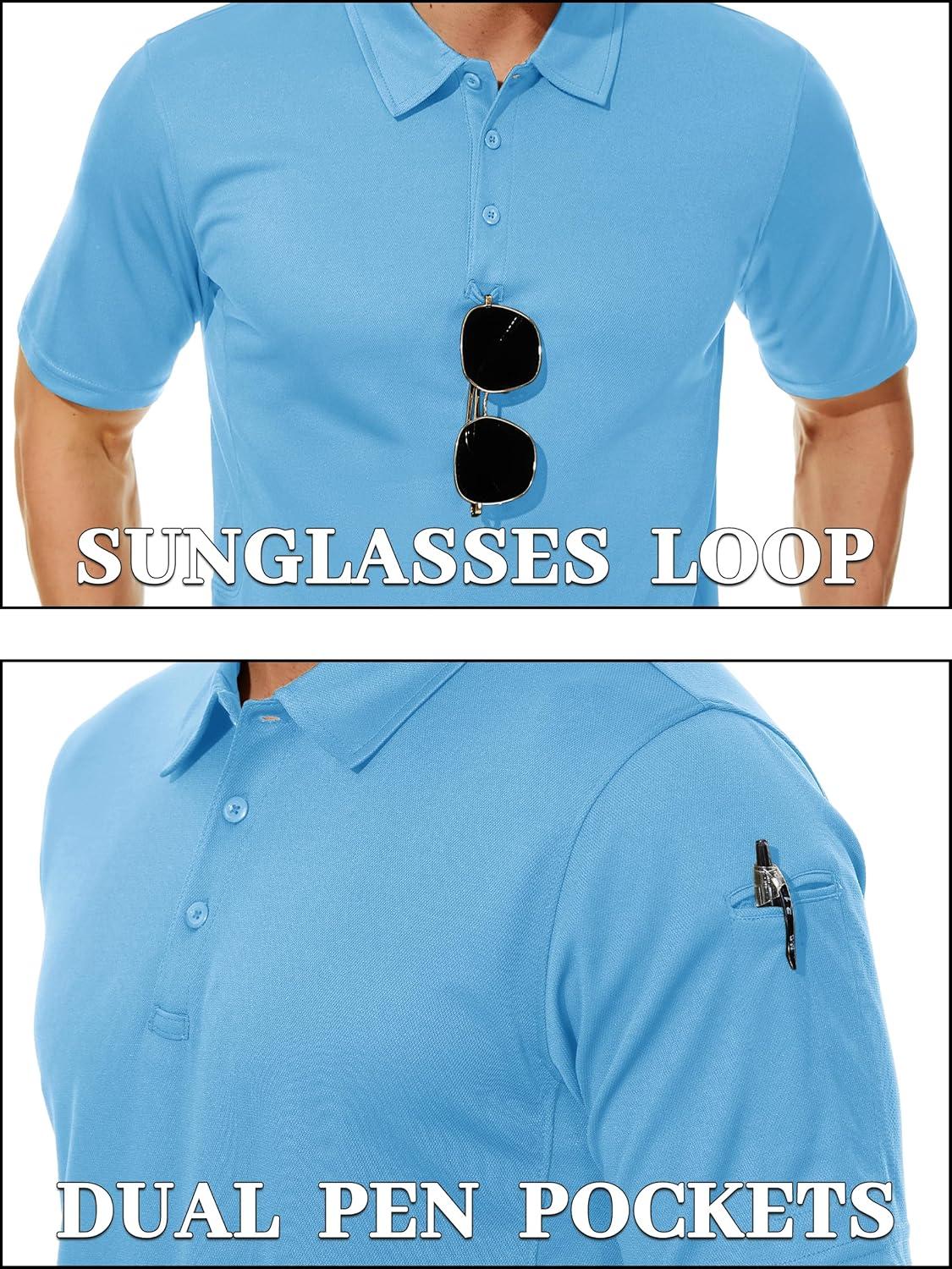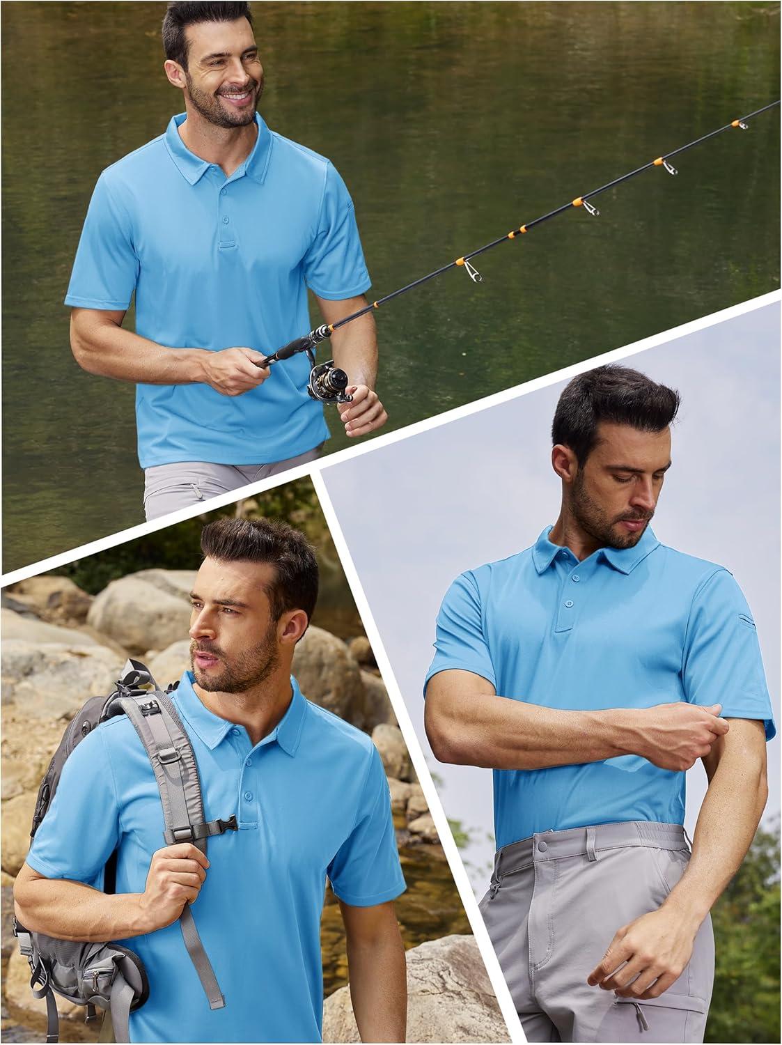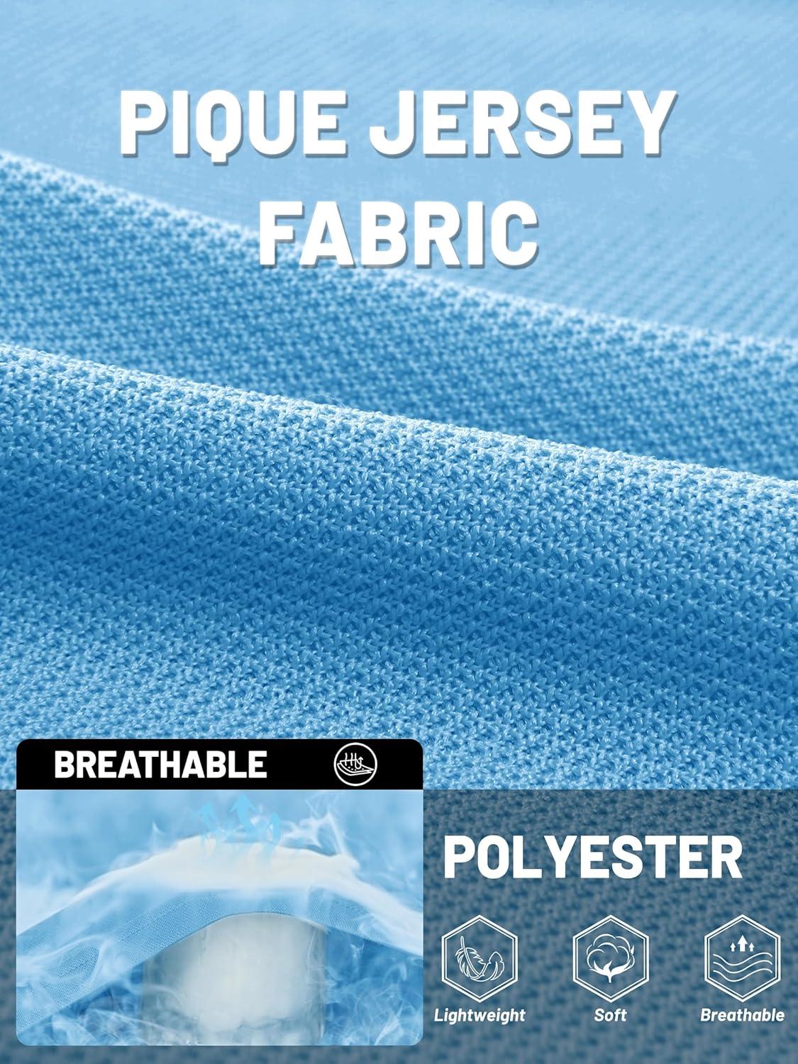 TACVASEN Mens Polo Shirt Short Sleeve Tactical Performance Collared Work Golf Shirts Dry Fit Pique Polos for Summer(20-sky Blue)