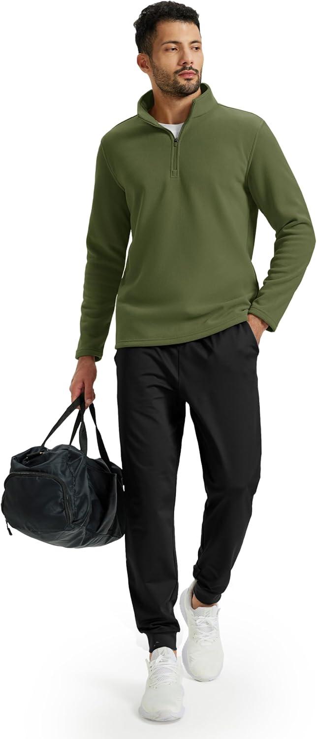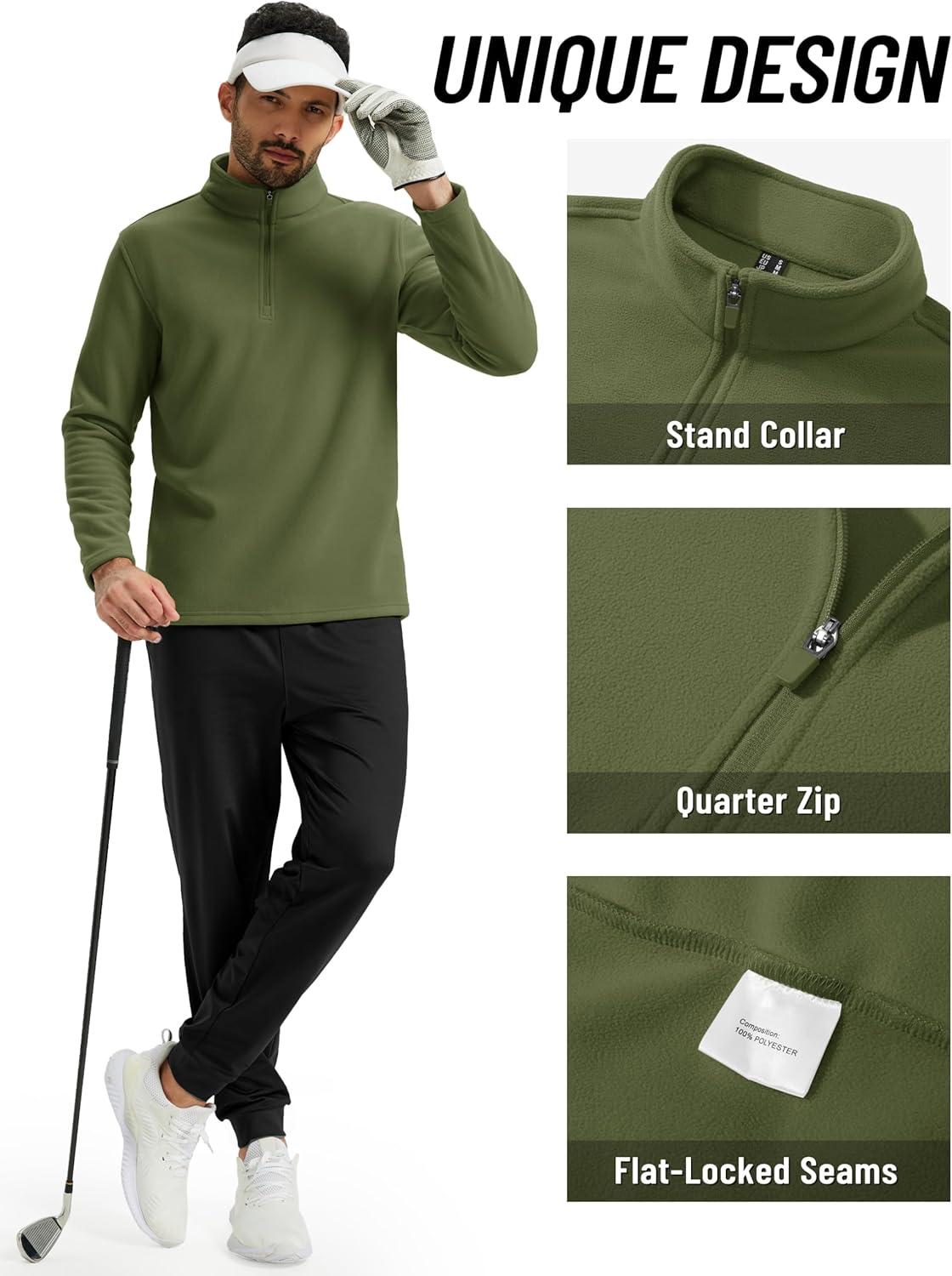 TACVASEN Men’s Quarter Zip Fleece Pullover Long Sleeve Sweatshirt Warm Winter Sweater Casual Golf Shirts for Men(Army Green)