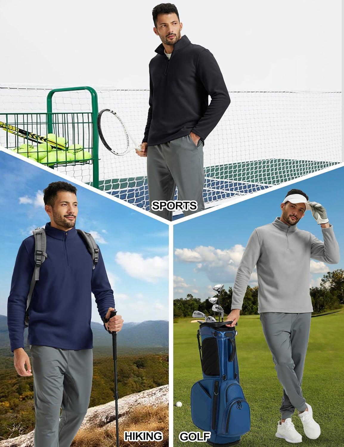 TACVASEN Men’s Quarter Zip Fleece Pullover Long Sleeve Sweatshirt Warm Winter Sweater Casual Golf Shirts for Men(Light Gray)