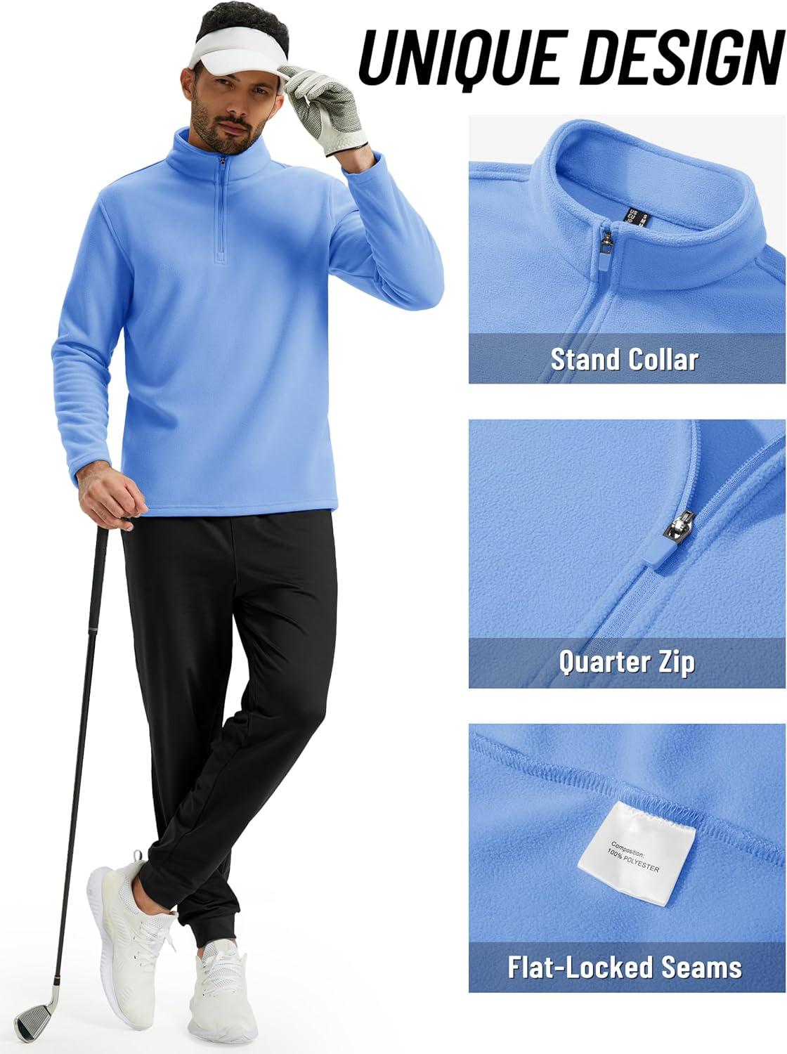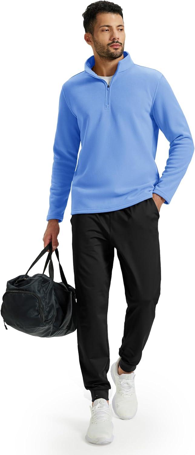 TACVASEN Men’s Quarter Zip Fleece Pullover Long Sleeve Sweatshirt Warm Winter Sweater Casual Golf Shirts for Men(Light Blue)