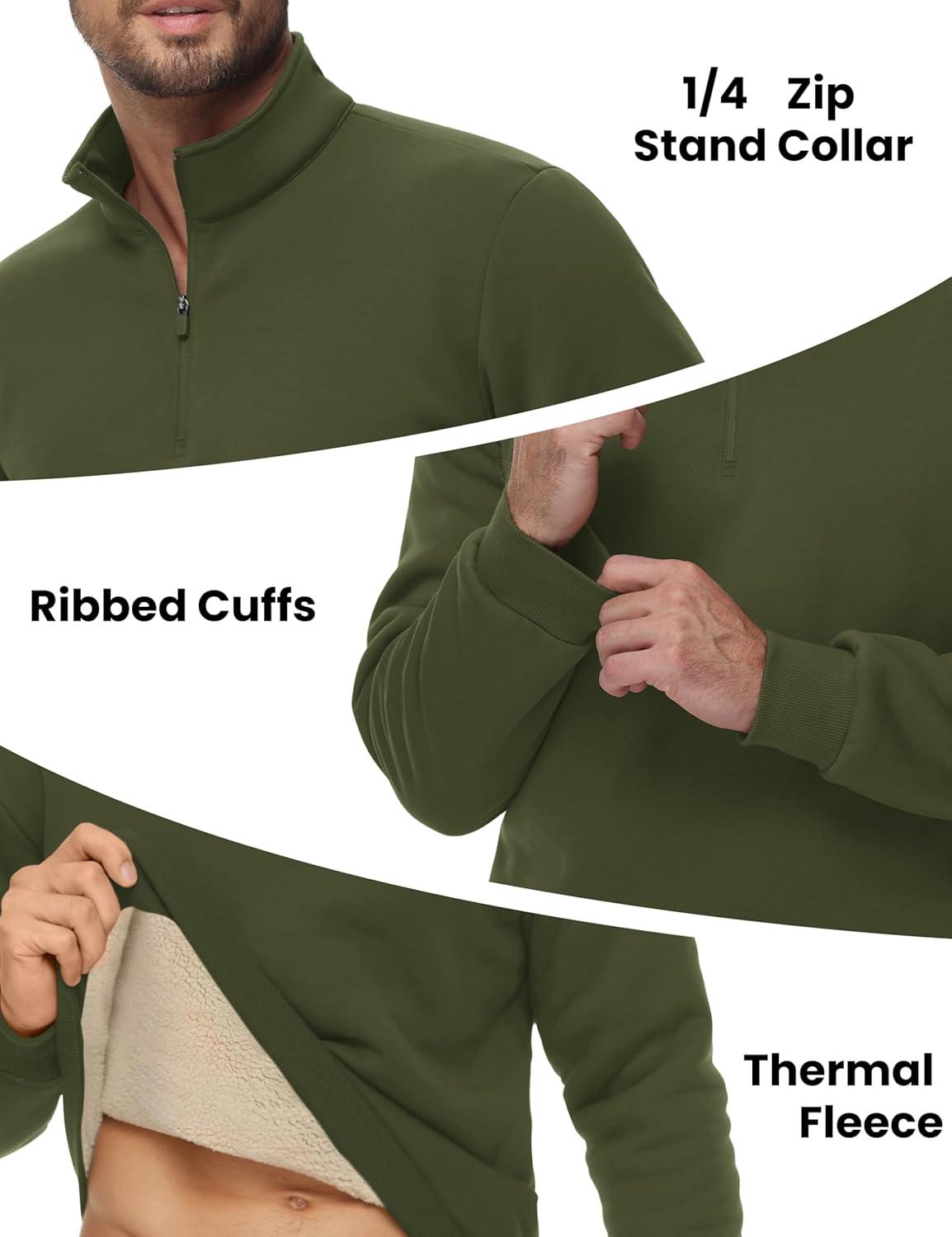 TACVASEN Men’s Quarter Zip Fleece Pullover Sweatshirts Sherpa Lined Heavy weight Winter Shirts Thermal Warm Sweaters(Armygreen)