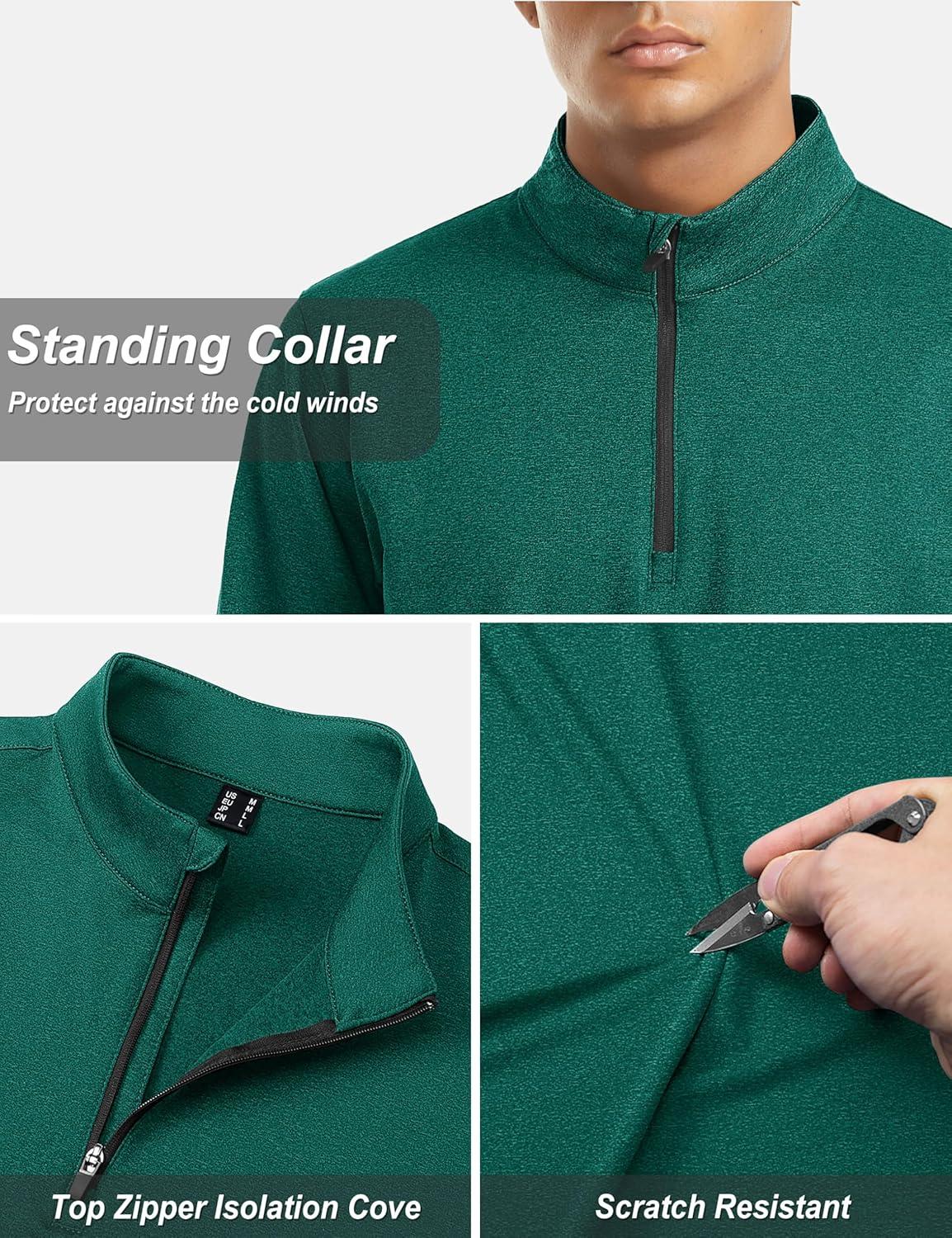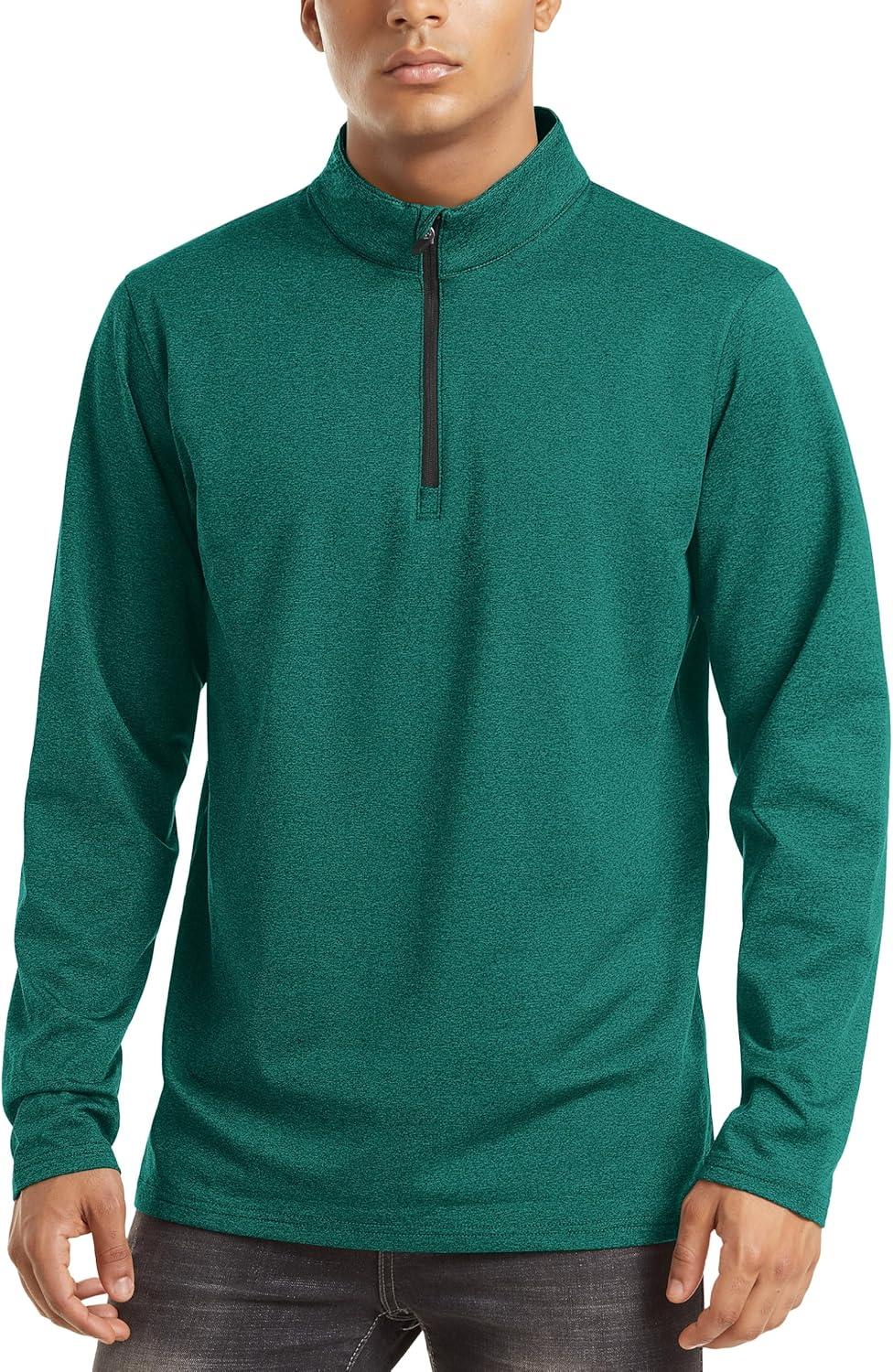TACVASEN Men’s Quarter Zip Pullover Long Sleeve Golf Sweatshirts 1/4 Zip Sweaters Winter Fleece Lined Thermal Shirt(Emerald Green)