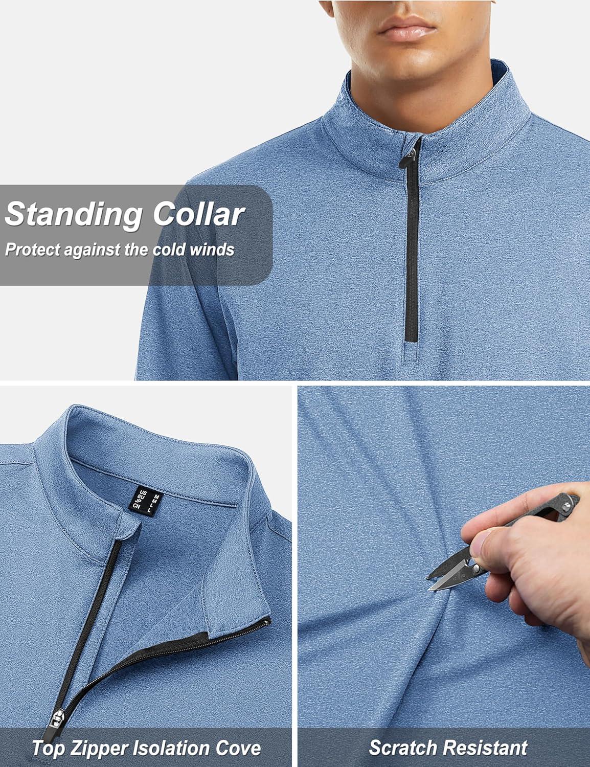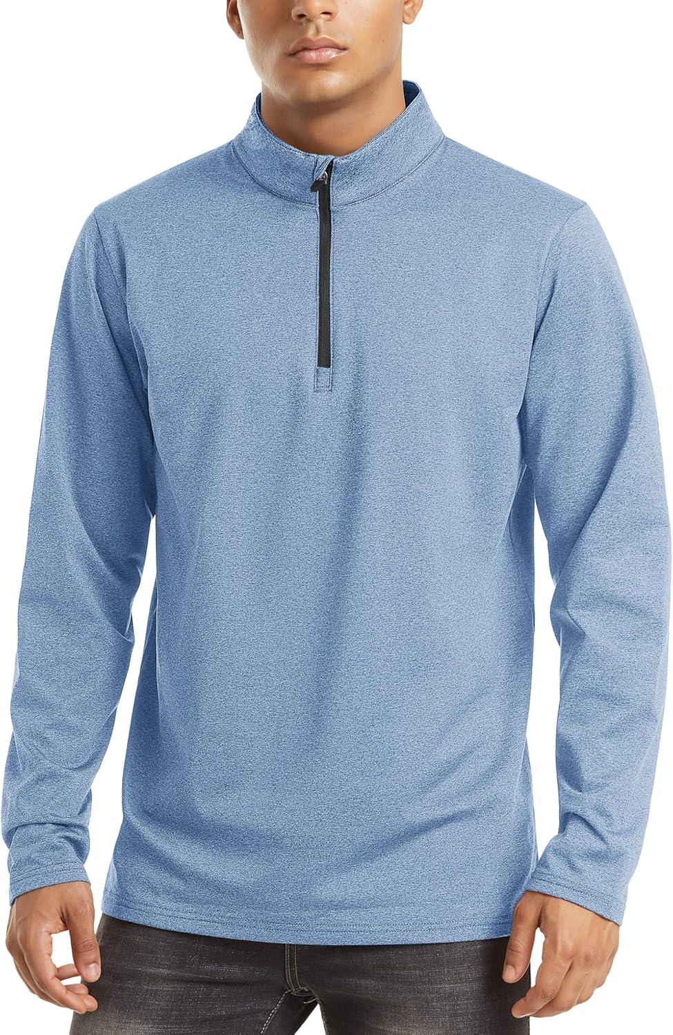 TACVASEN Men’s Quarter Zip Pullover Long Sleeve Golf Sweatshirts 1/4 Zip Sweaters Winter Fleece Lined Thermal Shirt(Light Blue)
