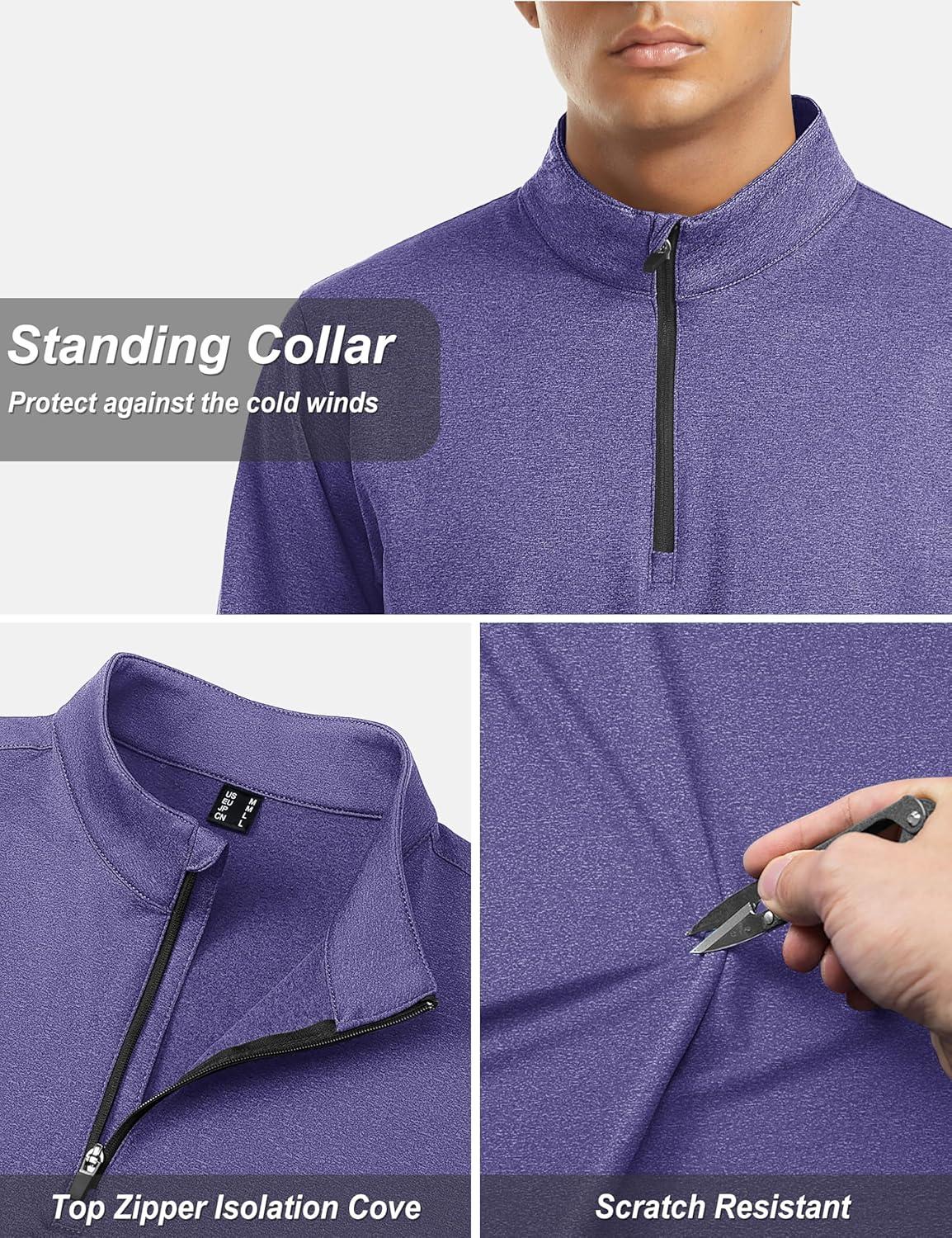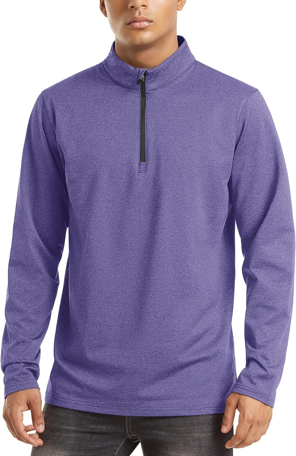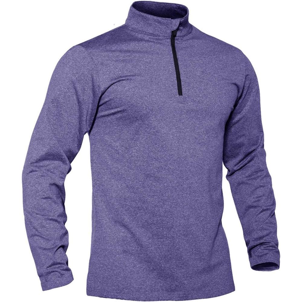 TACVASEN Men’s Quarter Zip Pullover Long Sleeve Golf Sweatshirts 1/4 Zip Sweaters Winter Fleece Lined Thermal Shirt(Purple)