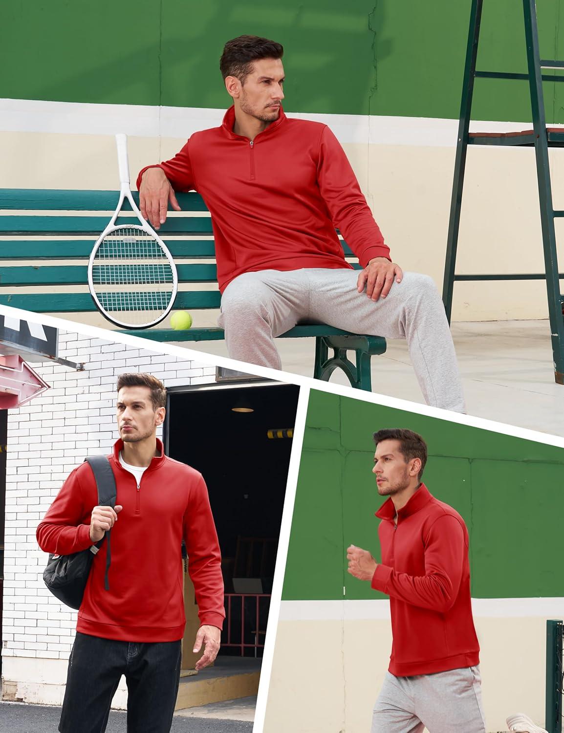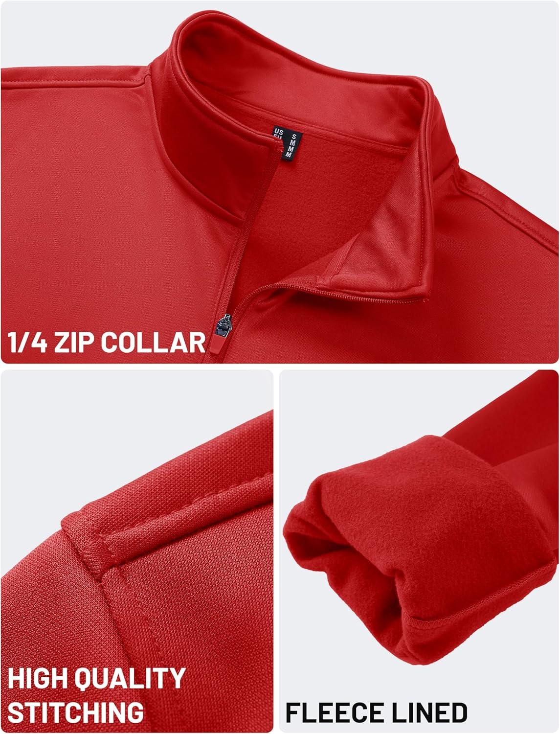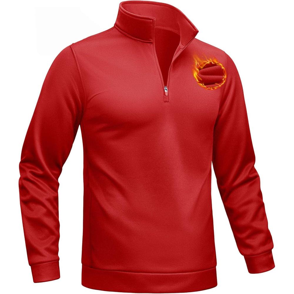 TACVASEN Men’s Quarter Zip Pullover Sweatshirts Lightweight Fleece Lined Thermal Sweatshirts 1/4 Zip Golf Sweaters(Red)