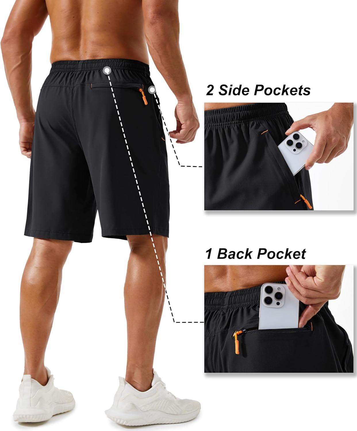 TACVASEN Men’s Running Athletic Shorts 9″ Quick Dry Workout Gym Shorts Lightweight Summer Shorts 3 Zipper Pockets(B. Bk)