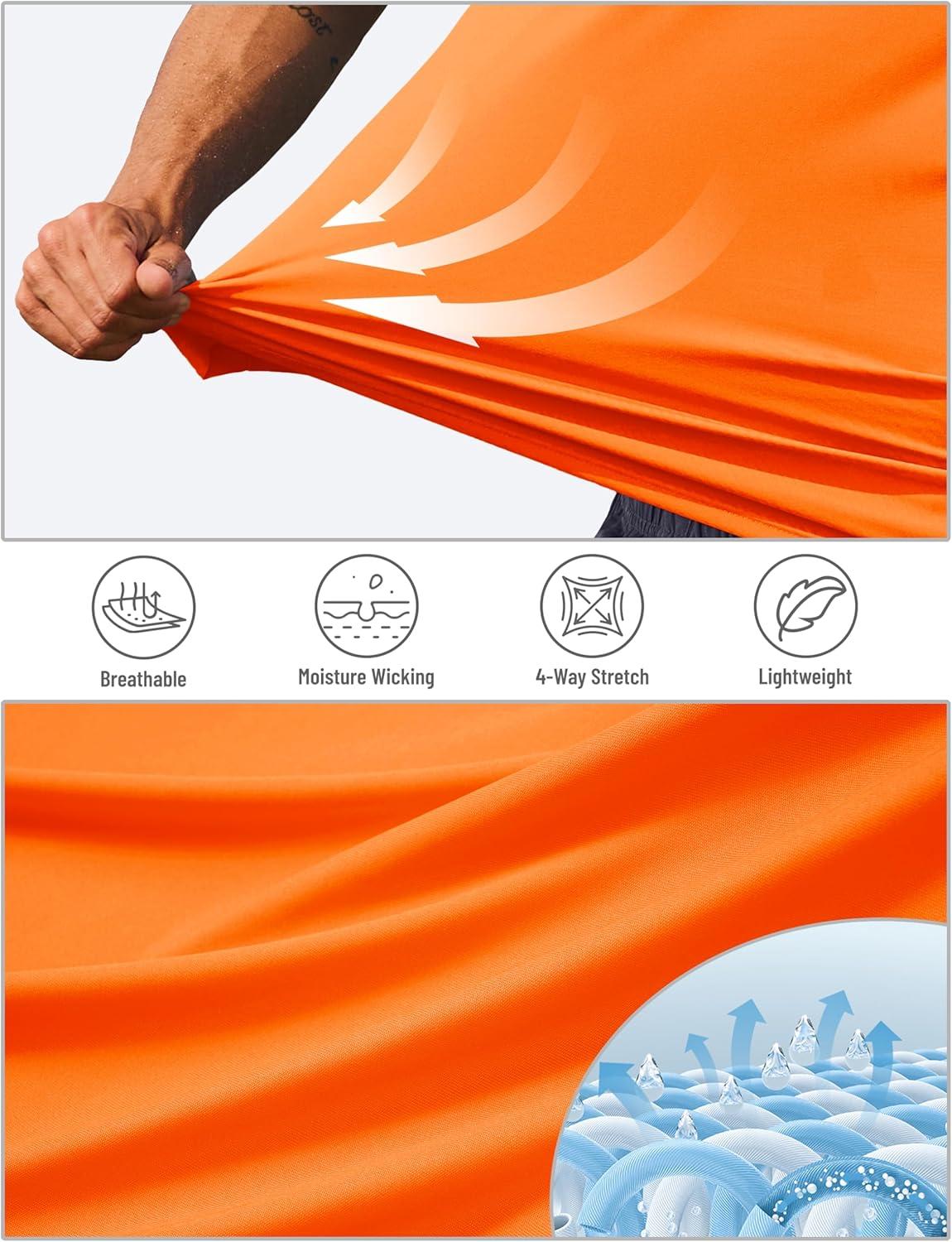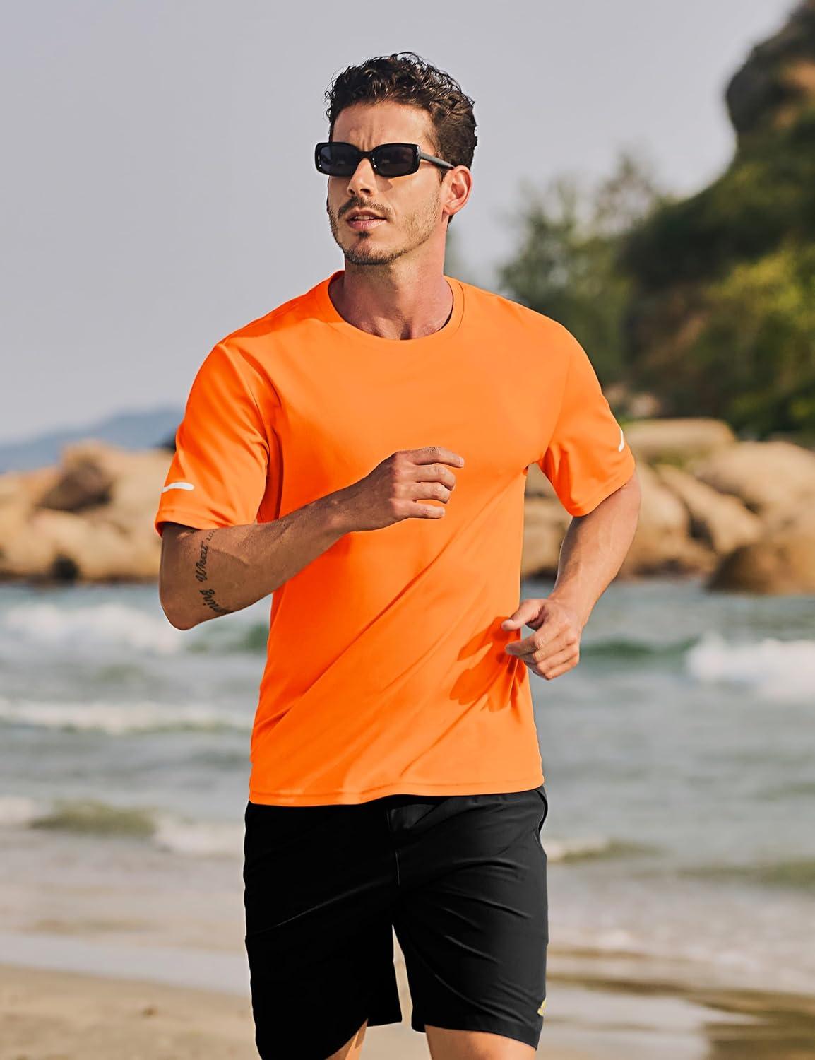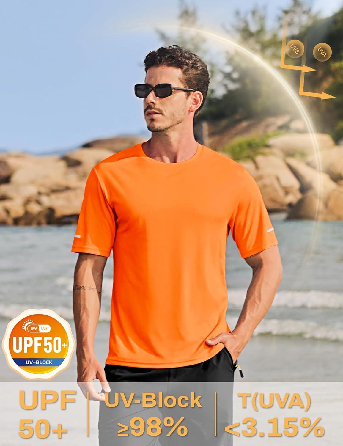 TACVASEN Men’s Short Sleeve Swim Top UPF 50+ Sun Protection T-Shirt Crew Neck Moisture Wicking Gym Shirts(#04florange)